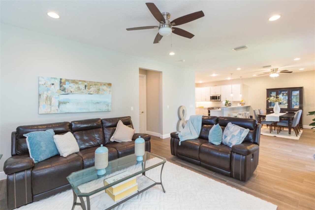 Updated pricing... welcome home in the heart of North Bon Air! Built in 2018, this 5-bedroom, 4-bath residence enjoys usefully designed spaces for everyday living and entertaining. Appreciate modern curb appeal and expansive patio options with pavers galore. Formal living or library / office upon entry. Everything beyond is an open-concept layout with the kitchen and huge breakfast bar overlooking both dining and family rooms… plenty of natural light + high ceilings. This main living area flows seamlessly to the covered patio and private yard – big mango tree too! The first floor also has a versatile bedroom with full bath – perfect for guests or long term hosting. Large owner’s suite is upstairs with two walk-in closets, dual sinks, a garden tub and attractive shower tilework. A Jack and Jill bath connects guestrooms. The back 5th bedroom is oversized with en-suite bath. Everyone gets the space they want within this floorplan. Zoned for Grady, Coleman & Plant. Located just minutes from Midtown, Westshore, International Plaza and Tampa International, unbeatable convenience tucked away on a quiet street. No HOA / CDD. This move-in ready gem is South Tampa Flood Zone X with no past water issues.