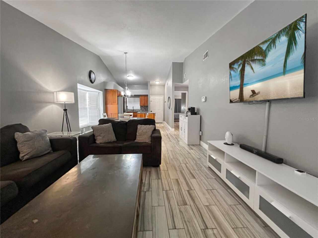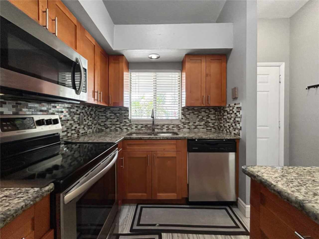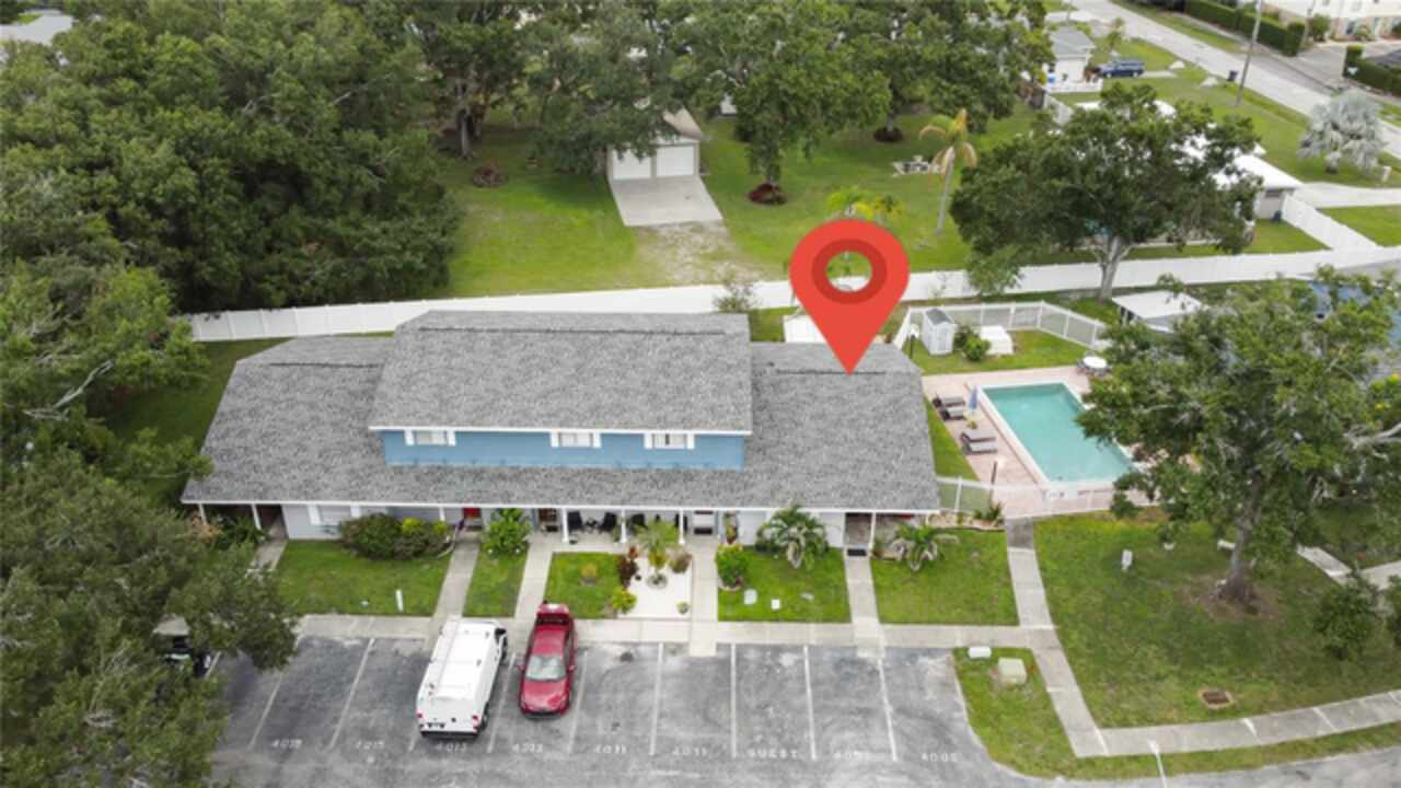 This hidden gem is close to shopping, restaurants, Bucs Stadium, Rays/Yankees Stadium and Tampa International Airport. Close to all of that yet tucked away in a quaint well-cared for community that includes an awesome pool and a scenic pond. Units here do not come available very often! This 2-bedroom/2 full bathroom unit has voluptuous high ceilings throughout. The open floor plan encompasses the kitchen, dining and living areas so you can keep the conversations going! The porcelain tile flooring is hardy and appealing. The kitchen has nice stainless-steel appliances and a solid island with drawers. This island is easily moved if you desire it elsewhere. The living room is spacious and comfortable. The split-bedroom arrangement provides privacy. The primary bedroom has an ensuite bathroom with shower and a large vanity. Bedroom 2 is roomy with a nice sized closet. Bathroom 2 is accessed from the living area and includes a tub/shower. Lots of windows allow natural sunlight to fill the rooms. Speaking of natural light, you have two lovely porches to relax on. There is a front porch with pavers and a delightful large, screened porch out back to unwind. And to top it all off, take a refreshing dip in the pool!! Everything is single-story so there are no stairs to worry about. You get all of this in one of the most AFFORDABLE priced condos in the area! PLUS one of the LOWEST HOA/condo FEES in the area at just $395!!! And that fee, as low as it is, includes water, trash, lawn maintenance, master insurance policy, POOL and pool maintenance! Come on by and see for yourself this fabulous opportunity!