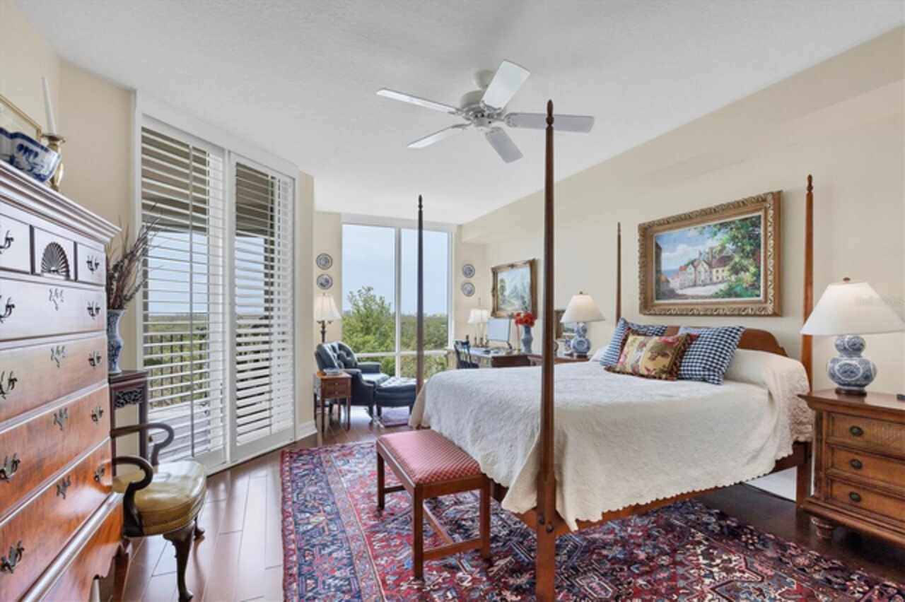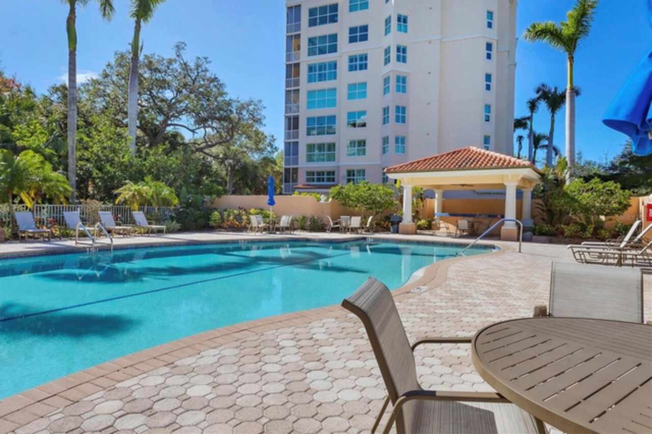 FULLY UPDATED ~ WATER VIEWS ~ PRIVATE 2 CAR GARAGE ~ OFFICE/4TH BEDROOM OPTION ~ The eye of an artist and perfected skill of a craftsman created this spacious, expertly designed residence. From the moment the elevator doors open to the private foyer, you'll notice every fine detail in this home was carefully thought out and executed, while the splendor of nature and water creates the backdrop from the peaceful, spacious lanai, welcoming you to the dawn of a new day and inviting you to relax and unwind at day's end. High end finishes and elegance abounds in this fully updated unit featuring a custom kitchen with soap stone countertops, modern sink, roll out drawers in cabinets, Bosch appliances, Everpure water filtration, and tray ceiling with crown molding. The luxurious Primary Suite features stunning water and preserve views, a custom walk-in closet, and stunning en-suite bathroom with custom cabinetry, dual sink vanity, stunning stone countertops, and Italian tile. The unit's sprawling split bedroom floor plan offers 3 Bedrooms, 3 Full Baths, an Office/Study that could serve as a 4th Bedroom, Laundry Room, Custom Built-in Bookshelves, custom closet built-ins, a Formal Dining Room, Great Room with Casual Dinette Area off the Kitchen, and includes your own Private Two Car Garage and Storage. The Meridian at the Oaks Preserve, lushly landscaped with winding sidewalks, features a pool, hot tub/spa, outdoor grill, and fitness center. Membership to The Oaks Club is mandatory. The Oaks Club features two golf courses, 12 Har-Tru tennis courts, croquet, pool, fitness and wellness which includes massage and body treatments, three restaurants for a variety of dining atmospheres, social events, and a magnificent clubhouse to relax, enjoy, and entertain. The Oaks / Oaks Preserve is less than one mile to Historic Spanish Point, approximately 6 miles to white quartz sand beaches of Siesta Key, and just 10 miles to Downtown Sarasota for world class dining, theater, ballet, nightlife and entertainment. In addition to District Schools, The Meridian at Oaks Preserve is less than 3 miles to Pine View School in Osprey! Please view the Video Virtual Tour which offers interior and exterior views not easily captured by still photos, while also providing a bird's eye flyover of the stately Oaks Club property. This unit is a must-see in person! Schedule your exclusive showing today!