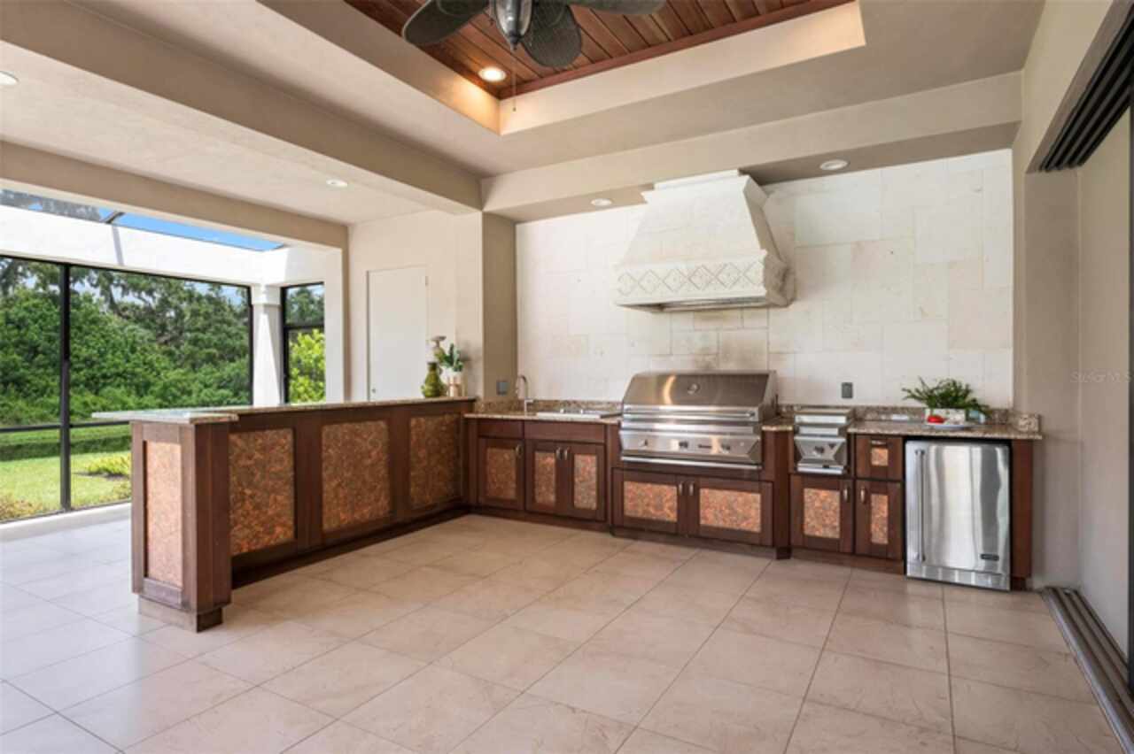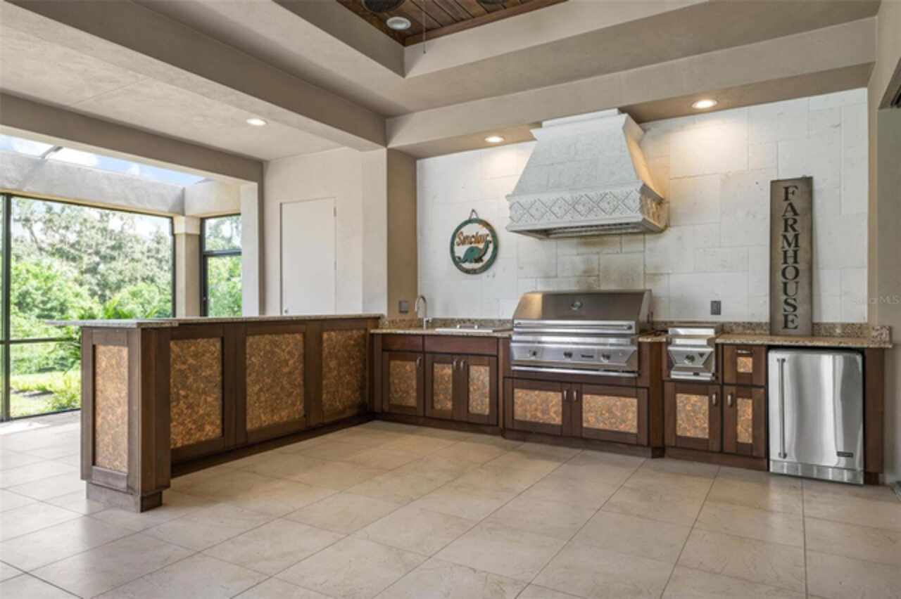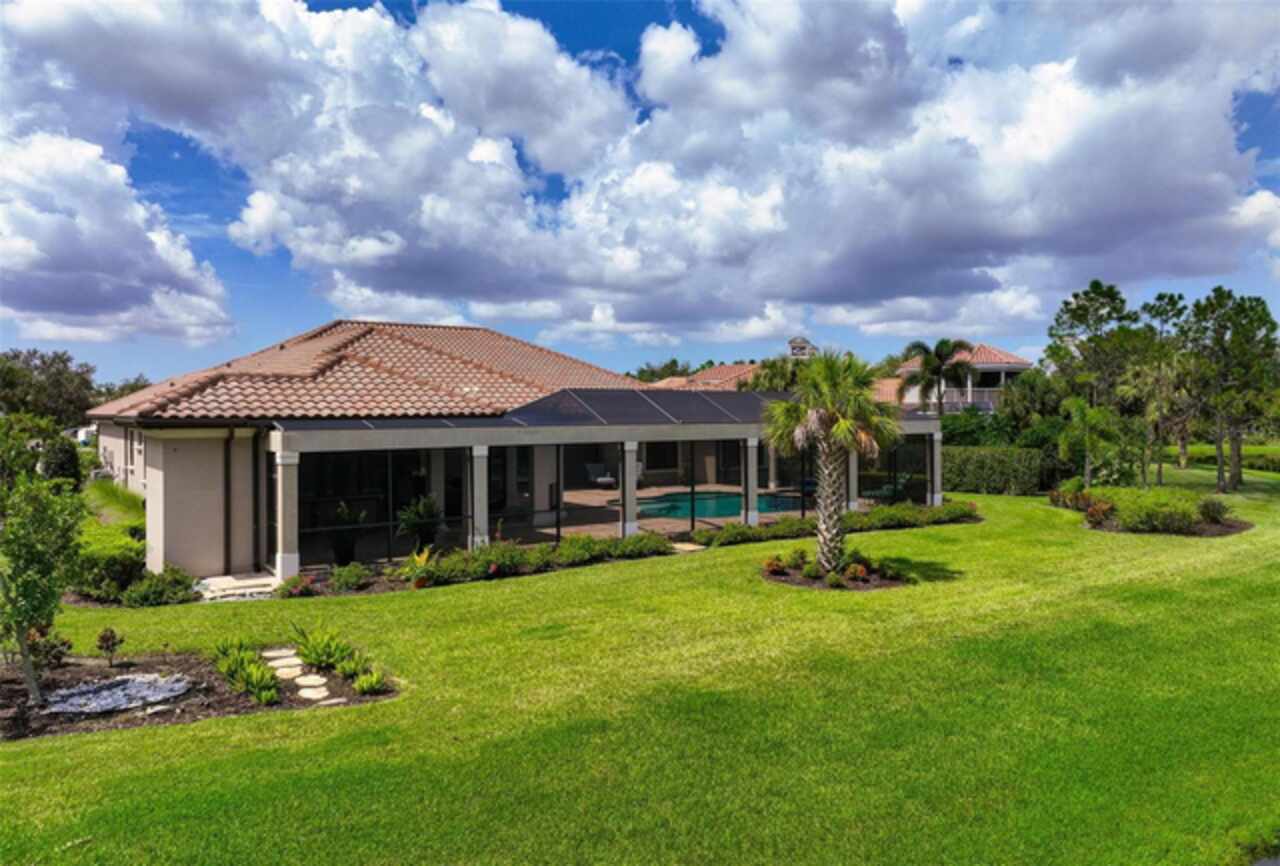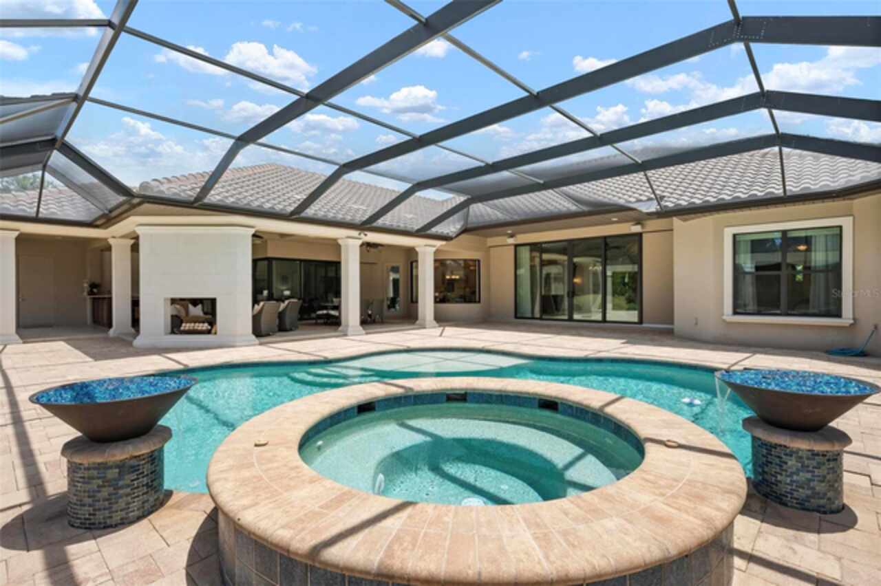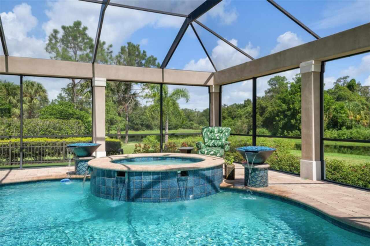 Seller wants offers!! Luxury Lake front Living with Exquisite Designer touches at the Founders Club a gated, golf course community. Indulge in the elegance of this 3-bedroom, 3.5-bathroom great room design luxury residence, where breathtaking water views and refined craftsmanship create the ultimate retreat. Designed for both comfort and style, this home features soaring high ceilings and wood-look porcelain floors, enhancing the open and airy ambiance. The gourmet kitchen is a chef’s dream, showcasing upgraded wood cabinetry, stone countertops, GE Monogram appliances, and a built-in Subzero refrigerator. A dedicated media room provides the perfect space for entertainment and relaxation. The expansive primary suite offers a private sanctuary with dual walk-in closets featuring custom built-ins. The spa-inspired master bath exudes luxury with marble floors, a free-standing soaking tub, and an oversized walk-in shower, creating a serene escape. Seamlessly blending indoor and outdoor living, this home boasts a custom-designed pool with a gas-heated spa, a fully equipped outdoor grill center, and a cozy outdoor fireplace, perfect for year-round enjoyment. Experience the finest in waterfront luxury—schedule your private tour today!
