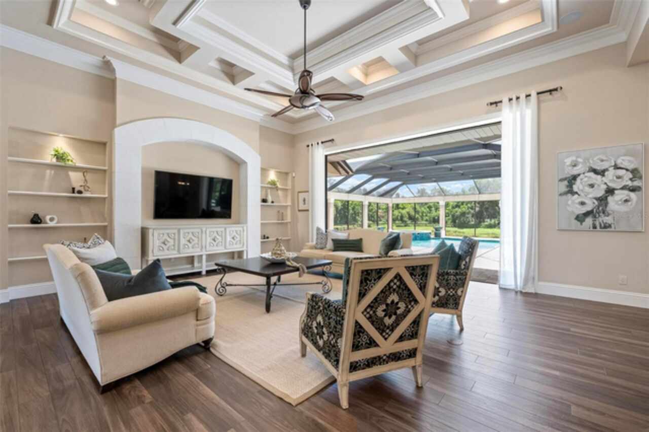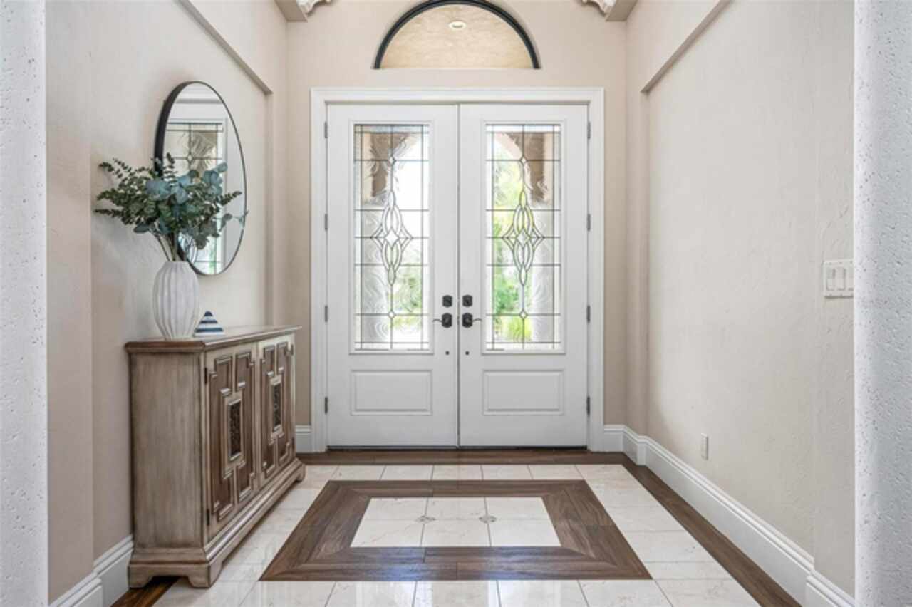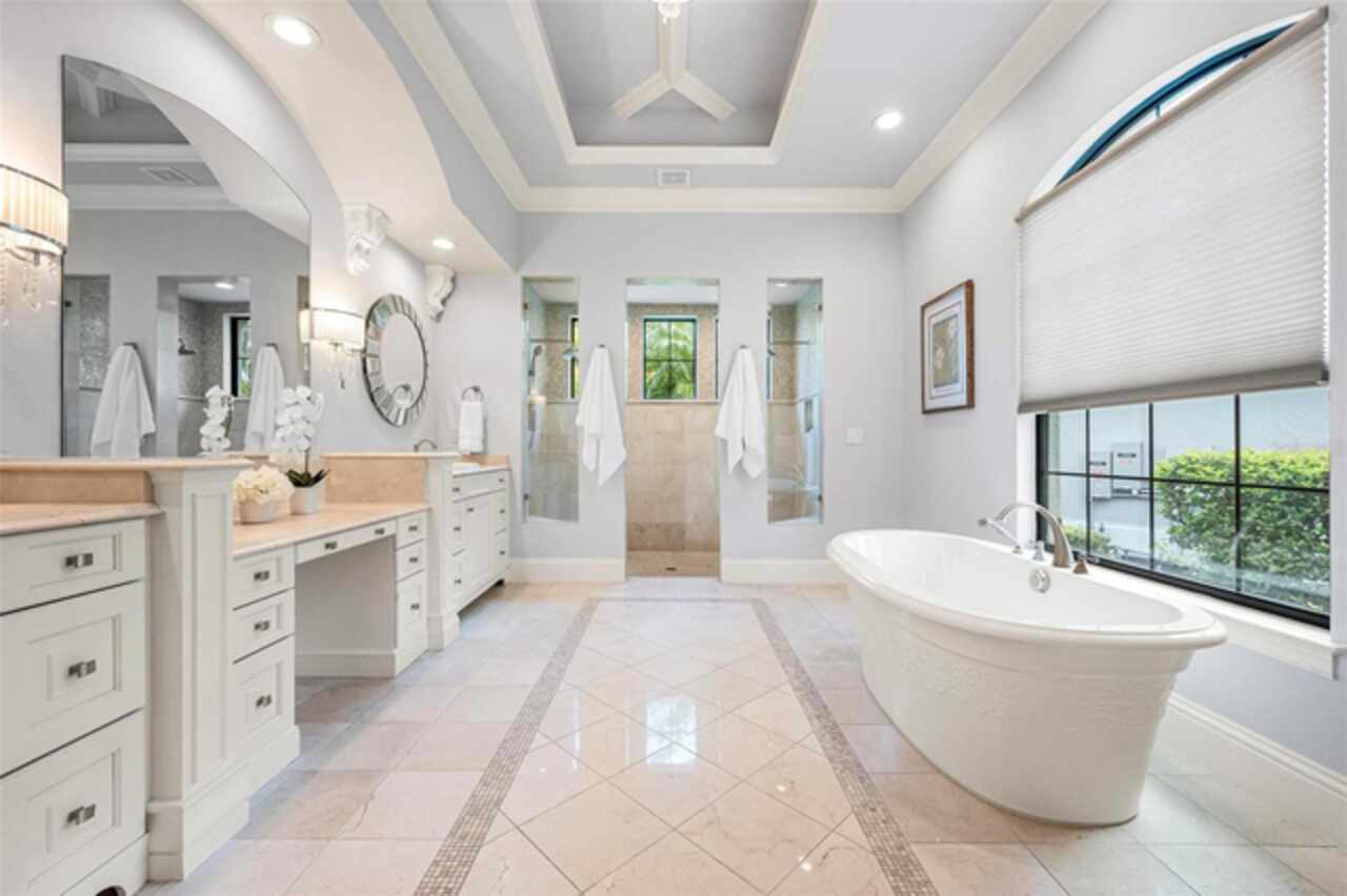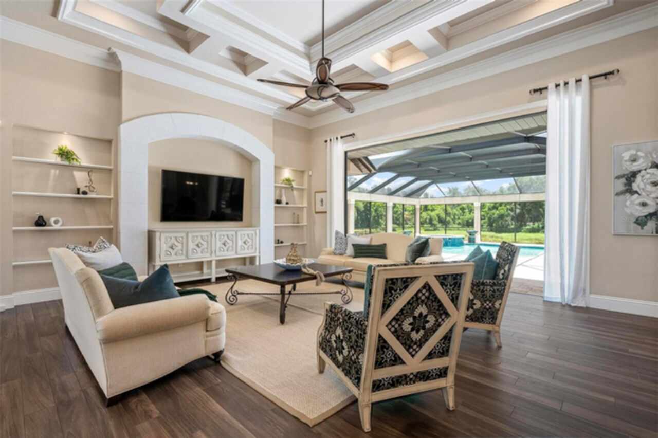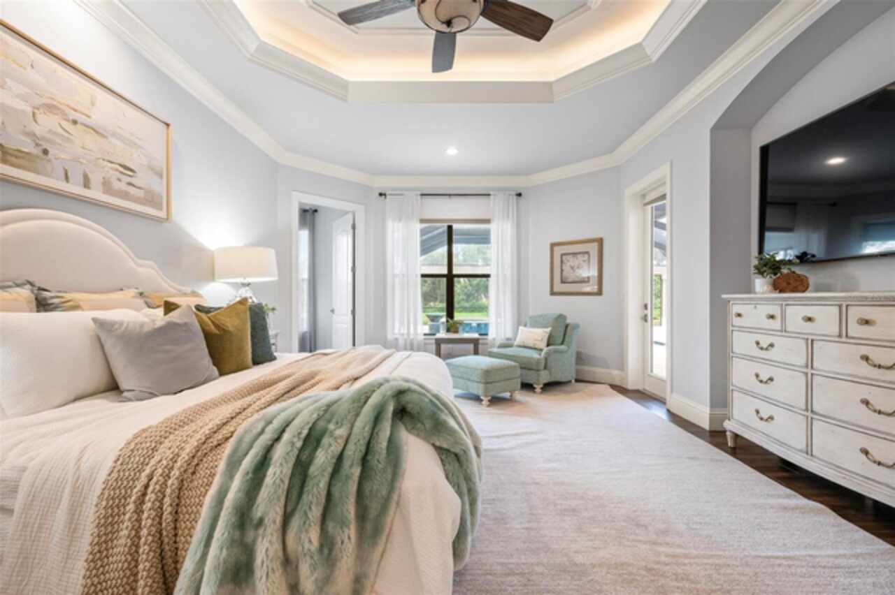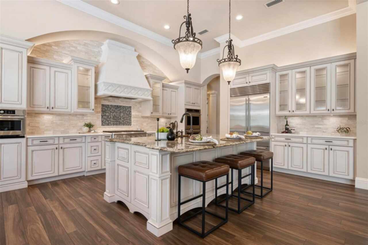 Seller wants offers!! Luxury Lake front Living with Exquisite Designer touches at the Founders Club a gated, golf course community. Indulge in the elegance of this 3-bedroom, 3.5-bathroom great room design luxury residence, where breathtaking water views and refined craftsmanship create the ultimate retreat. Designed for both comfort and style, this home features soaring high ceilings and wood-look porcelain floors, enhancing the open and airy ambiance. The gourmet kitchen is a chef’s dream, showcasing upgraded wood cabinetry, stone countertops, GE Monogram appliances, and a built-in Subzero refrigerator. A dedicated media room provides the perfect space for entertainment and relaxation. The expansive primary suite offers a private sanctuary with dual walk-in closets featuring custom built-ins. The spa-inspired master bath exudes luxury with marble floors, a free-standing soaking tub, and an oversized walk-in shower, creating a serene escape. Seamlessly blending indoor and outdoor living, this home boasts a custom-designed pool with a gas-heated spa, a fully equipped outdoor grill center, and a cozy outdoor fireplace, perfect for year-round enjoyment. Experience the finest in waterfront luxury—schedule your private tour today!