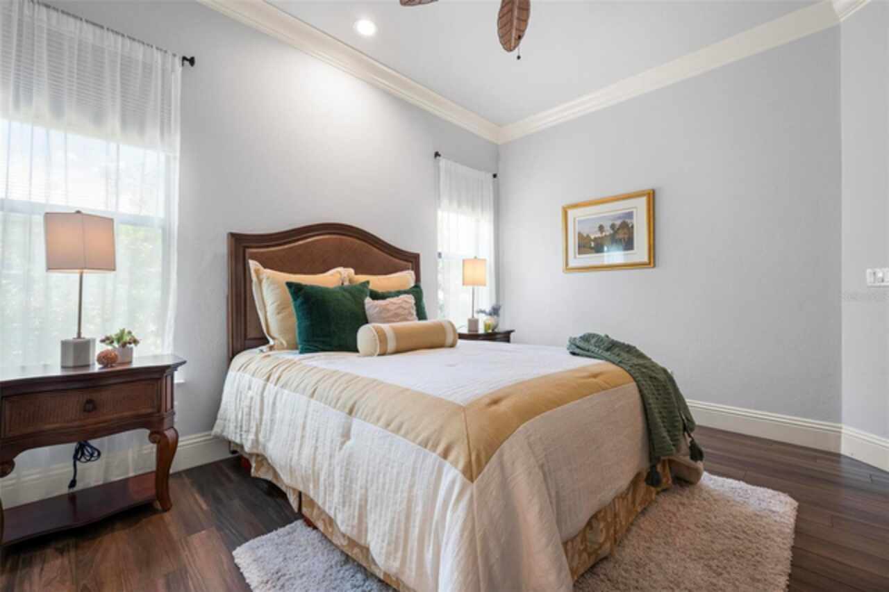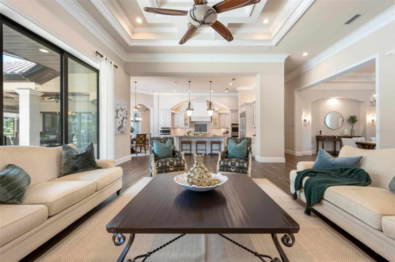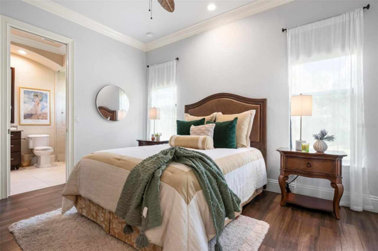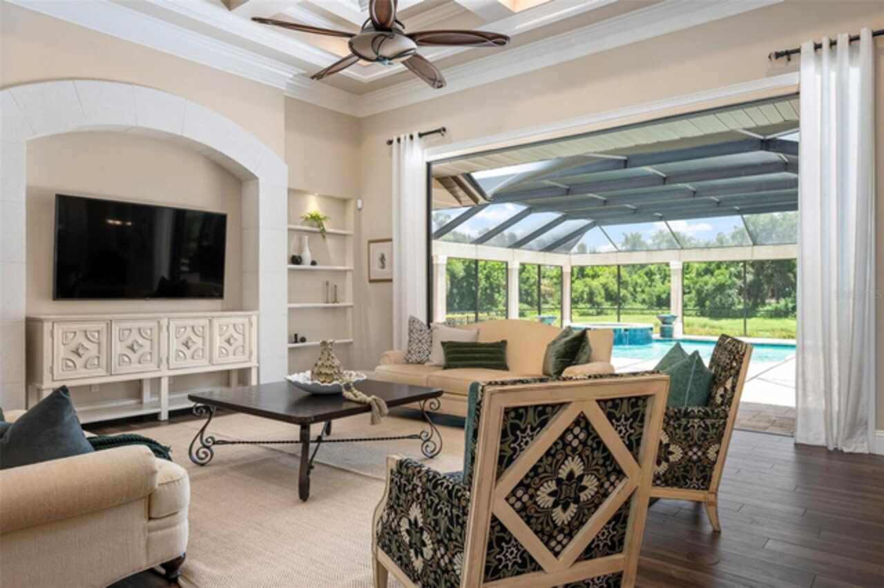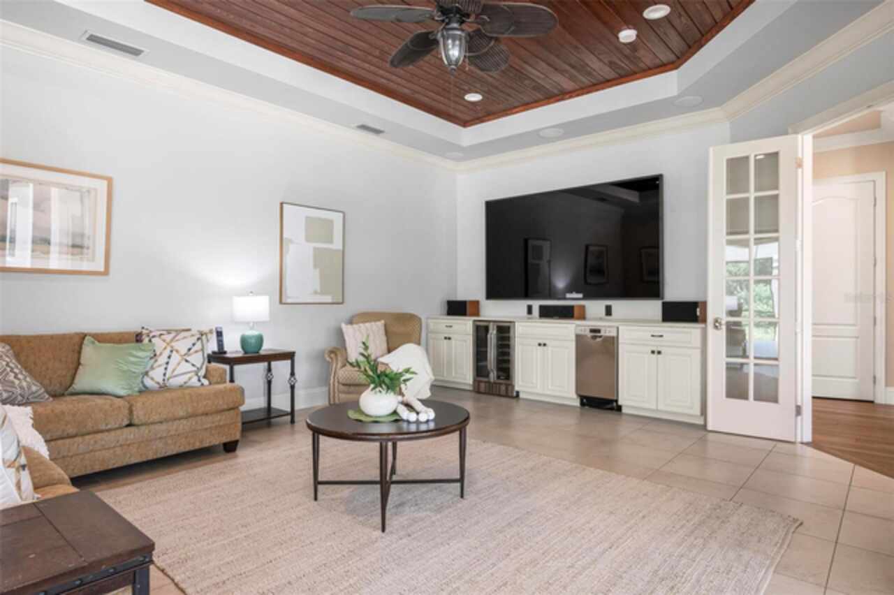 Seller wants offers!! Luxury Lake front Living with Exquisite Designer touches at the Founders Club a gated, golf course community. Indulge in the elegance of this 3-bedroom, 3.5-bathroom great room design luxury residence, where breathtaking water views and refined craftsmanship create the ultimate retreat. Designed for both comfort and style, this home features soaring high ceilings and wood-look porcelain floors, enhancing the open and airy ambiance. The gourmet kitchen is a chef’s dream, showcasing upgraded wood cabinetry, stone countertops, GE Monogram appliances, and a built-in Subzero refrigerator. A dedicated media room provides the perfect space for entertainment and relaxation. The expansive primary suite offers a private sanctuary with dual walk-in closets featuring custom built-ins. The spa-inspired master bath exudes luxury with marble floors, a free-standing soaking tub, and an oversized walk-in shower, creating a serene escape. Seamlessly blending indoor and outdoor living, this home boasts a custom-designed pool with a gas-heated spa, a fully equipped outdoor grill center, and a cozy outdoor fireplace, perfect for year-round enjoyment. Experience the finest in waterfront luxury—schedule your private tour today!