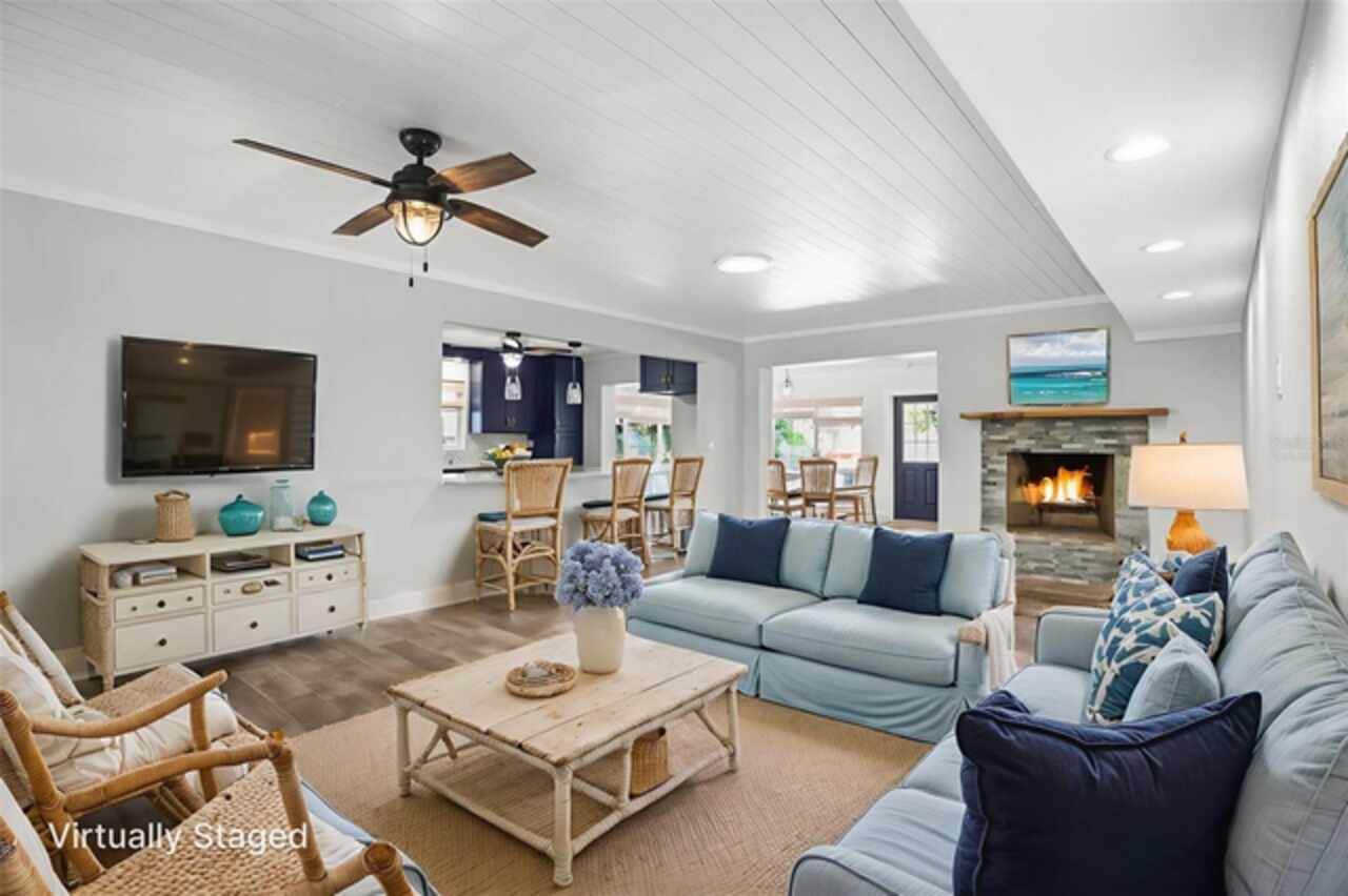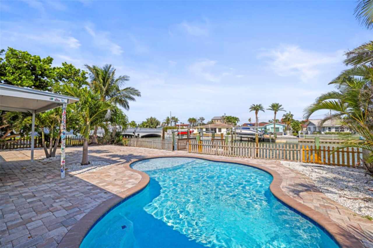 One or more photo(s) has been virtually staged. Short Sale. Please note - the listed price is the minimum the lender will accept. Offers below this price will not be accepted. Live the Island Life in Style - Just Steps from the Sand! Ready for immediate occupancy, this beautifully remodeled waterfront retreat is your gateway to the ultimate coastal lifestyle. Meticulously renovated from ceiling to baseboard, no detail has been overlooked in creating a home of unmatched quality and comfort. The property boasts new walls with added insulation, new ceilings throughout, including ship lap detailing in the main living area, and an additional coating over the new roof, all designed to enhance the home's energy efficiency and long-term value. Perfectly positioned just a 5-minute walk to the beach, a 15-minute stroll to the vibrant shops and restaurants of John's Pass, and only a 10-minute boat ride to the open Gulf, this home also offers a 5-minute cruise to some of the area's most popular sandbars - perfect for weekend adventures. Inside, you'll discover a spacious, light-filled open-concept layout with three generous bedrooms and two fully updated bathrooms. The coastal-inspired design showcases wood-look tile flooring, a cozy fireplace for cooler nights, and a chef’s kitchen featuring sleek quartz countertops, abundant cabinetry, and a layout that keeps you connected while entertaining. Seller will give an allowance for an appliance package with an acceptable offer. Recent updates include a new roof in 2023, adding peace of mind and long-term value. Step outside to your own private oasis: a large pavered patio, covered outdoor bar, and a sparkling waterfront pool ideal for sun-soaked days or evening gatherings. For boating enthusiasts, the home features a deep water dock with a 12, 000 lb boat lift, providing fast access to the Intracoastal Waterway, the Gulf of Mexico, and beyond. The fully fenced yard adds an extra layer of privacy and security - ideal for both pets and people. Whether you’re searching for a full-time waterfront residence or a dreamy vacation escape, this island-style home checks all the boxes. Schedule your private showing today—and start living the coastal dream!