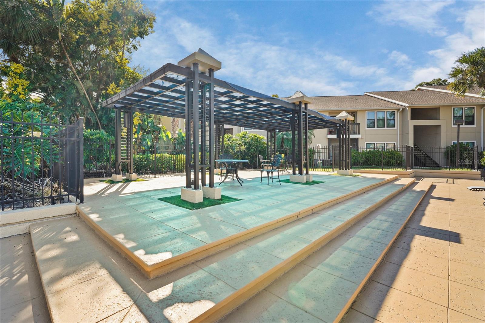 Welcome to this beautifully updated three-bedroom, two-bathroom condo located in the desirable Palmer Ranch area. This bright and spacious second-floor residence features cathedral ceilings that enhance the open floor plan, along with new tile flooring, fresh paint, and modern moldings. The updated kitchen showcases granite countertops and flows seamlessly into the living and dining areas—ideal for both daily living and entertaining. Two private lanais provide the perfect spot for morning coffee or evening relaxation, with one including a storage closet for bikes and more. The primary bedroom offers abundant natural light, a walk-in closet, and a newly renovated en-suite bathroom. An in-unit washer and dryer add everyday convenience. Step outside and enjoy access to two resort-style pools, a fully equipped fitness center, tennis courts, and a playground, all within the well-maintained Vintage Grand community. For nature and recreation lovers, Potter Park is just a short stroll away, featuring trails, tennis and basketball courts, and a picnic pavilion ideal for gatherings. Within walking distance to dining, shopping, and daily conveniences—including a grocery store that might just know you by name—this condo offers comfort, functionality, and proximity to world-famous beaches.