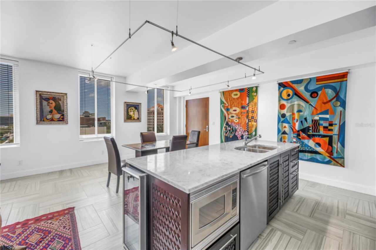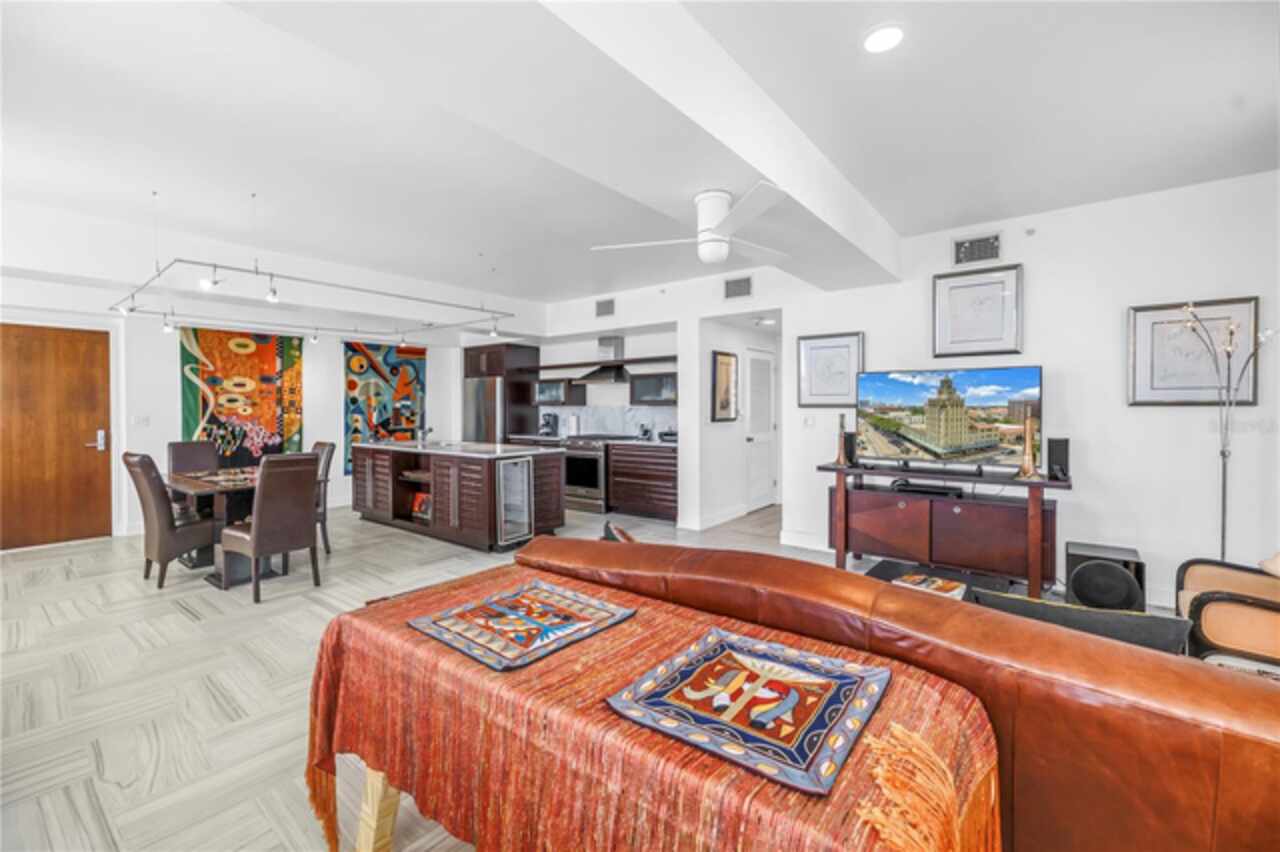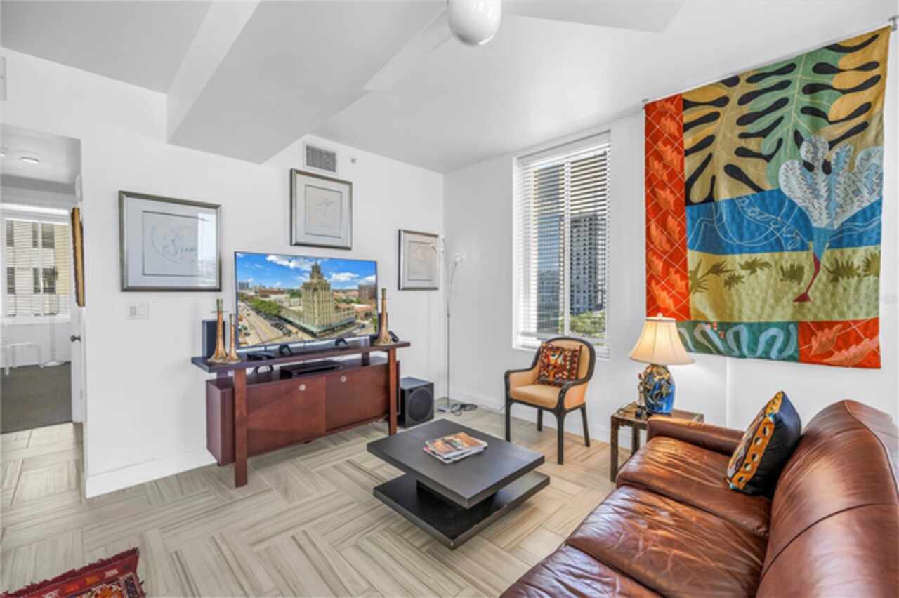Discover refined urban living in this storied condominium within the timeless Mediterranean Revival Snell Arcade, an architectural treasure erected in 1926–28 by renowned developer C. Perry Snell and architect Richard Kiehnel, and now recognized on the National Register of Historic Places. Uniquely positioned in the heart of the city at Central Avenue & Fourth St, this exceptional 6th-floor home spans a generous 1, 325 sq ft and welcomes you with the exclusive convenience of a private elevator opening directly into the condo's foyer. Upon entering, you’ll immediately appreciate the open floor plan—designed to favor both chic entertaining and comfortable everyday living—flowing from the living room to a kitchen outfitted with sleek stainless-steel appliances. Laundry day is effortless thanks to the in-unit washer and dryer, thoughtfully integrated into your private retreat. Beyond your doorstep lies the vibrant beat of St. Pete—enjoy a leisurely stroll to world-class museums such as the Dali & the James, acclaimed dining destinations, peaceful city parks along the waterfront, and the picturesque St. Pete Pier. Within easy access to I-275, the beaches and Tampa & St Pete-Clearwater airports.