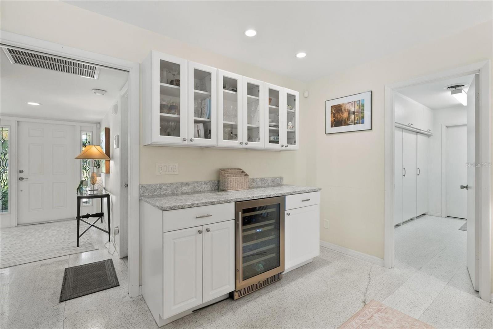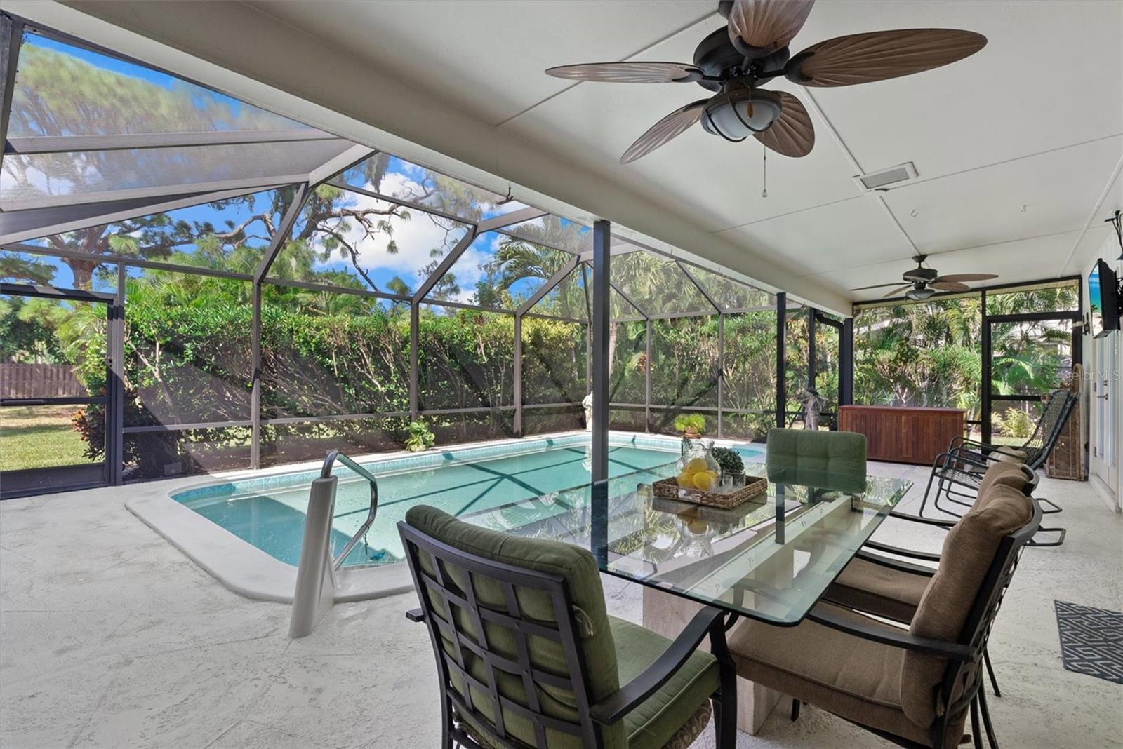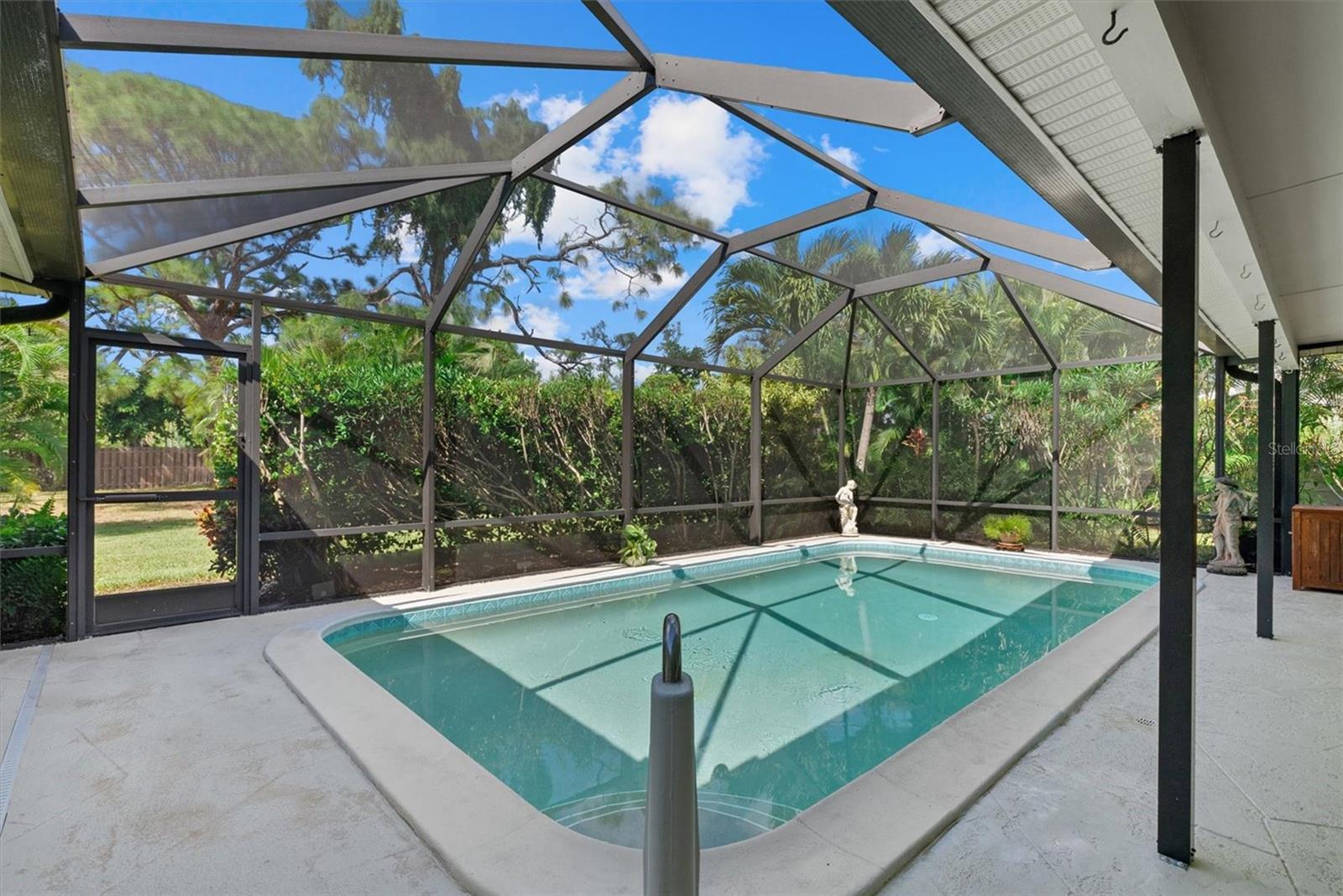 Just minutes from Venice Beach and the charming downtown shopping and dining district, this four-bedroom, two-bath pool home with a three-car garage blends comfort, style, and convenience as well as a beautiful sunset at days end. Go inside to find a light-filled layout designed for relaxed Florida living. The beautifully remodeled kitchen is the centerpiece of the home, showcasing Cambria quartz countertops, a professional-grade Thermador six-burner gas range, high-end stainless appliances, and two dual-zone wine coolers, ideal for casual meals and entertaining. A thoughtfully reimagined pantry adds storage and function. The primary suite feels like a private retreat with hurricane-rated French doors that lead out to the pool for a little moonlight swim. For those who like it a little cooler while sleeping, there is a separate mini split for the primary bedroom, so you don't have to cool the whole house. The updated primary bath features marble-topped double vanity and spa-inspired Roman shower with built-in seating. The additional bedrooms offer flexible space for family, guests, or a home office, each filled with natural light and designed for comfort. For added closet space, one bedroom has built-in closet system, making it a huge walk-in closet if needed, otherwise remove and use as a fourth bedroom. Go outside to enjoy a private backyard retreat with lush landscaping and an extended pool deck, ideal for entertaining. The pool is designed for year-round enjoyment with a pool heater for the winter months and chiller for summer. A 12-by-10-foot Tuff shed with windows and shelving adds extra room for storage or hobbies. Terrazzo floors throughout the home preserve its mid-century character and timeless appeal. Whether intended as a primary residence, seasonal retreat or investment, this home offers exceptional versatility with features that support full-time living, extended stays or seasonal rental. With recent updates including a new roof (2024), HVAC (2022), Kohler 20-kilowatt generator with 500-gallon LP tank, new pool pump and filter (2024), and updated plumbing, this home is move-in ready, offering peace of mind and the relaxed coastal lifestyle you’ve been dreaming of.