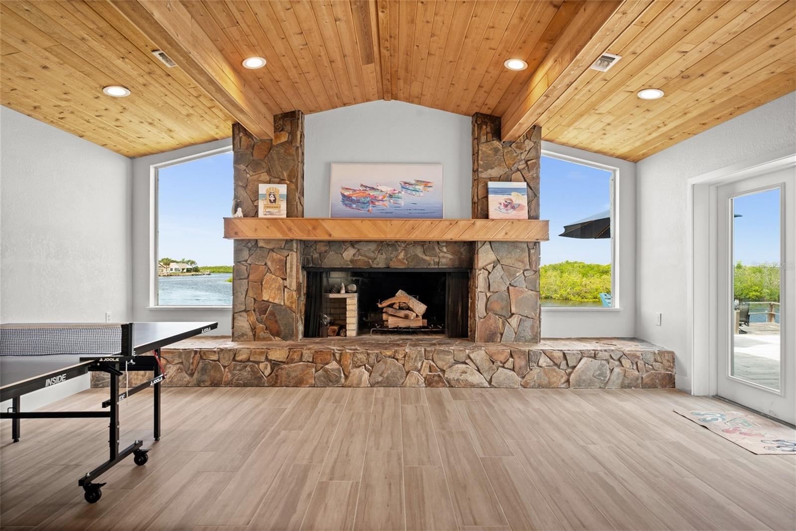 Florida luxury waterfront living at its finest! Most water frontage in the neighborhood at 122ft. This renovated home features soaring ceilings, an open floor plan and a chef's kitchen that flows seamlessly into the living and dining areas. A stunning stone fireplace and wall of windows showcase breathtaking water views, while the spacious game room with wood ceilings is perfect for entertaining. Remote controlled screen keeps the bugs out without losing the amazing view. Roof is two years old, new HVAC, gutters and pavers in the front and back. Property features two docks. Indoor-outdoor living blends effortlessly here. The ultimate Florida coastal lifestyle awaits.