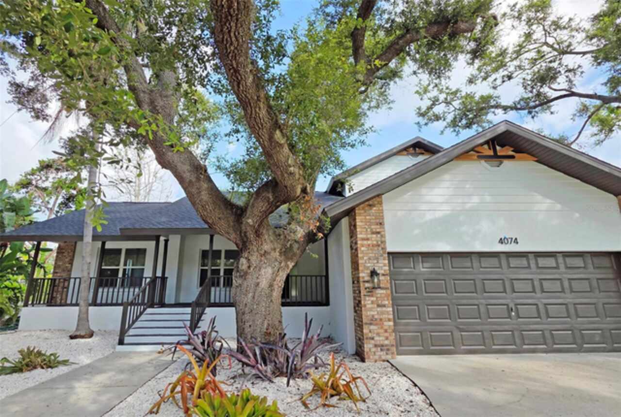 One or more photo(s) has been virtually staged. Featured on TVs Fox 4! Welcome to 4074 Redbird Cir—a home that has a LOT of personality and curb appeal. This stunning 4-bedroom, 2.5-bath has been completely renovated. This beautiful move in ready home combines classic farmhouse charm with the ease and sophistication of modern living. Nestled on an expansive third of an acre corner lot in one of Sarasota’s most desirable neighborhoods, this stunning home is a masterclass in light, space, and timeless style. This home is surrounded by many other beautiful homes, some just off the Shady Creek with boating access. The property is impressive with a large front yard and u-shaped driveway perfect for any guest parking. First, you are welcomed by a quaint front porch where you can enjoy a morning coffee or peaceful evenings with loved ones. Step inside to find an airy, sun-kissed interior thoughtfully designed with open-concept living and seamless indoor-outdoor flow. Vaulted ceilings and oversized windows bathe every room in natural light, highlighting the beautifully updated finishes throughout—from wide-plank floors to designer fixtures and a sleek, contemporary kitchen. The home is extremely light, bright and airy. The main living room space is sizeable and versatile with many options for configuration. The kitchen is expansive, with plenty of storage and counter space, along with space for at least 8 guests with barstool seating. The sleek modern kitchen's centerpiece is a quartz waterfall island. All appliances are brand new stainless steele. Gas is available. The fireplace and hearth create an elegant and warm dynamic. The dining nook area also features a bay window. There is an adorable half bath under the stairs. The laundry room is located on the 1st floor and has a wash sink and 2 cabinets. The master ensuite is located on the primary level but tucked away from the main entertaining space for added privacy. The suite features high ceilings, a large walk-in closet with built ins, master bath with a spacious and open modern walk-in shower, and double vanity. The additional bedrooms are all located upstairs with a full bathroom with tub/shower combo and a double vanity. All of the bedrooms have new ceiling fans with light. The spacious layout offers both comfort and flexibility, perfect for entertaining guests or simply enjoying everyday moments. Every inch has been meticulously upgraded, blending rustic warmth with contemporary finish. Outside, the generous corner lot provides room to roam, play, garden, or even add a small pool—your personal Florida retreat awaits. The majority of the property has simplified shell landscaping. There is a large screened-in lanai with fans to enjoy evenings in the backyard and space for a jacuzzi. Plenty of space on the back patio to grill. Fantastic yard with mature landscaping and a 2-car garage. The garage has many built in cabinets and shelving perfect for a workshop or man cave. Side yard fenced perfect for pets. Brand new roof, complete repaint inside and out, newer AC, and much of the plumbing was updated to PVC. Stellar location just minutes to Siesta Key Beach—frequently rated the BEST beach in America, Siesta Key. Close to A+ schools, downtown Sarasota, major shopping, Cinebistro, Trader Joe's and many high-end restaurants and steakhouses. Seller open to a rate buy down scenario or a crypto purchase please consult for more details!