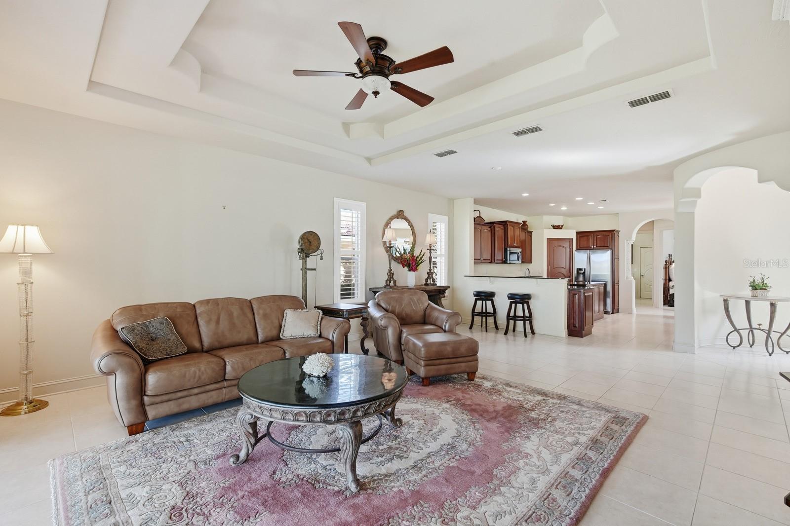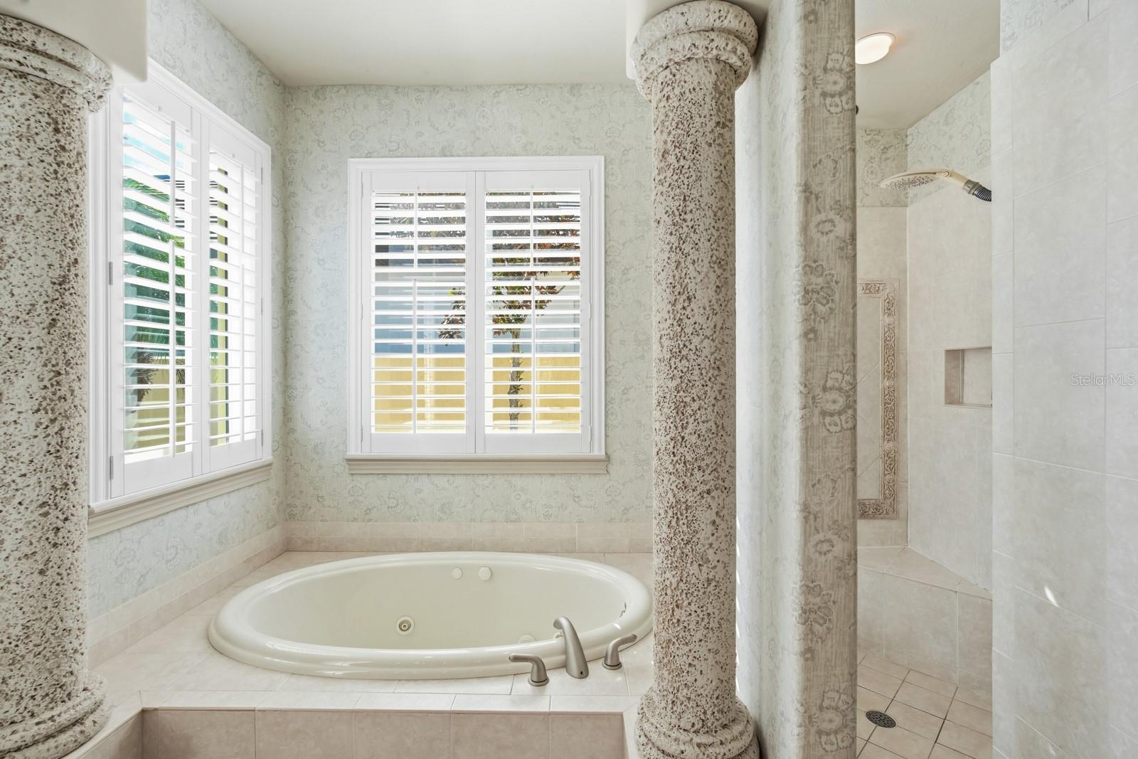 Ceiling Fans(s), Dry Bar, High Ceilings, Primary Bedroom Main Floor, Solid Surface Counters, Thermostat, Walk-In Closet(s), Window Treatments