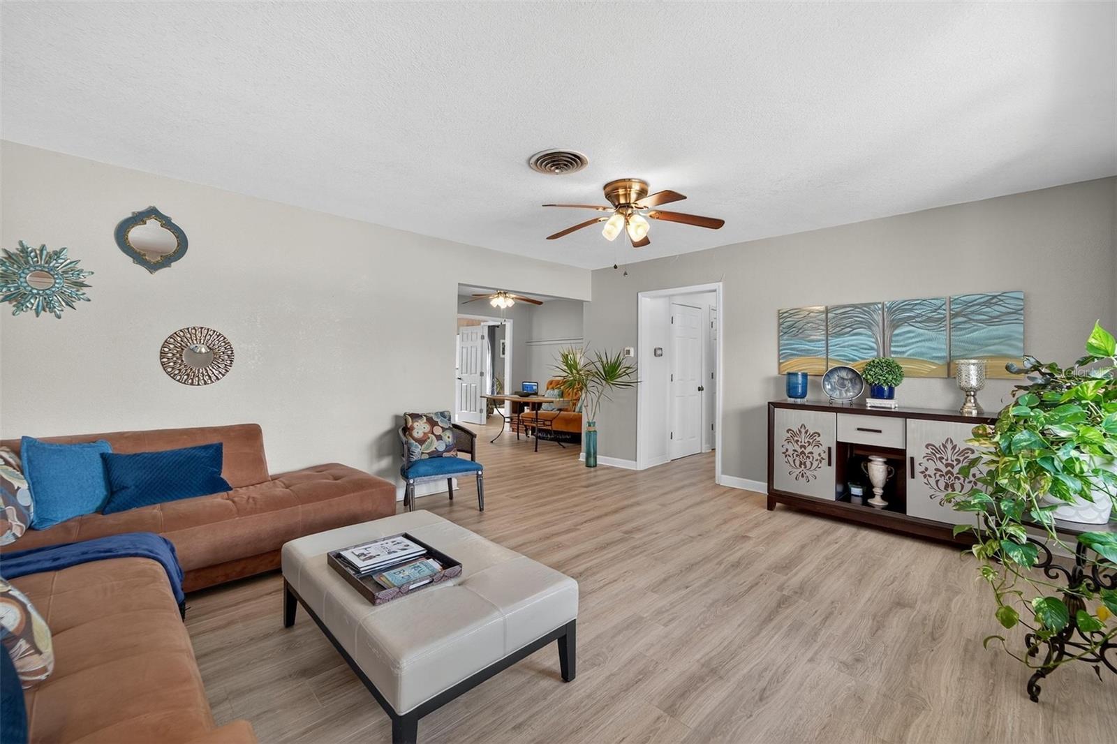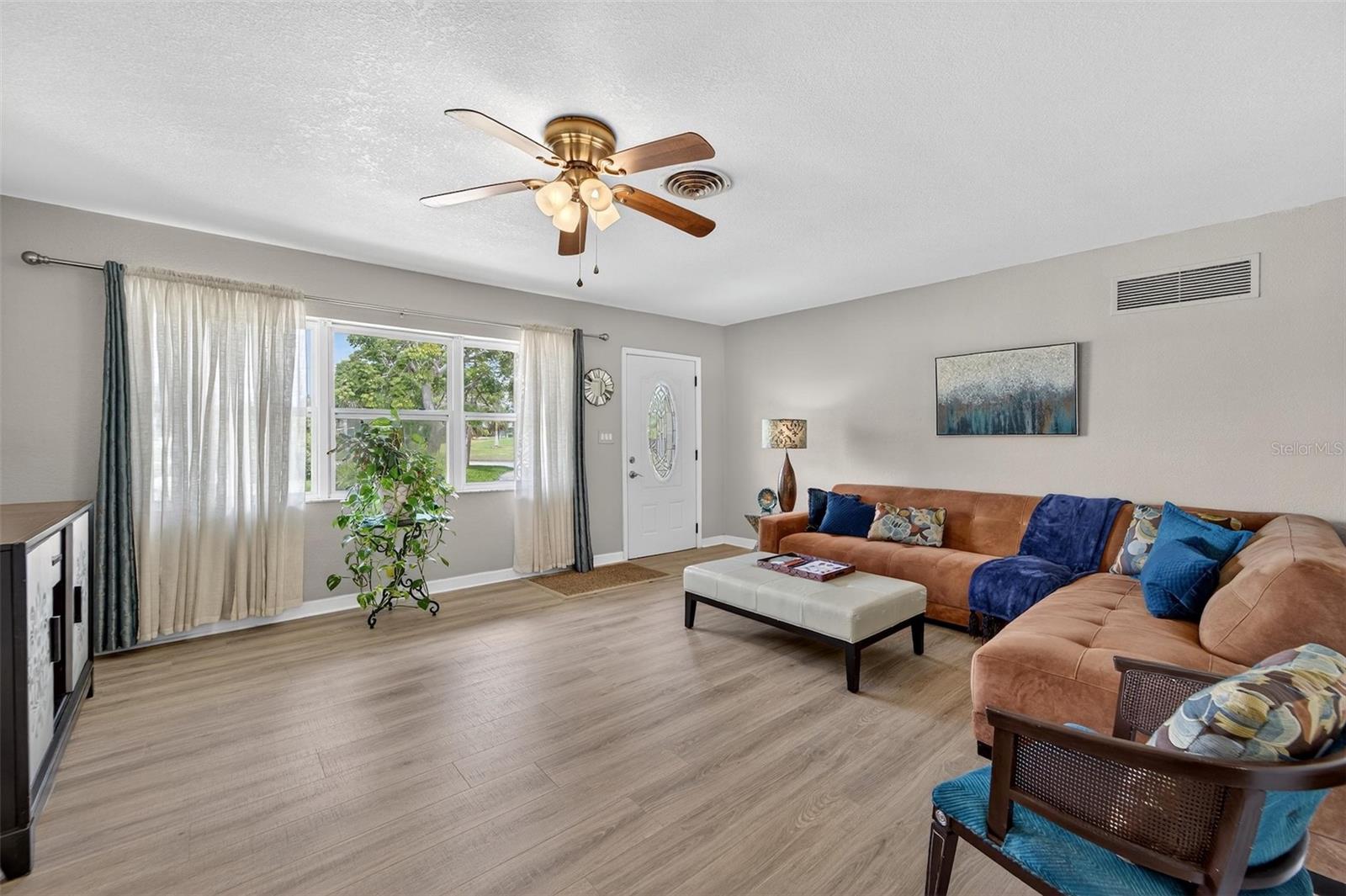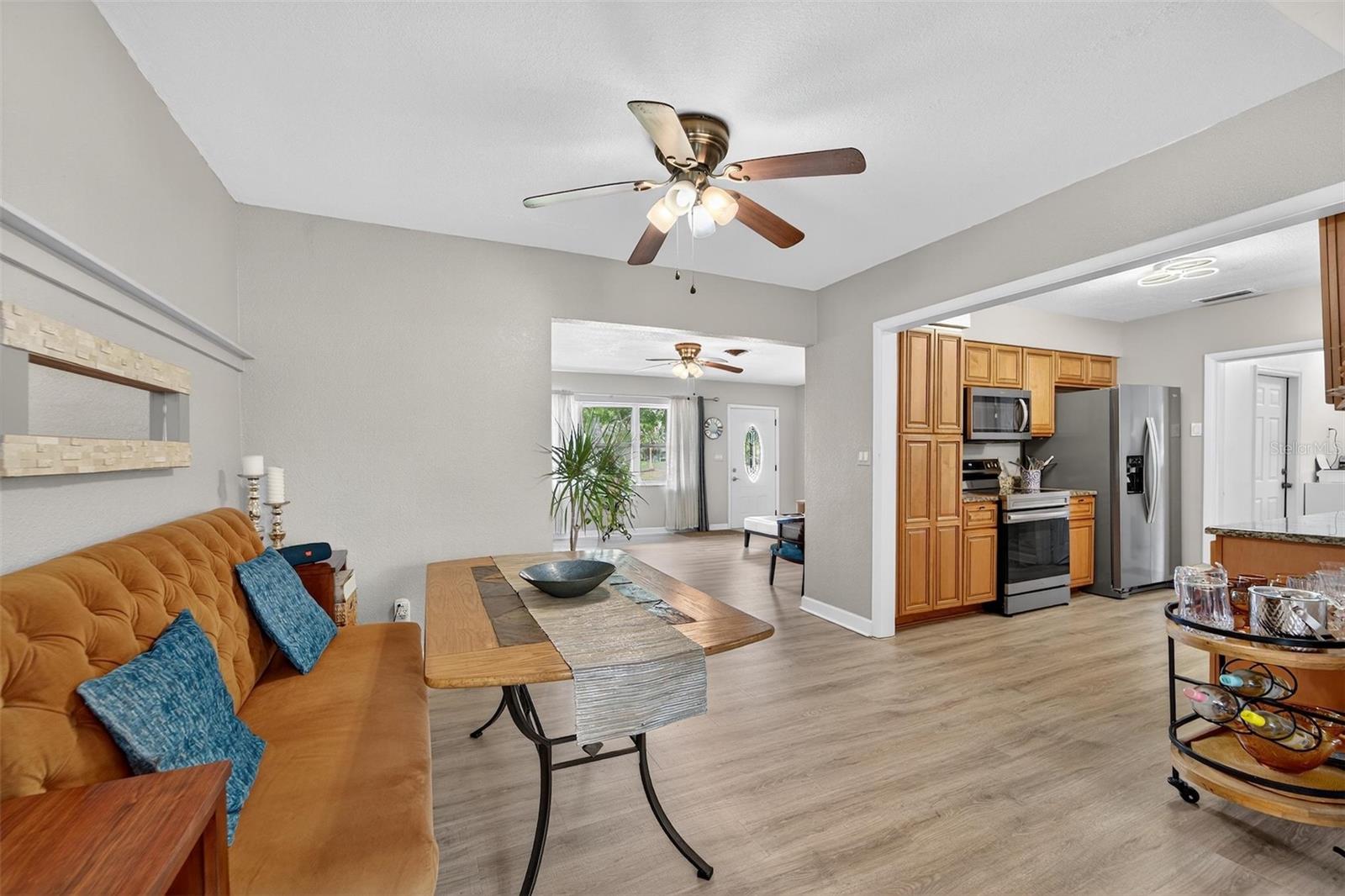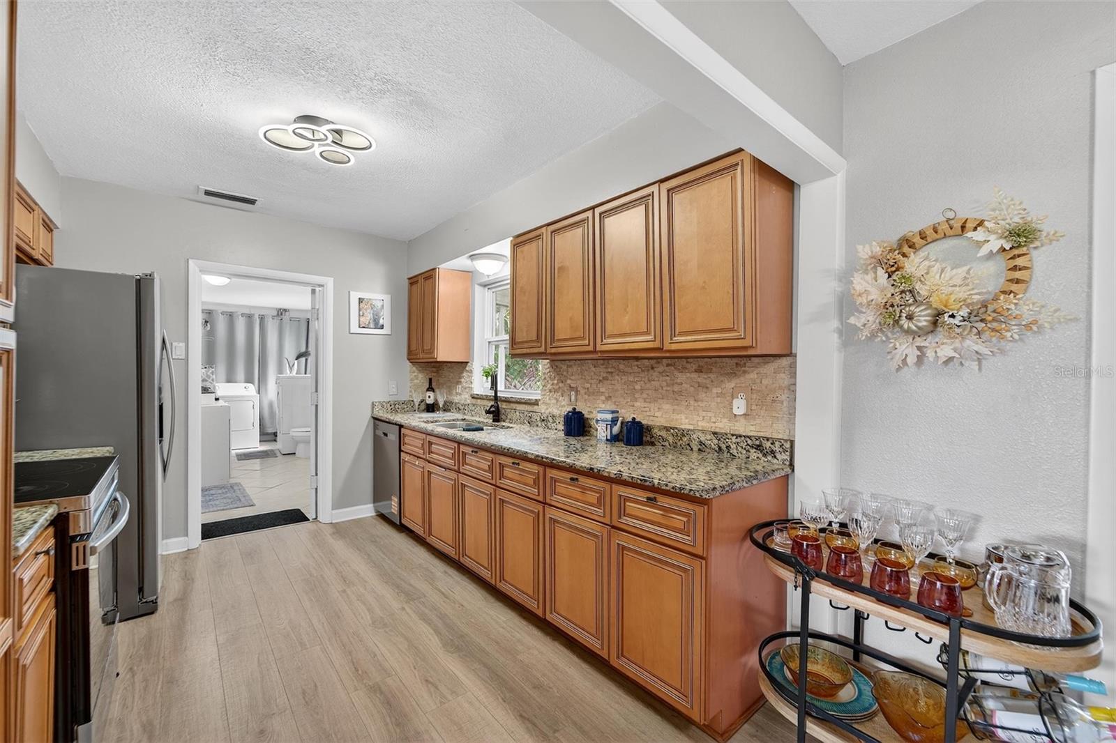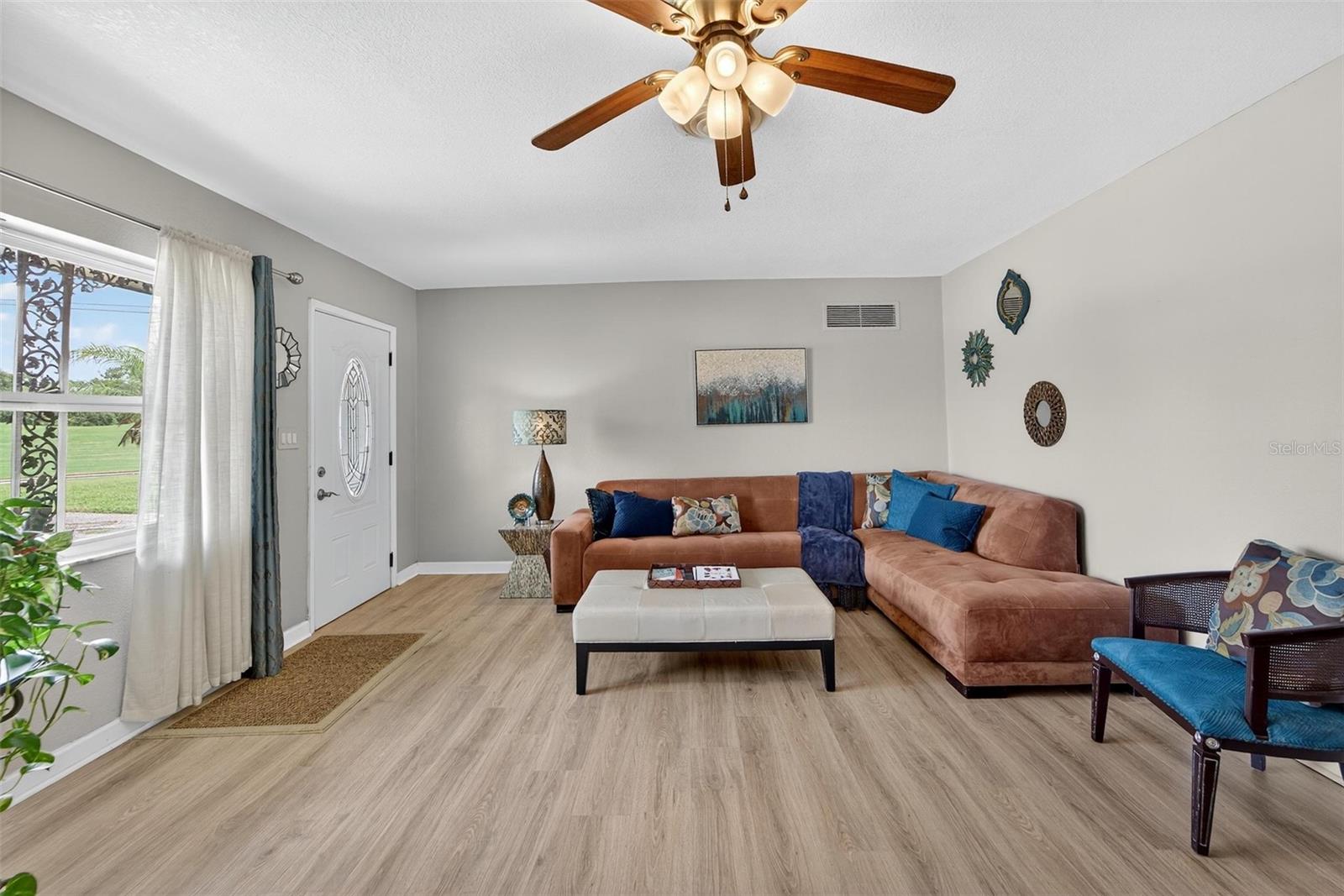 NO FLOOD ZONE – NEW ROOF – MOTIVATED SELLER! This beautifully updated 3-bedroom, 2-bathroom home in Lakewood Estates is move-in ready with major improvements already completed. Enjoy a new roof, refrigerator, dishwasher, and water heater (all 2025), new flooring (2023), and an A/C unit from 2017. A full remodel in 2012 introduced impact windows, updated bathrooms, modern finishes, new doors, electrical upgrades, and more. Located on a lush, oversized corner lot directly on the 6th hole (Par 5) of the St. Petersburg Country Club golf course, this home offers peace, privacy, and a premium location just minutes from Boyd Hill Nature Preserve, Lake Maggiore, USF, Downtown St. Pete, award-winning beaches, and the growing Skyway Marina District. Inside, the split-bedroom layout features a spacious primary suite, a formal dining area, and a bright kitchen with ample cabinet space and a cozy breakfast nook. The dining area opens to a huge lanai, a tropical backyard retreat with lush landscaping, a custom paver patio, fire pit area, full irrigation system, and a fruit-producing mango tree — perfect for relaxing or entertaining. A side-entry garage and extra space for a boat, trailer, or RV offer added flexibility. The home has been maintained as a smoke-free, pet-free property. There’s no HOA and no flood insurance required. A home warranty is included, and a wind mitigation report is available. The seller is motivated, open to reasonable offers, and may include furnishings. Schedule your private showing today — this one won’t last!