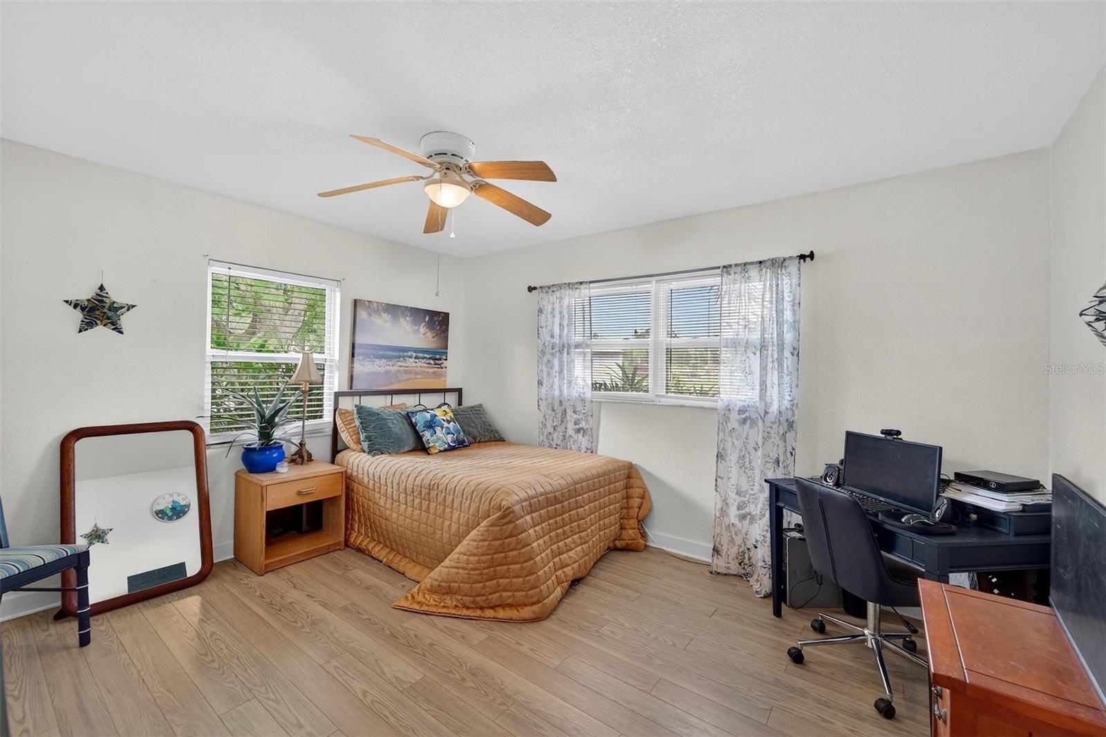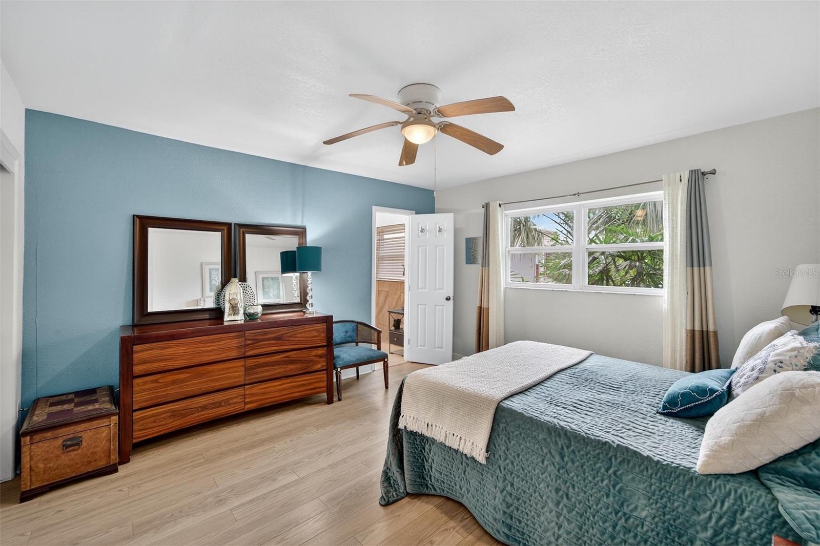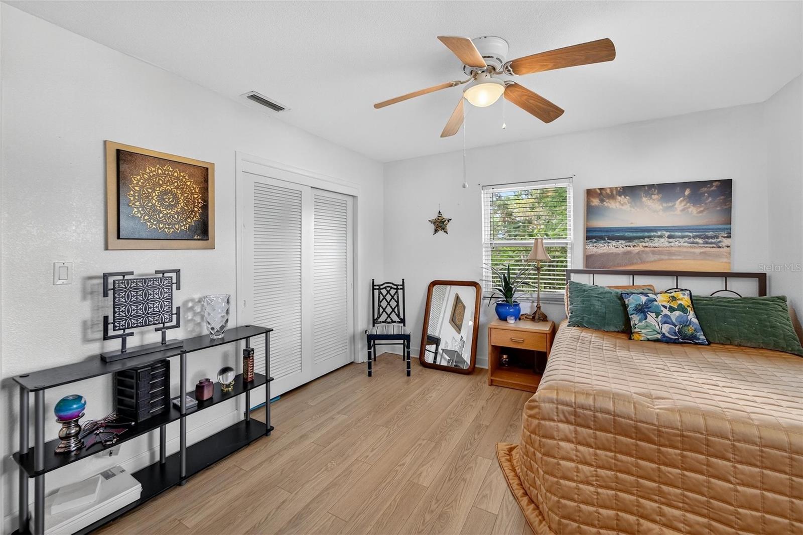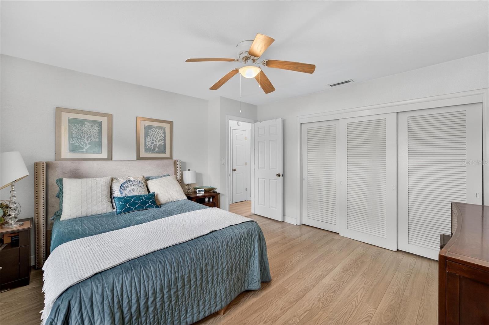 Ceiling Fans(s), Primary Bedroom Main Floor, Solid Surface Counters, Solid Wood Cabinets, Thermostat, Walk-In Closet(s)