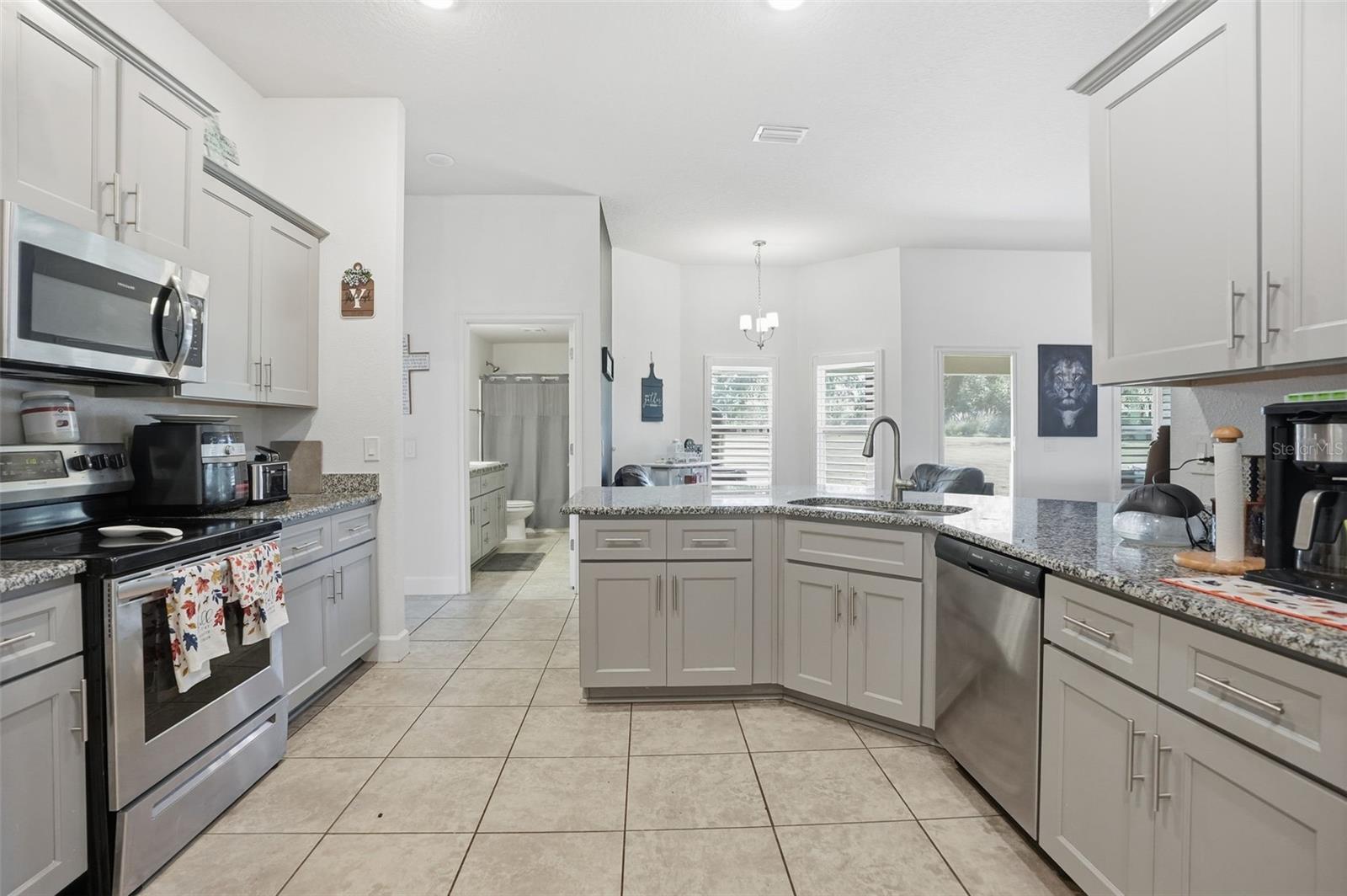 Eat-in Kitchen, High Ceilings, Kitchen/Family Room Combo, Open Floorplan, Primary Bedroom Main Floor, Thermostat, Walk-In Closet(s)