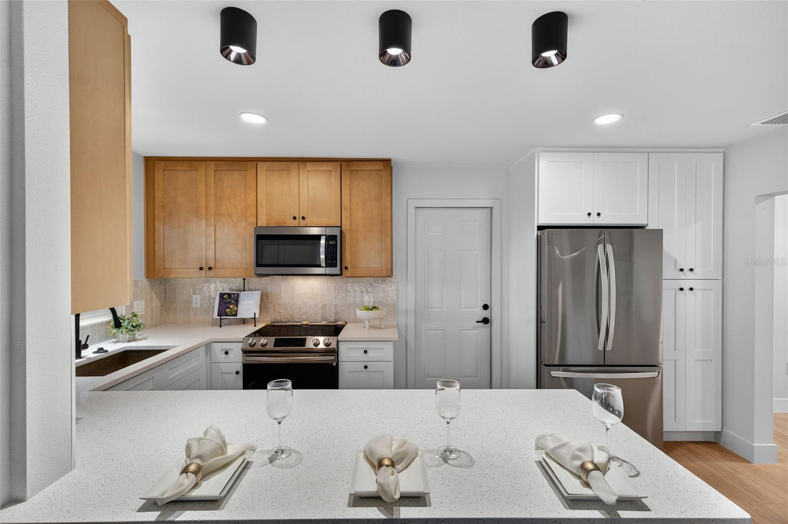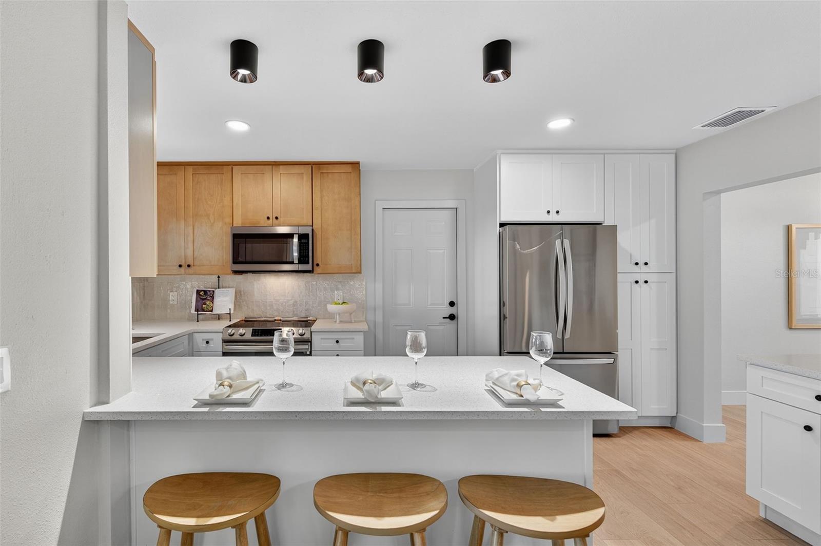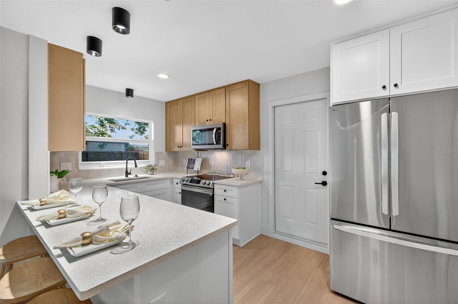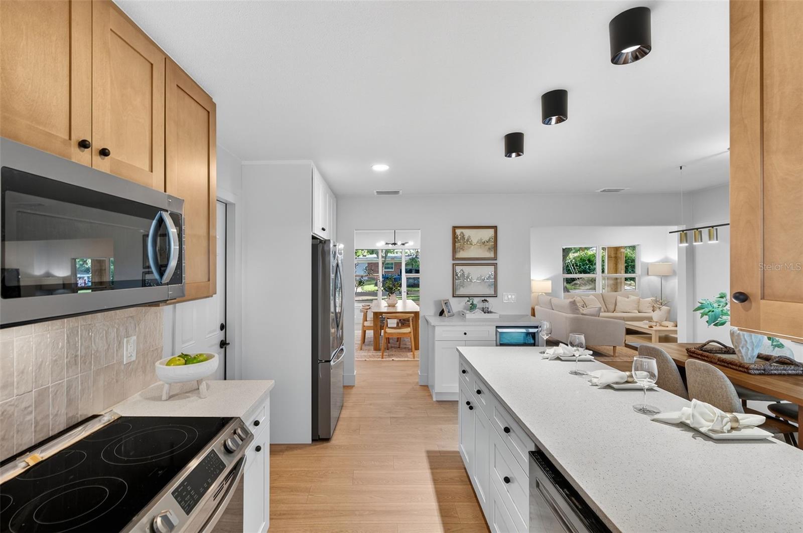 Under contract-accepting backup offers. Welcome to your beautifully renovated South Tampa home! This stunning 3 bedroom, 2 bath home with a 1-Car Garage offers 1, 488 square feet of thoughtfully designed living space. Major updates include 2025 Roof, 2025 HVAC system, 2025 hurricane-impact windows, updated electrical, and fully renovated kitchen and bathrooms. Every surface has been refreshed, from new luxury vinyl plank flooring and baseboards to interior doors, lighting, and hardware. The curb appeal impresses with wood pillars, green accents, a long driveway, and fresh landscaping. As you step inside, you’re immediately greeted by a bright, open-concept layout that seamlessly connects the living and dining areas, filled with natural light and neutral finishes. The living room features a built-in fireplace, creating a warm and inviting atmosphere. The home offers multiple dining options with a formal dining area, casual coffee table seating, and countertop seating in the kitchen, providing plenty of space for meals and gatherings. The designer kitchen features an L-shaped countertop with plenty of countertop space, quartz countertops, tile backsplash, stainless steel appliances, ample cabinetry, and a wet bar with wine cooler, perfect for hosting and everyday cooking. Step outside the sliding glass doors into the spacious, fully fenced backyard, featuring a brand-new tiled patio and a magnificent banyan tree. The primary suite is a serene escape with an ensuite bath featuring designer tile work, a frameless glass shower, and contemporary fixtures. Both guest bedrooms are oversized, offering flexibility for a home office or gym, and share a beautifully renovated full bath with a large vanity and modern finishes. The one-car garage is oversized, providing plenty of room for parking, storage, or a workspace. Located in the heart of South Tampa, this home offers the perfect balance of quiet residential living and unbeatable convenience. You’re just minutes from Bayshore Boulevard, the Selmon Expressway, Downtown Tampa, MacDill AFB, Hyde Park, and Downtown St. Pete, plus top-rated restaurants, shopping, and everyday essentials. This home is truly move-in ready and perfectly positioned in one of Tampa’s most desirable neighborhoods. Schedule your private showing today!