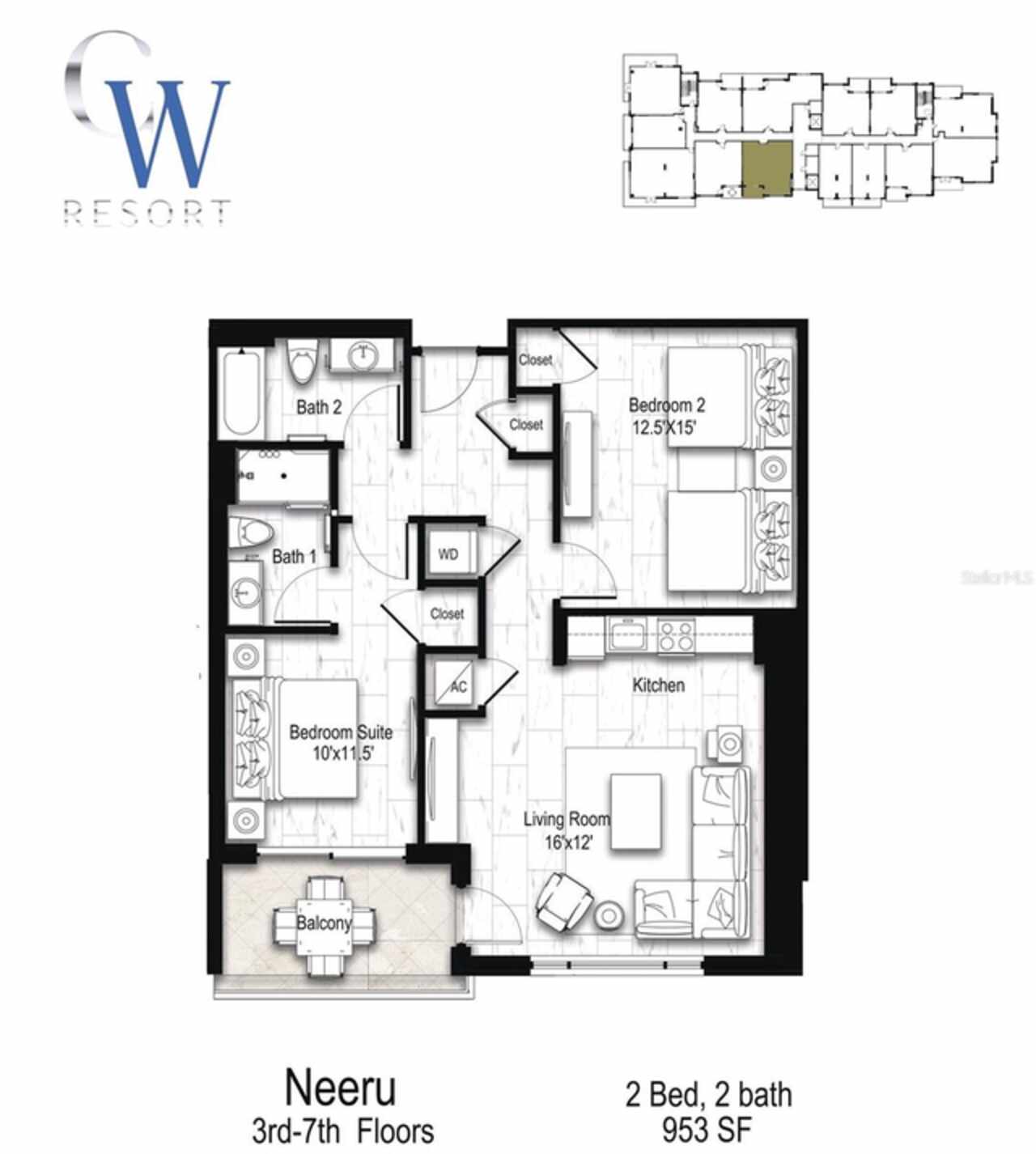 Pre-Construction. To be built. Welcome to CW Resort, a premier luxury condo hotel just moments from the award-winning Clearwater Beach. EXCEPTIONAL INVESTMENT OPPORTUNITY TO OWN AN INCOMING PRODUCING HOTEL SUITE. Designed for both investment and leisure, this exclusive development offers an unmatched 80/20 revenue share, complimentary valet service, and limited-time incentives. Owners have the flexibility to rent their units or enjoy personal stays for up to 30 consecutive days. Each of the 91 exclusive residences is thoughtfully designed with high ceilings, impact-rated windows and doors, imported ceramic flooring, custom European-style cabinetry, stone countertops, frameless glass showers, and deep soaking tubs. Wake up to breathtaking sunrises from your private terrace and unwind with panoramic sunsets over Clearwater Bay. Crafted for comfort and convenience, every unit features modern aesthetics, premium finishes, and cutting-edge smart home technology, including voice-activated controls, keyless entry, programmable lighting, energy-efficient LED fixtures, and high-performance air conditioning systems. Resort-style amenities include a state-of-the-art fitness center, a variety of water activities, boat rentals, an upscale restaurant and bar, a spacious outdoor pool with a hot tub, private cabanas, and a scenic amenity terrace overlooking the bay. Boating enthusiasts can take advantage of first-come, first-served boat slips available for purchase. Ideally located just a short stroll from Pier 60, the Marine Aquarium, Island Yacht Club, shopping, dining, and the vibrant Clearwater Beach scene, CW Resort places you at the heart of it all. Limited Availability: NEERU Model – 953 sq. ft available on floors 3-7. Ask about our optional 2-year leaseback program with guaranteed returns or our in-house financing option with competitive rates and just 50% down. Contact us today for an exclusive presentation and to learn more!