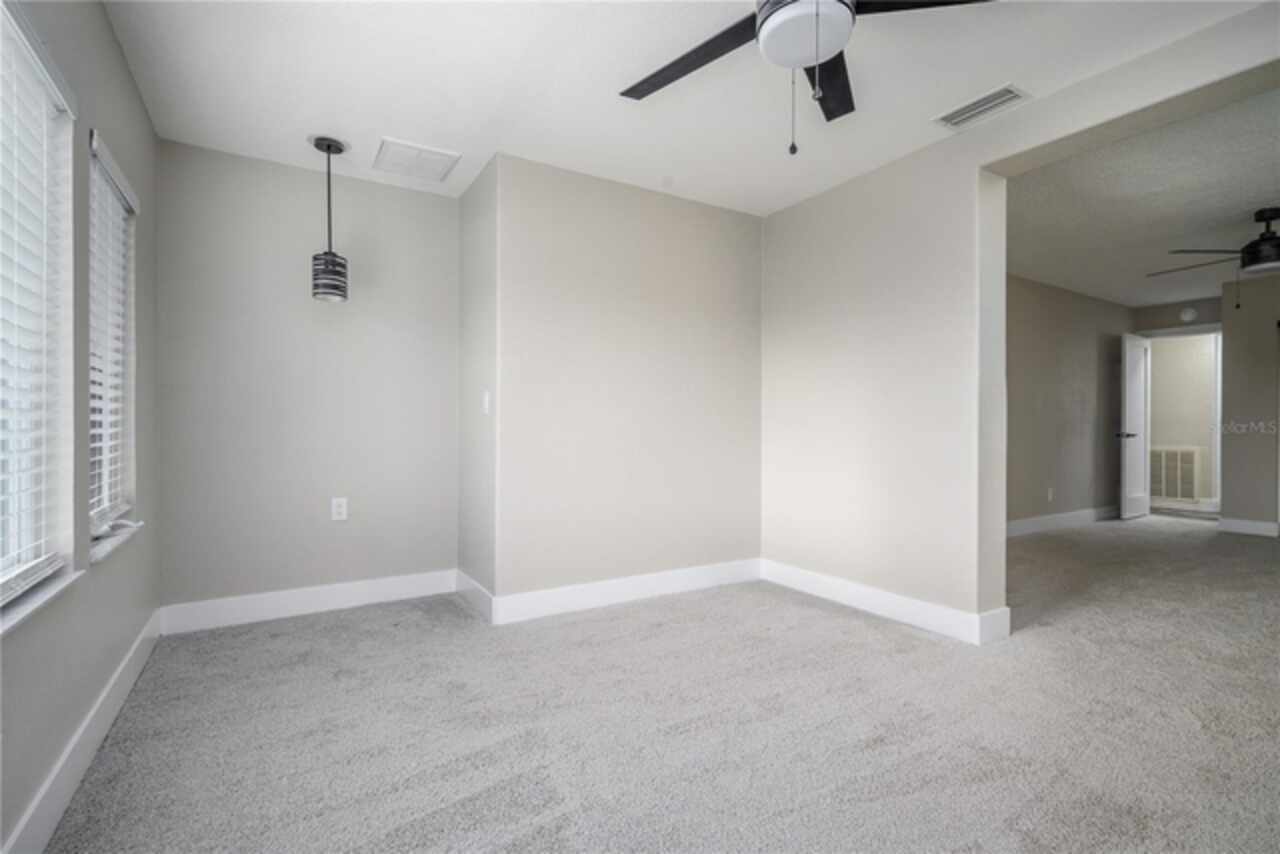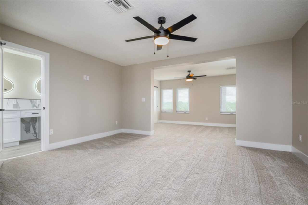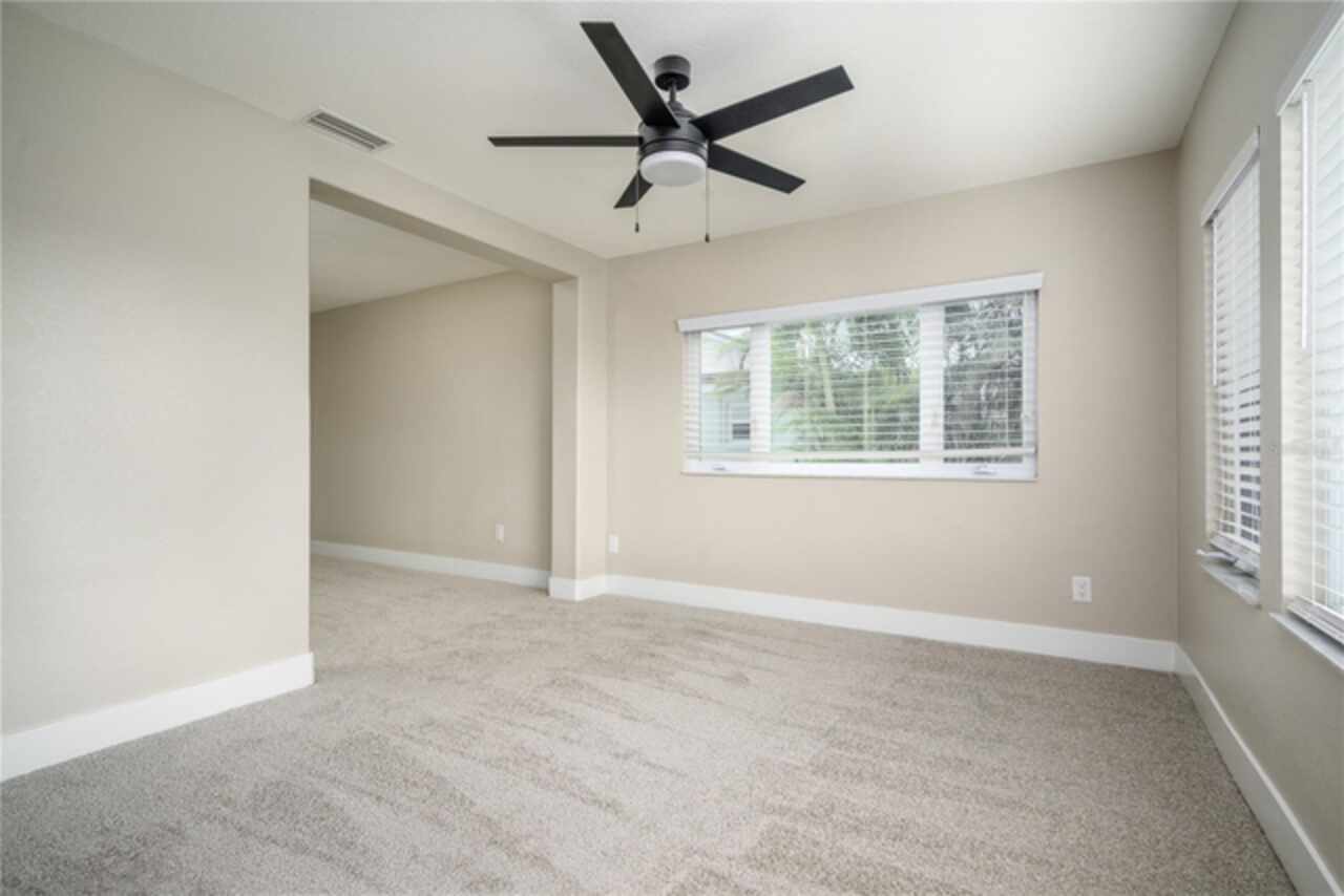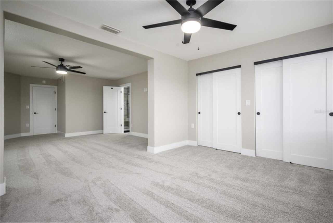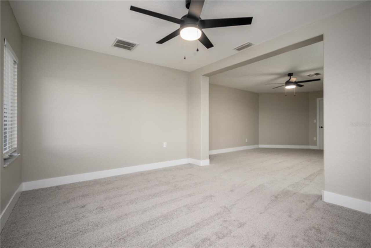 Ceiling Fans(s), Crown Molding, Eat-in Kitchen, Kitchen/Family Room Combo, Open Floorplan, Primary Bedroom Main Floor, Solid Wood Cabinets, Stone Counters, Thermostat, Vaulted Ceiling(s), Walk-In Closet(s), Window Treatments