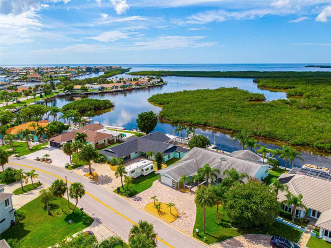 One or more photo(s) has been virtually staged. Completely renovated 3100+ sq ft waterfront ranch in Gulf Harbors Woodlands! This open concept home features a chef's kitchen w/ ice maker, double door refrigerator, soft close wood cabinetry, LED lighting and bonus flex room for office, nursery or gym. Canal-front w/10, 000 lb boat lift+45x12 dock for easy Gulf access. Dual-zoned A/C and modern finishes throughout. Community offers pool, private boat ramp and optional Gulf Harbors Beach Club membership with private beach, volleyball, concerts and event rentals. Florida waterfront living at its best!