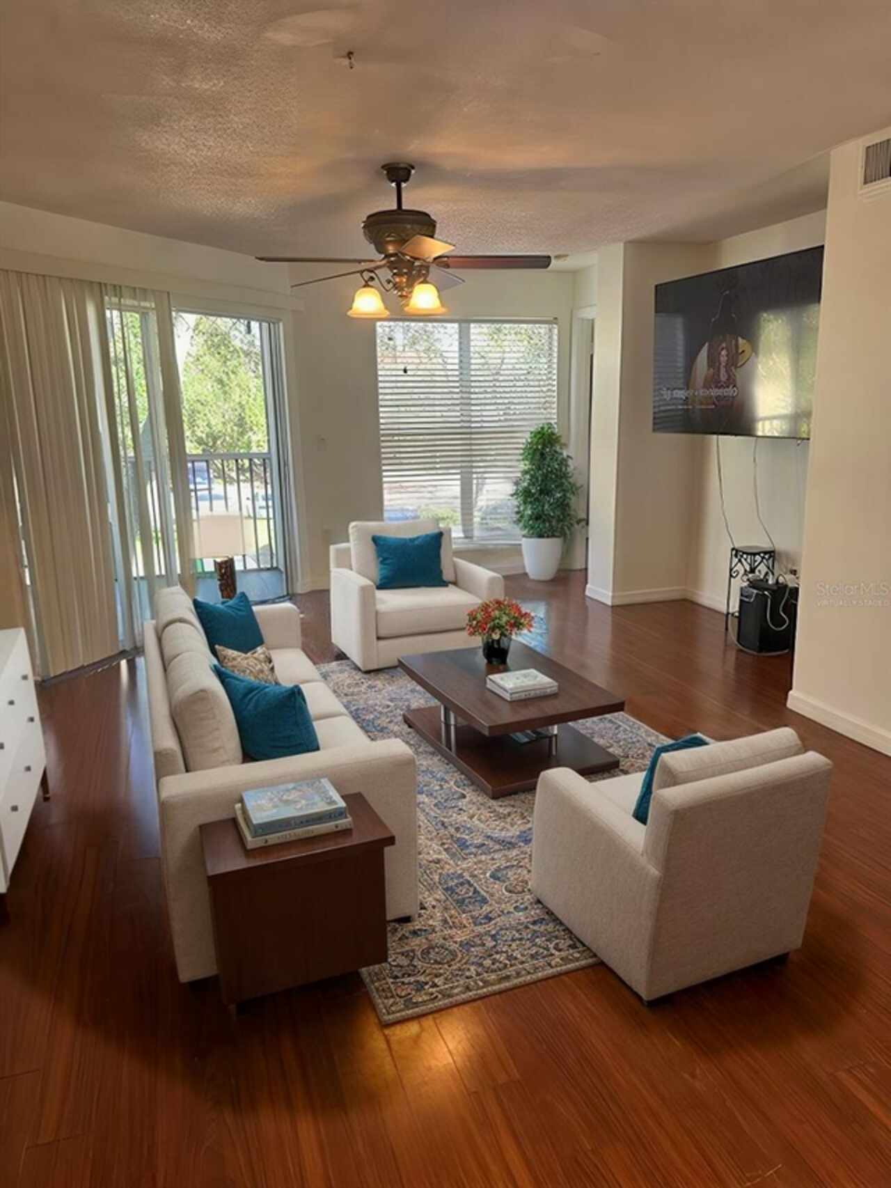 One or more photo(s) has been virtually staged. PRICED TO SELL! You should not miss this comfortably priced CARROLLWOOD property! NEW A/C installed (2025) for years of worry-free comfort. This freshly painted 2-bedroom, 2-bathroom unit located in the heart of the city. Your eyes are greeted by an open floor plan that stretches all the way to the screened in balcony. The entryway leads to the updated kitchen boasting granite counters, induction cooking surface, stainless steel appliances, a pantry and the laundry room equipped with Samsung energy efficient washer and dryer at close proximity. Following the kitchen is an ample combination dining and living area. On the opposite side you will find two spacious bedrooms, the larger with its own ensuite. The second bathroom is conveniently located just past the entryway for guests and adjacent to second bedroom. Bathrooms were recently refreshed with new flooring and refinished tubs and shower areas. Both bedrooms have walk-in closets with plenty of room for your treasures! Sliding glass doors lead out to a newly screened and painted lanai balcony with outside storage. Views of one of two fountained ponds and the mature greenery make this a relaxing oasis for your favorite morning brew. This gated community offers convenient concierge trash service at your door! Other amenities include a spacious event center, a beautiful pool, fitness center, two tennis courts, sand volleyball, and a DOG PARK! Securely located on the second floor you are sure to enjoy nice breezes and birds eye views of the surrounding areas. This unit is conveniently located near the main entrance for easy access to Linebaugh Ave. Carrollwood is a highly sought after area of Tampa where inventory is always low due to its close proximity to great restaurants, shopping, entertainment and more. Just 15 minutes from the airport and downtown Tampa you couldn't be in a more centralized location. Ample and abundant parking spaces for owners and guest makes entertaining easy. This condo is priced to sell so don't wait, come and see the most reasonably priced two-bedroom in Carrollwood!