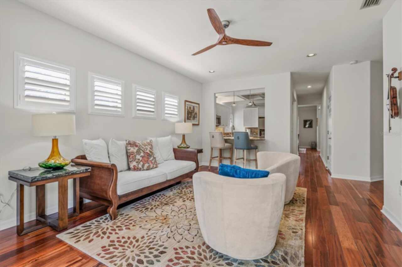 Nestled on a tranquil street, in the highly sought-after Roberts Point neighborhood of Siesta Key, this stunning elevated home offers the perfect blend of luxury, privacy, and coastal charm. Situated just moments from the world-renowned Siesta Beach and the vibrant Siesta Village, this beautifully maintained two-story residence offers the perfect combination of comfort, convenience, and Florida living. The layout features spacious living and dining areas, with plantation shutter windows that fill the home with natural light and allow for a seamless connection to the outdoors. The well-appointed kitchen includes modern appliances, ample cabinetry, and a large island, making it an ideal space for cooking and entertaining. The master suite is a private retreat, with plenty of closet space and an en-suite bathroom that offers a relaxing atmosphere. Additional bedrooms are generously sized and perfect for family or guests. Step outside to your private, nicely landscaped backyard, an ideal setting for relaxation and entertaining. Enjoy Florida’s beautiful weather on the expansive composite deck, complete with an outdoor shower—perfect for rinsing off after a day at the beach. The lush greenery and well-maintained yard create a tranquil, private oasis. This home’s prime location offers easy access to the best of Siesta Key—whether it's lounging on the soft sands of Siesta Beach, exploring the unique shops and restaurants in Siesta Village, or enjoying local parks and recreational activities. This is your chance to own a slice of paradise in one of the most coveted neighborhoods on Siesta Key. Schedule your private showing today and make this beautiful home your own!