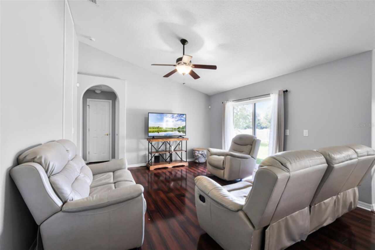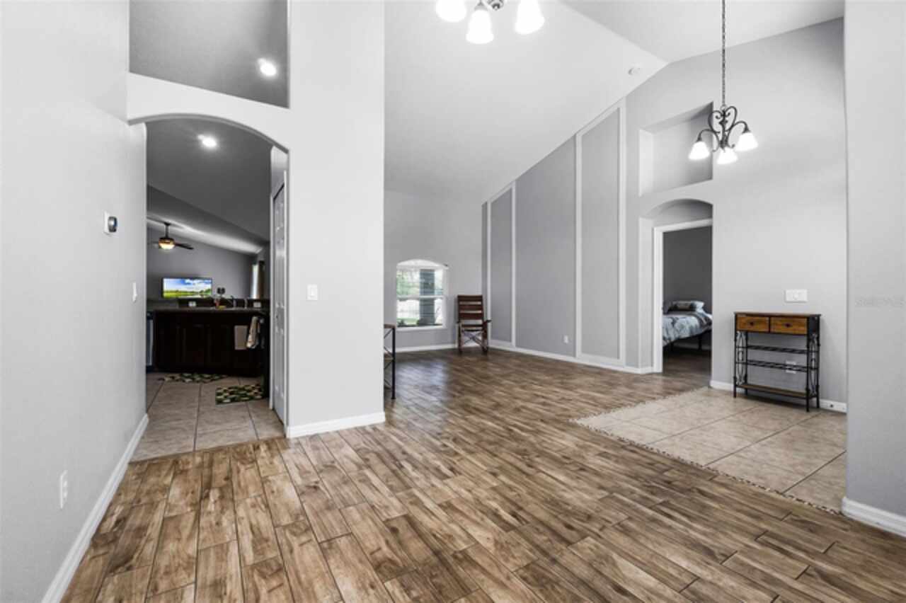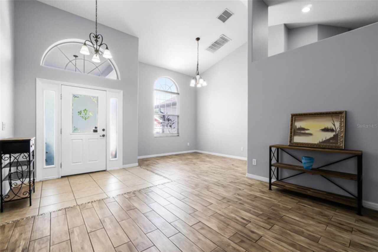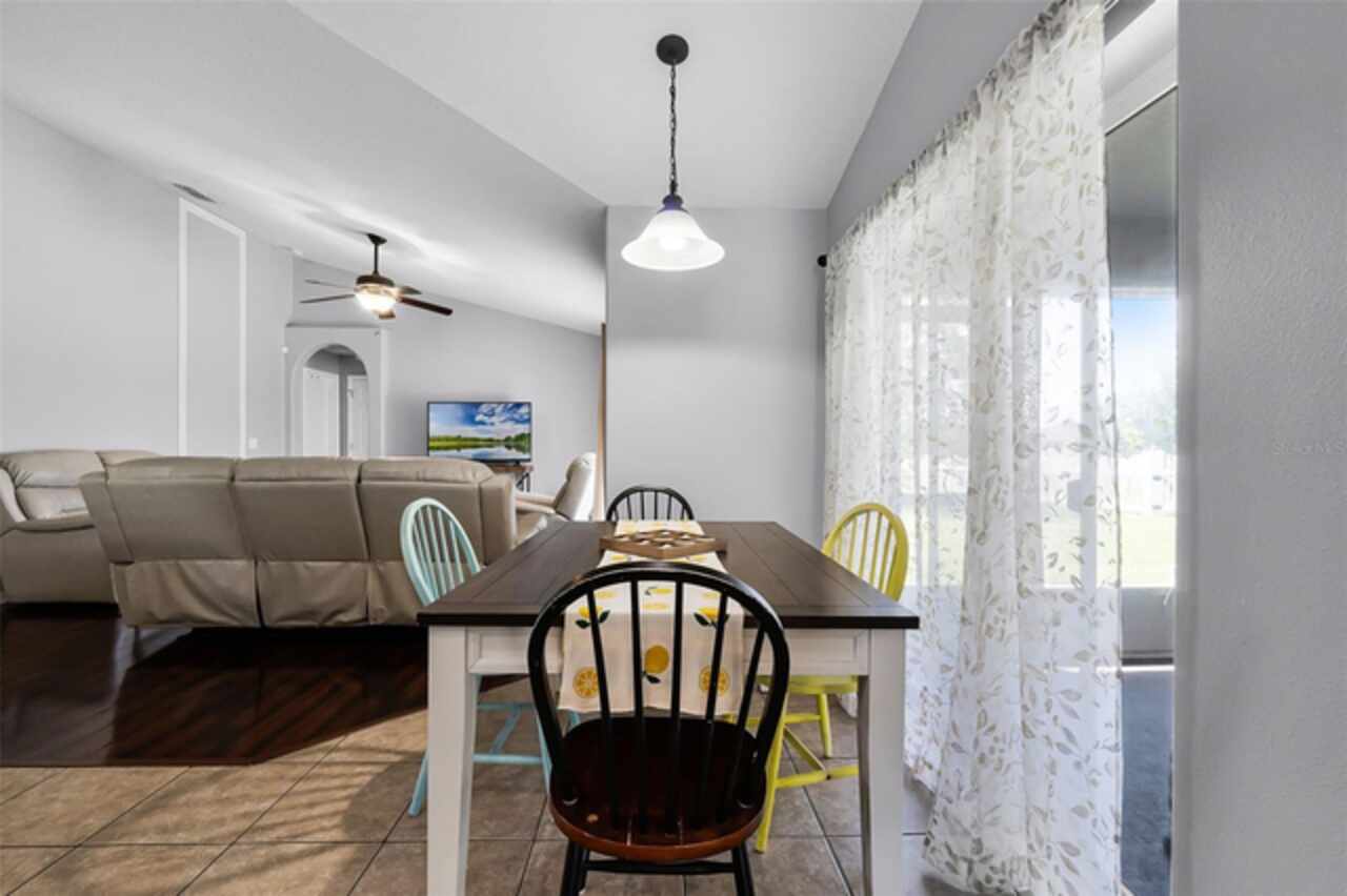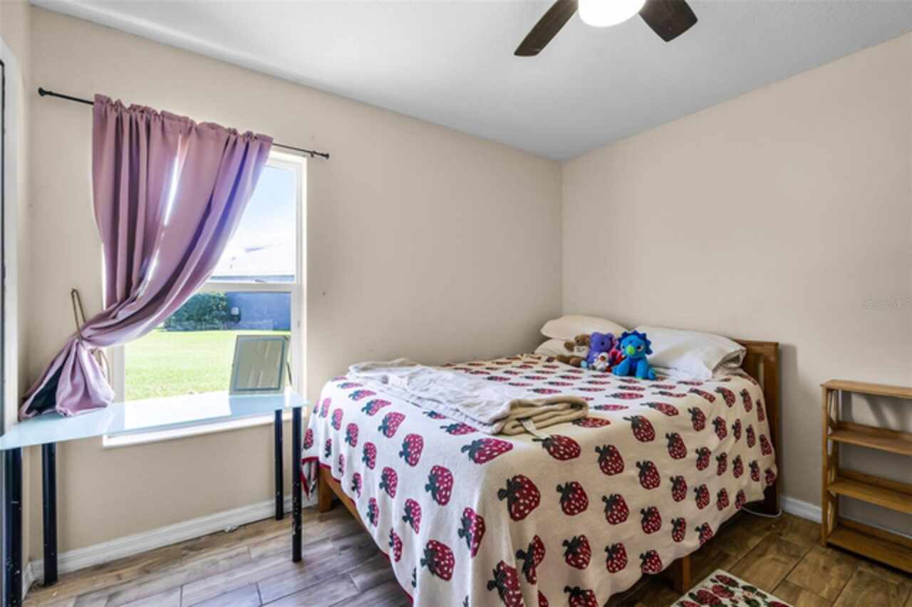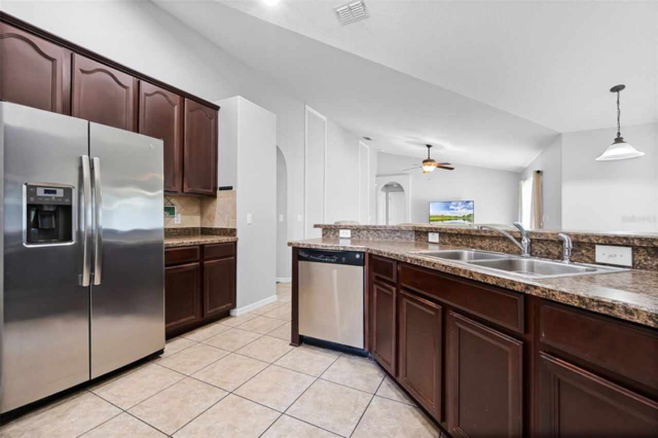 Amazingly Updated Bathrooms! Fully paid off solar! New roof in 2023! HVAC- 2021! New tankless water heater- 2024! Newly installed insulation and gutters. Welcome to this turn-key 4 bedroom, 3 bathroom, 2-car garage home. Step inside, into the foyer with vaulted ceiling and into your dining room which flows into your living room. As you walk past the dining room, you will be greeted by the kitchen which features stainless steel appliances and a beautiful cherry wood cabinets. The family room and breakfast nook are off of the kitchen, making it the perfect home for entertaining. A split floorpan is ideal and offers a private retreat for you and your family or guests. Step into your primary suite with sliding glass doors that lead out to your covered lanai, vaulted ceilings, and an ensuite bathroom with dual sinks, an elegant freestanding tub, and a beautifully renovated, walk-in shower. On the opposite side of the home, you will find the 3 additional bedrooms, and two freshly renovated bathrooms. Step outside onto your covered and screen-enclosed outdoor lanai and enjoy the beautiful views of the pond. The spacious backyard is a great addition and offers plenty of space for play and entertainment. The paid off solar allows for very low electric bills and is energy efficient! Sellers are also providing a home warranty plan for 1 year! Within the Indian Lakes community, you will find a large outdoor pool with public restrooms, a tennis court, sidewalks throughout, and a shaded playground area. In close proximity to Florida’s Turnpike for easy commutes and only 35 minute drive to Disney, 30 minute drive to Universal, this home is in an ideal location. Make this move-in ready home your forever home! Schedule a showing today!
