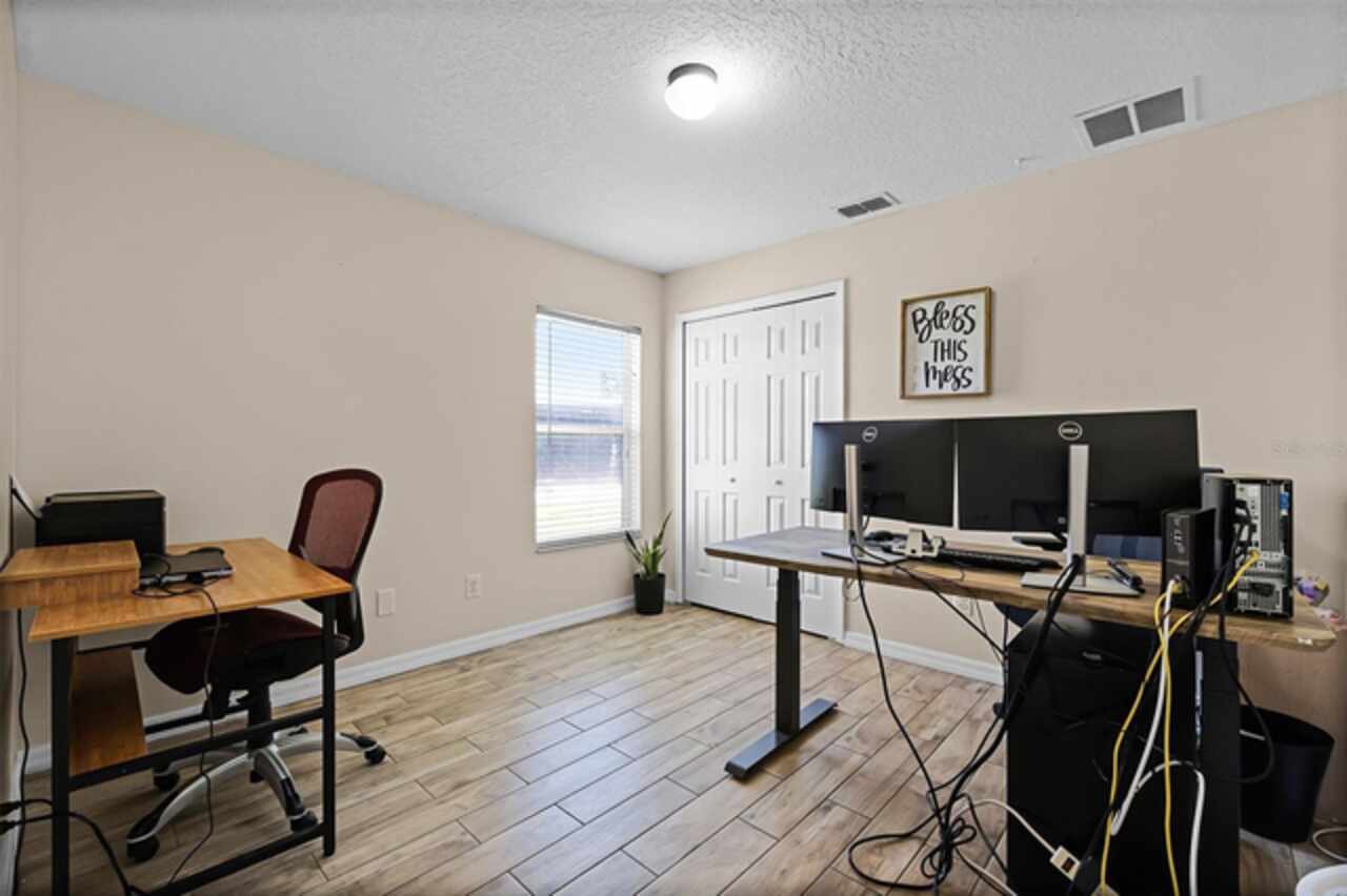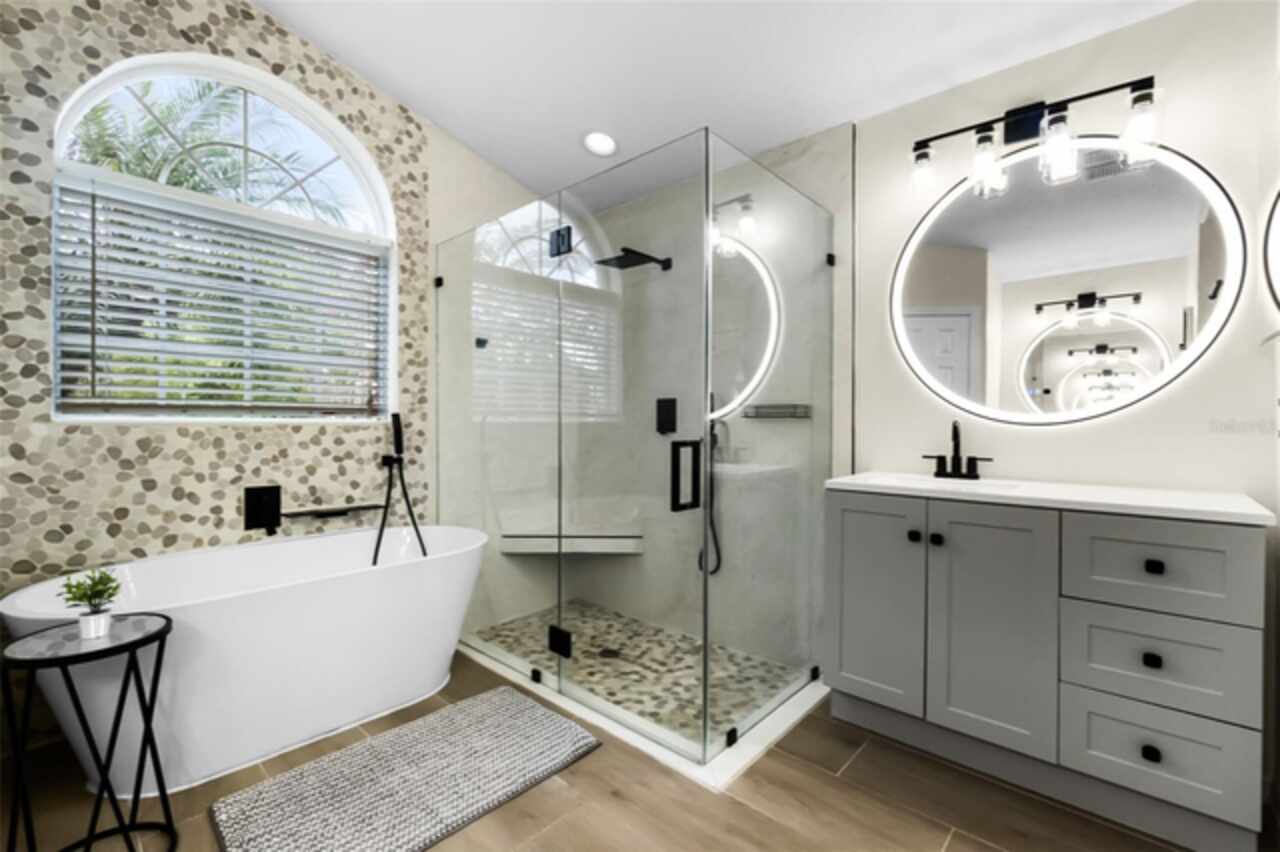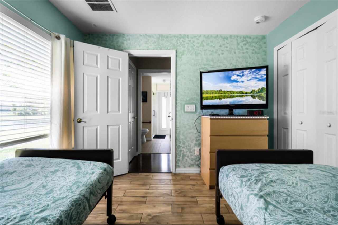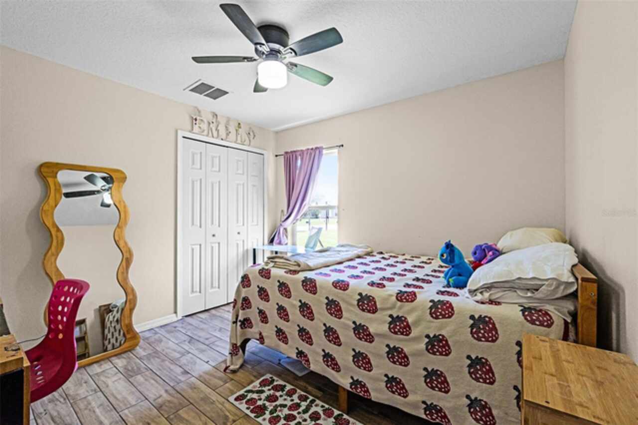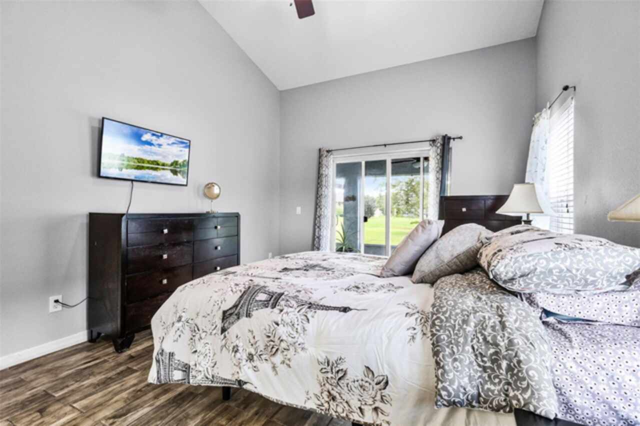 Amazingly Updated Bathrooms! Fully paid off solar! New roof in 2023! HVAC- 2021! New tankless water heater- 2024! Newly installed insulation and gutters. Welcome to this turn-key 4 bedroom, 3 bathroom, 2-car garage home. Step inside, into the foyer with vaulted ceiling and into your dining room which flows into your living room. As you walk past the dining room, you will be greeted by the kitchen which features stainless steel appliances and a beautiful cherry wood cabinets. The family room and breakfast nook are off of the kitchen, making it the perfect home for entertaining. A split floorpan is ideal and offers a private retreat for you and your family or guests. Step into your primary suite with sliding glass doors that lead out to your covered lanai, vaulted ceilings, and an ensuite bathroom with dual sinks, an elegant freestanding tub, and a beautifully renovated, walk-in shower. On the opposite side of the home, you will find the 3 additional bedrooms, and two freshly renovated bathrooms. Step outside onto your covered and screen-enclosed outdoor lanai and enjoy the beautiful views of the pond. The spacious backyard is a great addition and offers plenty of space for play and entertainment. The paid off solar allows for very low electric bills and is energy efficient! Sellers are also providing a home warranty plan for 1 year! Within the Indian Lakes community, you will find a large outdoor pool with public restrooms, a tennis court, sidewalks throughout, and a shaded playground area. In close proximity to Florida’s Turnpike for easy commutes and only 35 minute drive to Disney, 30 minute drive to Universal, this home is in an ideal location. Make this move-in ready home your forever home! Schedule a showing today!