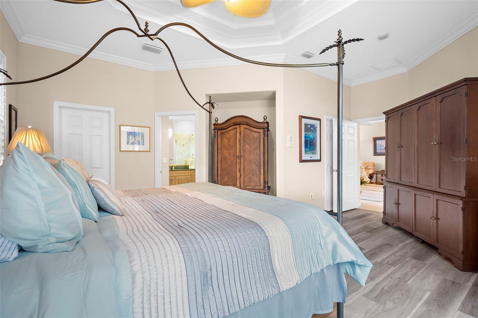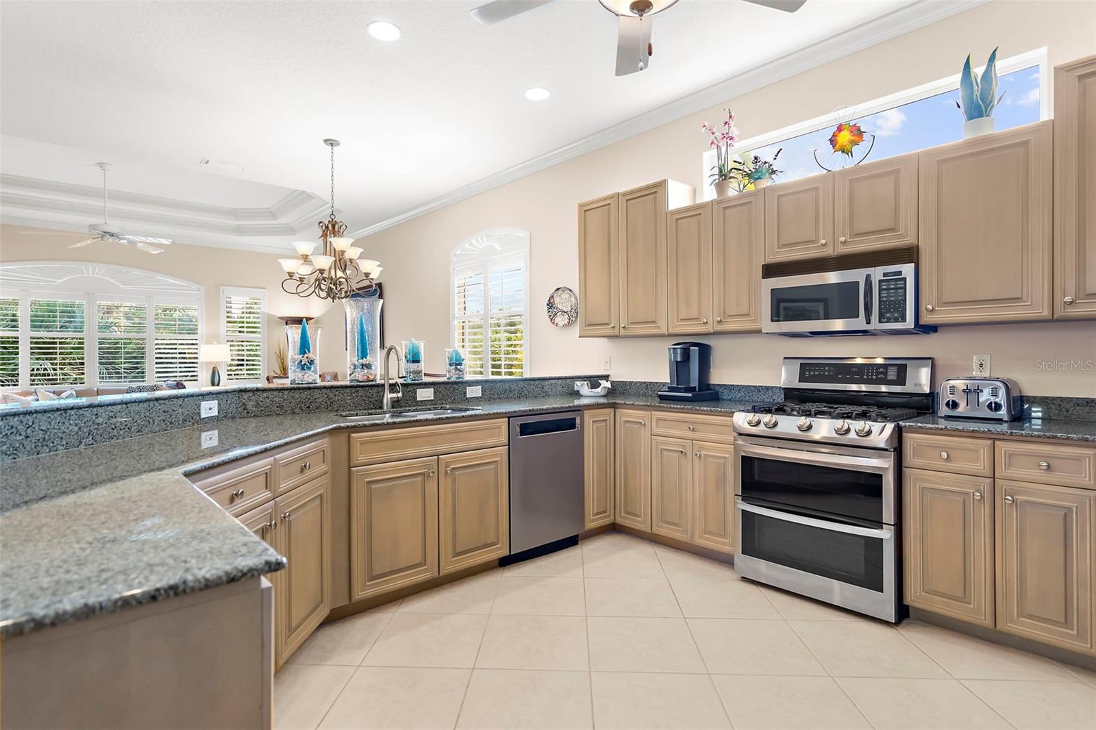 Cathedral Ceiling(s), Ceiling Fans(s), Central Vaccum, Coffered Ceiling(s), Crown Molding, Eat-in Kitchen, High Ceilings, Kitchen/Family Room Combo, Living Room/Dining Room Combo, Open Floorplan, Other, Solid Wood Cabinets, Split Bedroom, Stone Counters, Walk-In Closet(s), Window Treatments