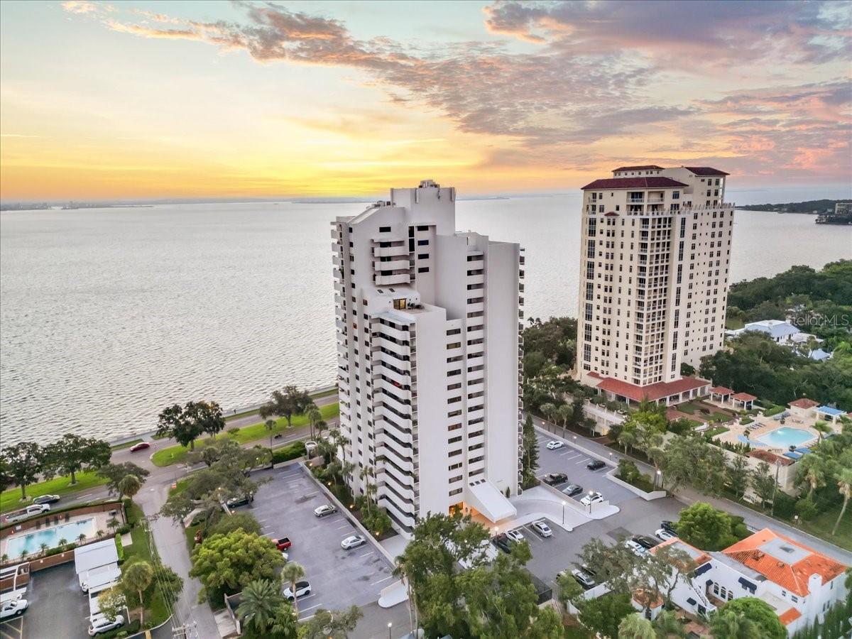 1 year HOA DUES PAID BY SELLER AT CLOSING. Experience waterfront luxury in this 17th-floor penthouse-style end unit on prestigious Bayshore Boulevard, boasting stunning views of Tampa Bay, Hillsborough Bay, and the Downtown Tampa and St. Pete skylines. Enjoy direct access to the 4.5-mile Bayshore Trail for walking, jogging, or cycling, while being steps from Tampa's vibrant cultural scene, dining, and entertainment. This spacious condo features two assigned parking spaces, two ensuite bedrooms with balconies, a third bedroom with built-in closet and water views (ideal as a workspace), and a third full bath. The custom kitchen is a chef’s dream with custom cabinets and high end quartz counters. The great room boasts a wet bar, skylights, and opens to a massive rooftop terrace, perfect for indoor/outdoor living. Additional highlights include new 2025 LG washer/dryer, dual-zone Trane HVAC, new water heater, abundant storage, one garage and one outdoor parking space, and premium cable included in HOA. The well-maintained building offers controlled access, a concierge, pool, gym with saunas, game room, meeting room, pet yard, and backup generator. Milestone inspections passed, with strong reserves. Schedule your showing today!