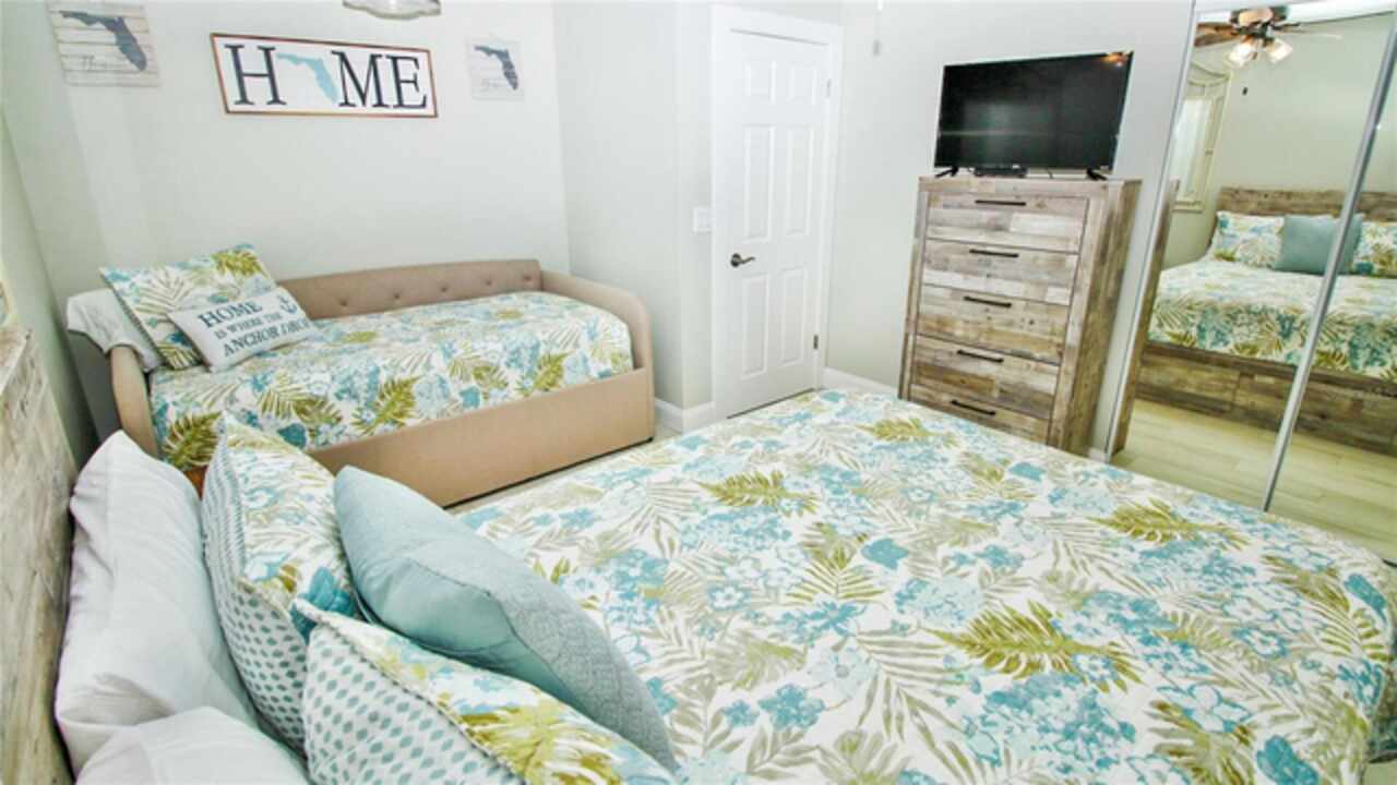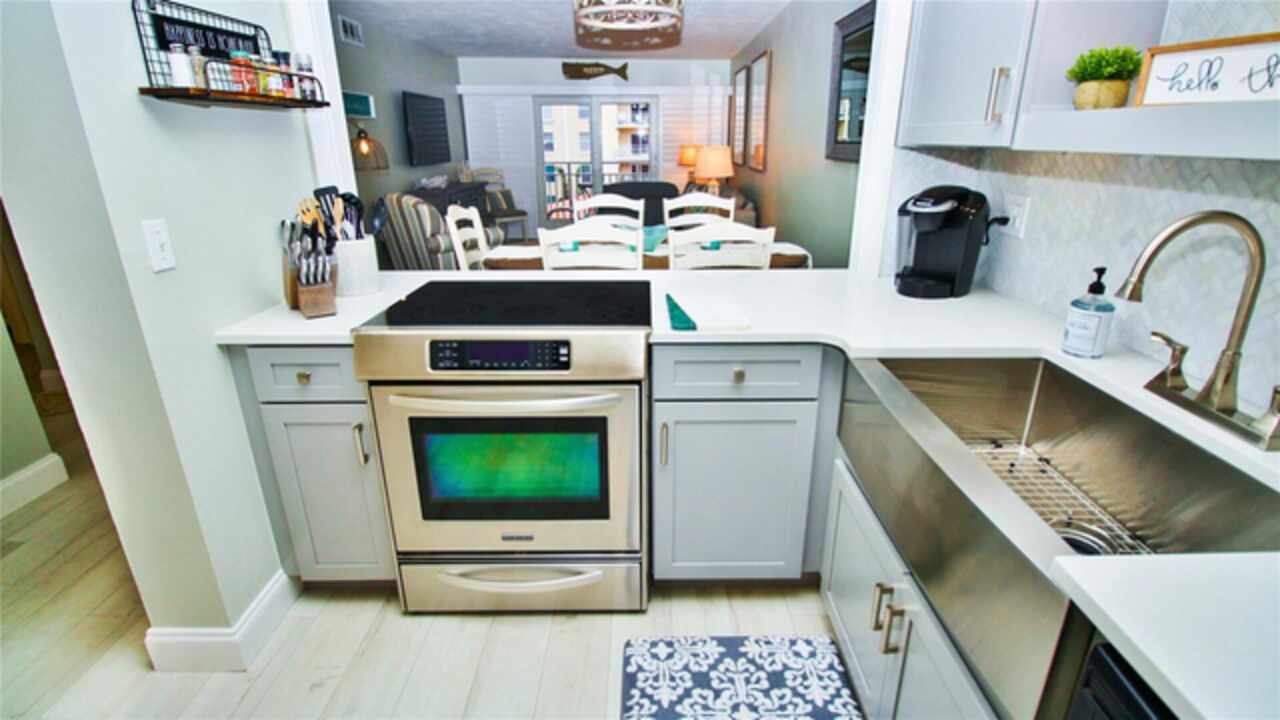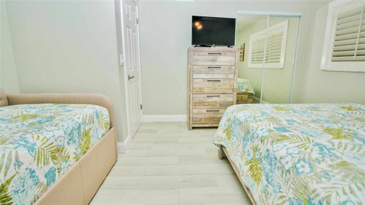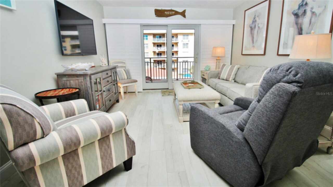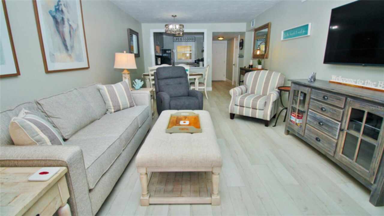 Step into coastal living at its finest with this fully renovated, turn-key, oceanview condo in the highly sought-after Sea Coast Gardens III. This rare open-concept layout—hard to find in the building—seamlessly connects the modern kitchen, dining, and living spaces, all bathed in natural light and complemented by sweeping views of the Atlantic. The chef’s kitchen features quartz countertops, stainless steel appliances, a farmhouse sink, and custom cabinetry—perfect for both entertaining and everyday living. Enjoy peace of mind knowing the HOA reserves are fully funded and recent major projects—concrete restoration, brand new seawall, new pavers, upgraded pool deck, and a new clubhouse roof—are already completed and paid for. This unit is located on Side 3 of the complex, which is pet-friendly for both owners and guests, making it a rare gem for the New Smyrna Beach rental market. Completely furnished and thoughtfully redesigned for comfort and functionality, the condo sleeps up to six guests, with a spacious master suite and a guest bedroom configured to comfortably host four—ideal for maximizing short-term rental income from day one. The bathrooms have been tastefully updated, and every detail has been curated with a blend of coastal charm and modern elegance. Beyond your private balcony, the community offers two large pools, a kiddie pool, direct beach access, shuffleboard, and beautifully maintained common areas—all just steps from the no-drive section of the beach. Whether you’re looking for a second home, income-generating vacation rental, or both, this property offers the perfect blend of investment potential and beachside luxury. Don’t miss your chance to own a piece of paradise—schedule your private showing today.
