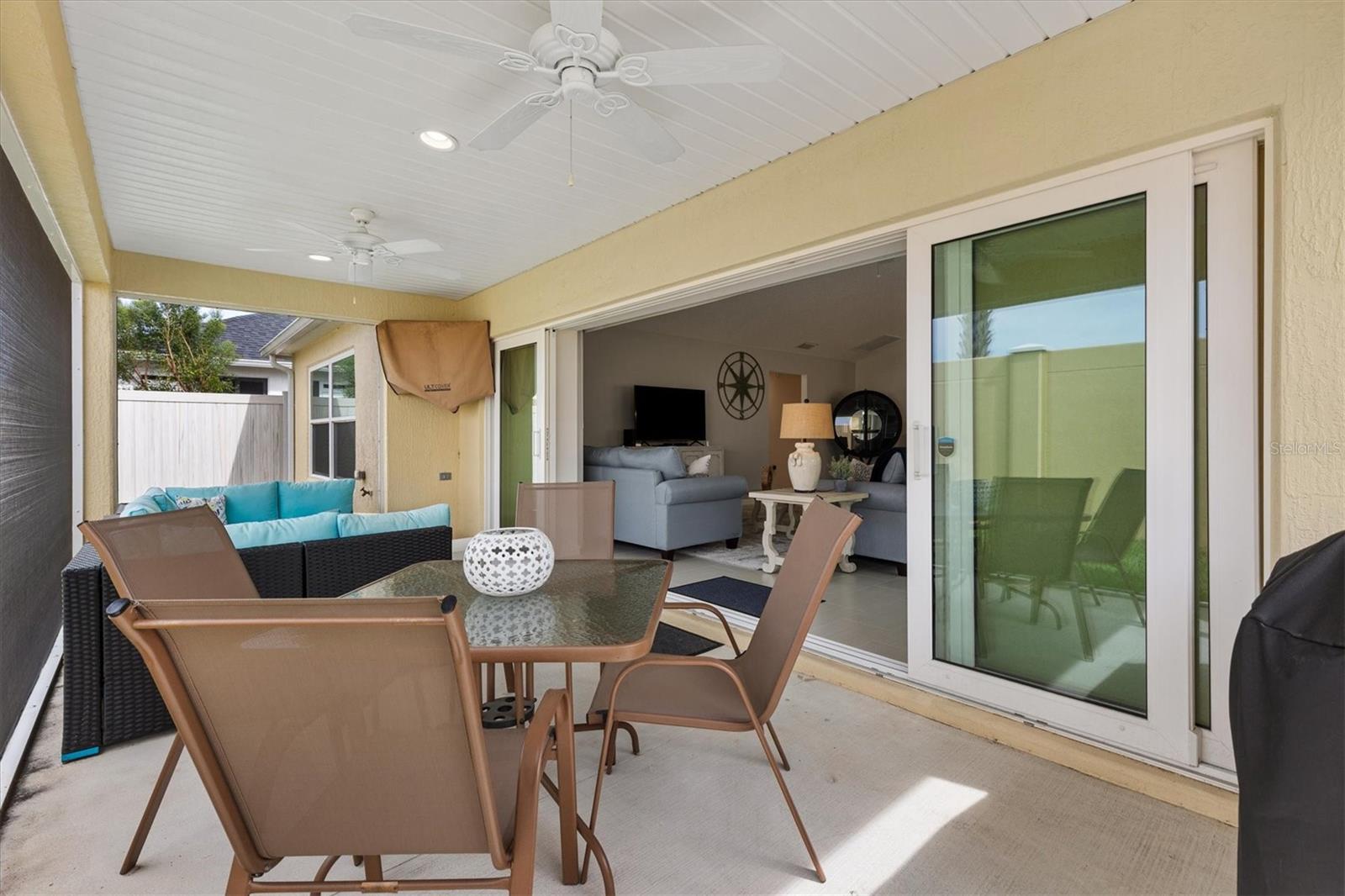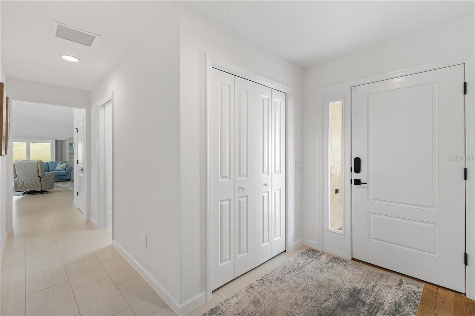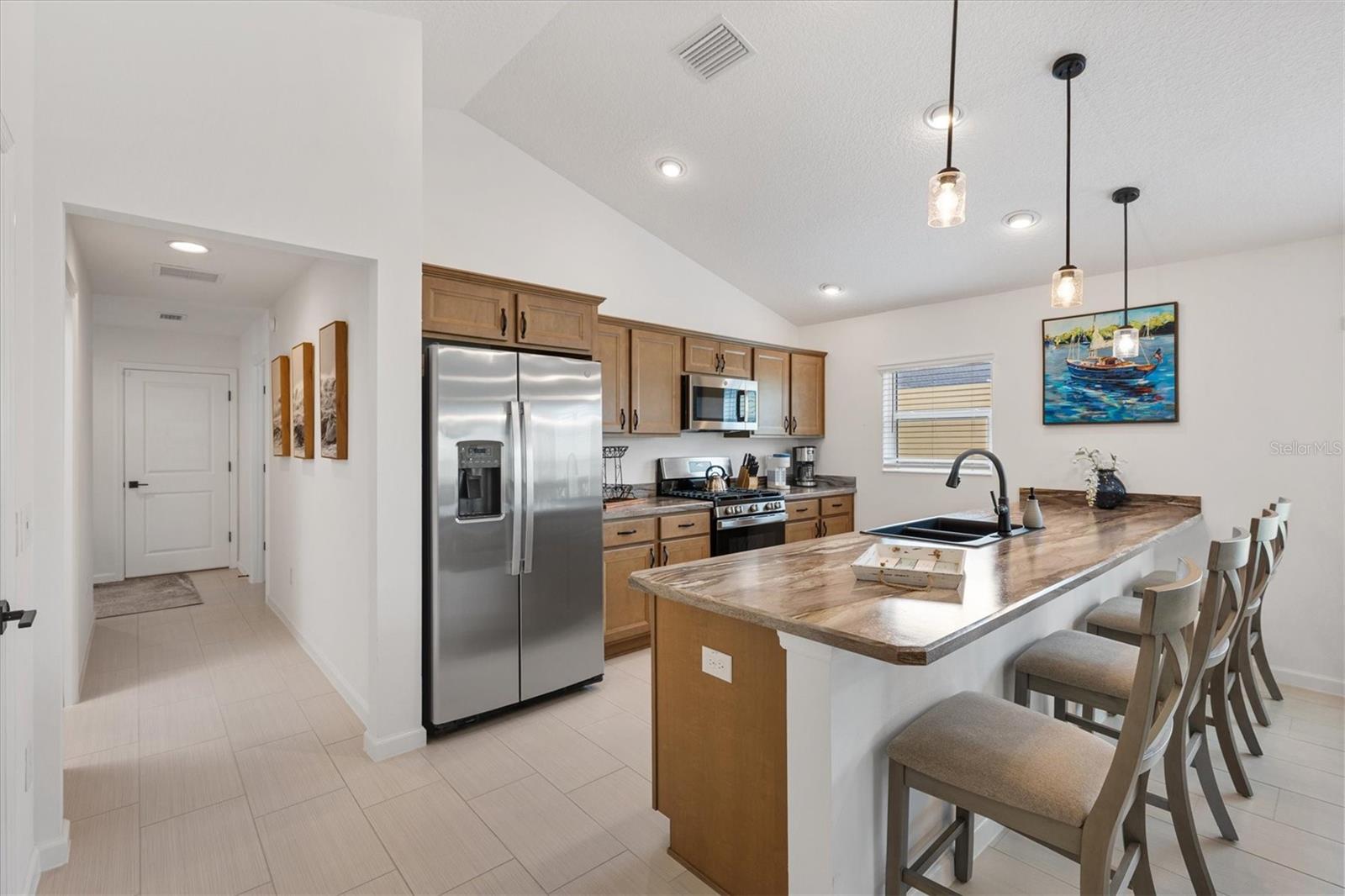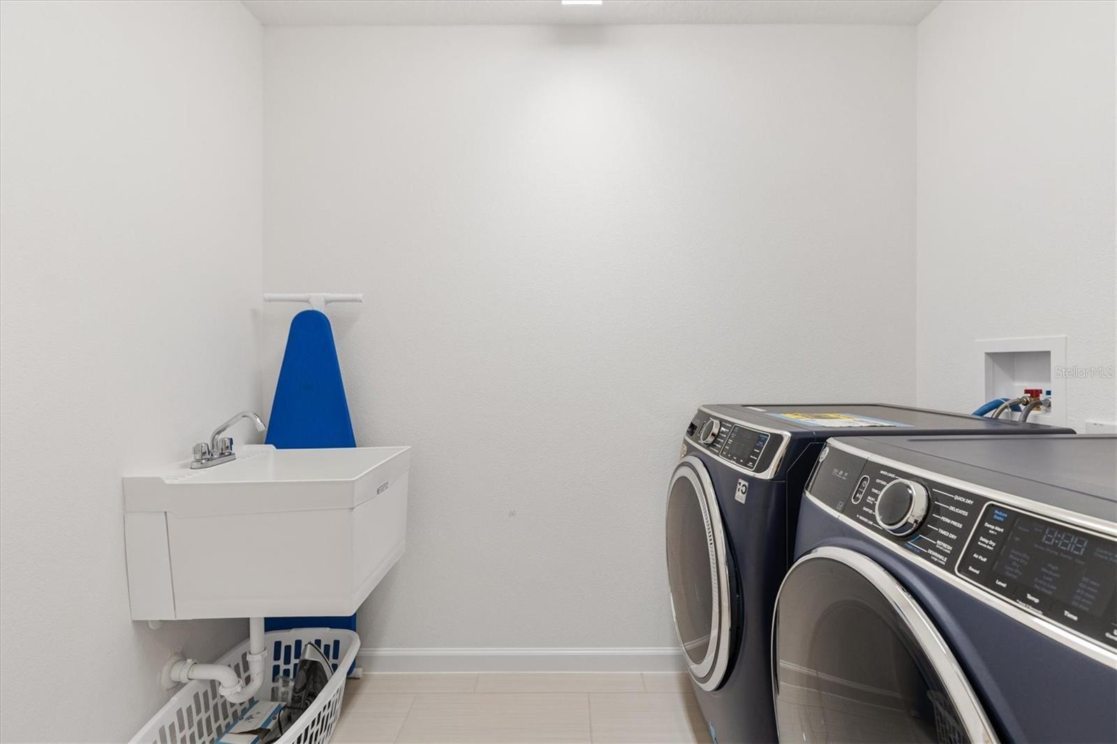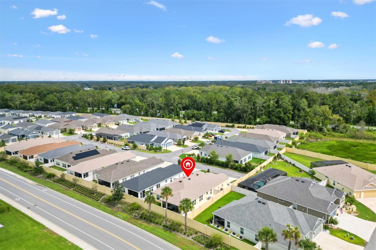 BARELY LIVED IN with a TURNKEY OPTION (BABETTE'S FURNITURE/DECOR/DISHES/FLATWARE/COOKWARE/LINENS/TV'S/LANAI FURNITURE and 2 GOLF CARTS AVAILABLE SEPARATELY! This 3 bedroom 2 bath WINSLOW BUNGALOW COURTYARD VILLA was built in 2023, has 1794 sq ft of living space and an additional 220 sq ft screened lanai. Village of DeLuna, in MILA VILLAS, where walking trails, pools, archery range, golf and a dog park are just a short distance away. Situated on an end of street private homesite, there's no busy traffic here. You are greeted with flowering plants and an inviting front porch + 6 inch guttering adorns the whole house. Enter this lovely Villa, and immediately fall in love with the FOYER CLOSET, large open concept floor plan and kitchen island. Plentiful cabinets with pull-outs, high definition countertops, and WALK-IN PANTRY will make your cooking and entertaining so easy. The laundry room has a set tub and a new WASHER/DRYER with the TAGS STILL ON THEM. Carpet in the 3 bedrooms and TILE flooring can be found throughout the rest of the home. Your primary suite features a TRAY CEILING, walk-in closet, DUAL SINKS, ROMAN SHOWER, private toilet area + BB2000 BIDET. The guest bathroom also has a BB2000 BIDET. All rooms have ceiling fans and blinds. The screened lanai measures 22x10 and opens to the FENCED private courtyard and patio area, perfect for your 4 legged friends. The 2 car garage has a PAINTED FLOOR and measures 24x22 so there is plenty of room for car & golf cart and so much more. Home also features a whole house NOVA WATER filtration system. You are just a golf cart ride away from the BROWNWOOD Paddock Square, the new EASTPORT, Ednas on the Green and the Magnolia Shopping Plaza. Don't forget to watch the video and come see this amazing villa TODAY!