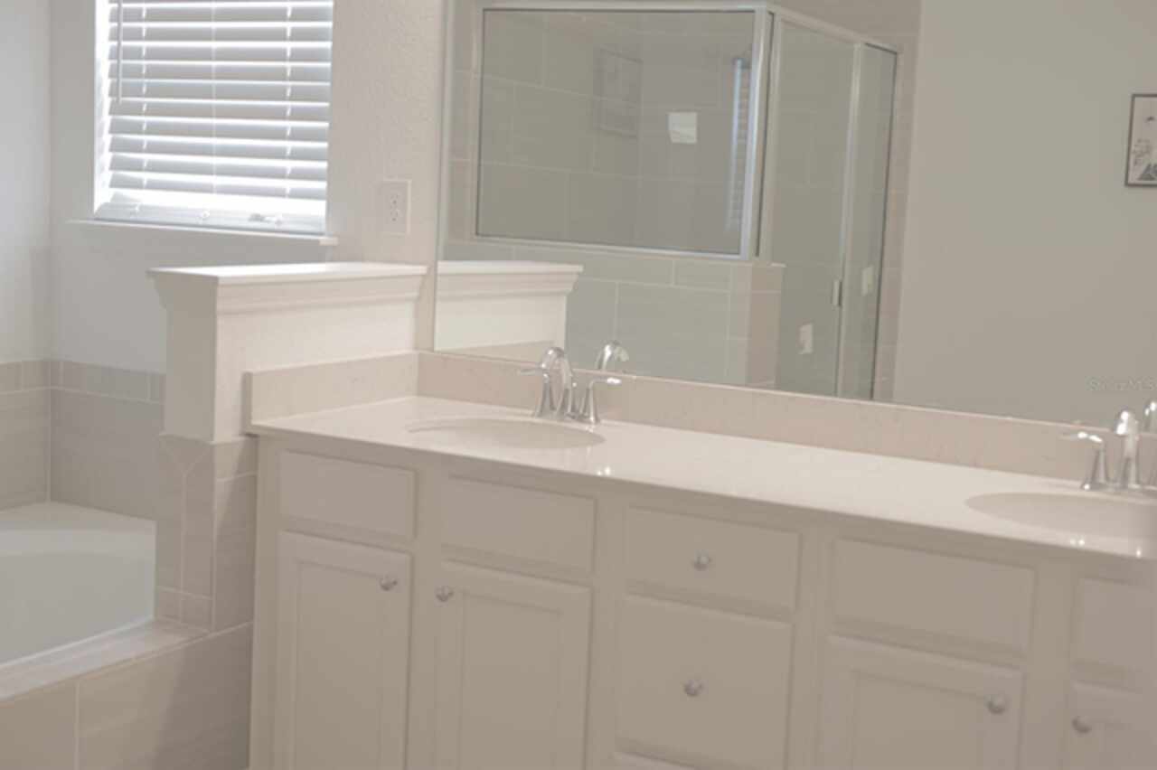 Spacious open concept floor plan with lots of natural light. Wood look flooring throughout all common areas, with carpet in the bedrooms. Quartz countertops throughout the home. Large and open kitchen features white cabinets, large under mount sink, stainless steel appliances, pantry, and breakfast area. Many cabinets with plenty of storage space. This home features two ensuite bedrooms with their own attached full baths in addition to two guest rooms. Primary bedroom has a walk-in closets and a lovely full bathroom with separated tub and walk-in shower. Other features include a laundry room and three car garage. This property includes a sprinkler system. Additionally, a new well was installed in September 2025, which reducing water costs.