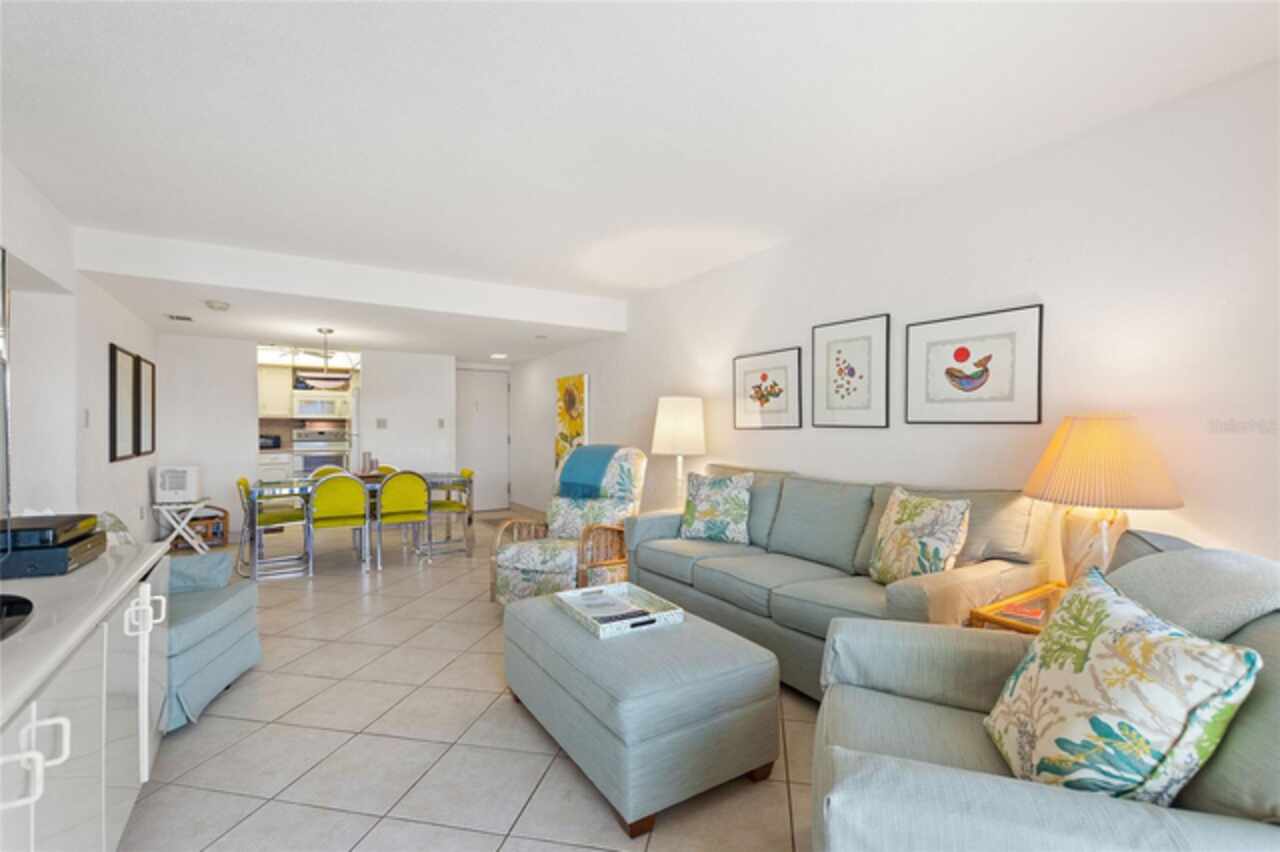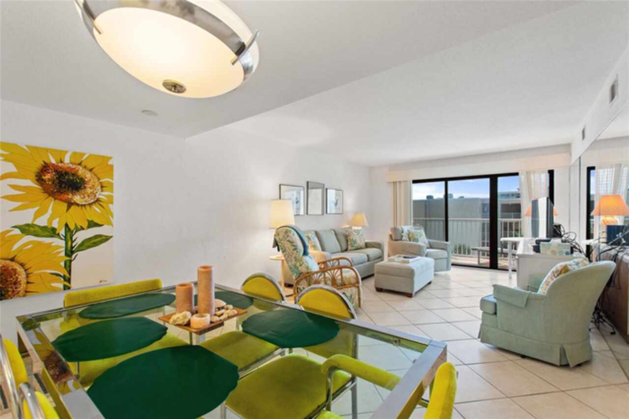 Welcome to this bright and airy 5th-floor condo in the highly sought-after Castle Reef Condominiums. This two-bedroom, two-bathroom unit offers a fantastic southeast exposure, with a private, sunny balcony that provides breathtaking ocean views, as well as a serene outlook over the beautifully maintained community and sparkling pool. Inside, the spacious open-concept layout seamlessly blends the kitchen, living, and dining areas, making it perfect for both relaxing and entertaining. The tile flooring throughout the main living areas is ideal for beachgoers, while the cozy carpeting in the bedrooms adds a homey touch. Fully furnished and move-in ready, this condo is perfect for those looking for a beach getaway or a rental opportunity. Castle Reef is a prime community, offering an array of amenities to enhance your coastal lifestyle. Enjoy direct beach access on the no-drive beach, take a dip in the heated community pool, or let the kids have fun in the kiddie pool. For sports enthusiasts, the complex features tennis and pickleball courts, as well as shuffleboard. There are also gas BBQ grills and a large patio gazebo for outdoor dining and socializing. This condo has been lovingly enjoyed by a wonderful family for many years, and now it’s your turn to make it your own. Don’t miss out on this hidden oasis—schedule your showing today and start living the beach life!