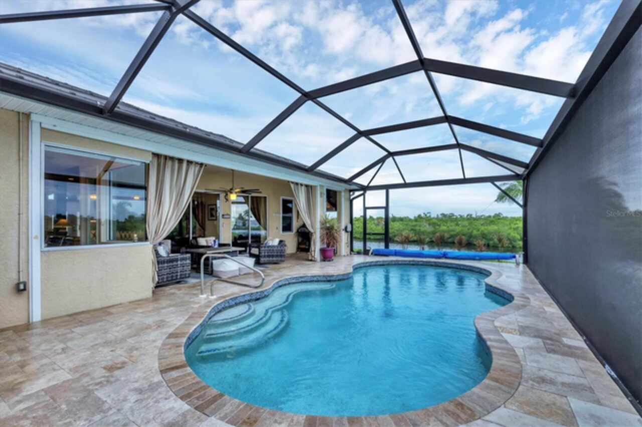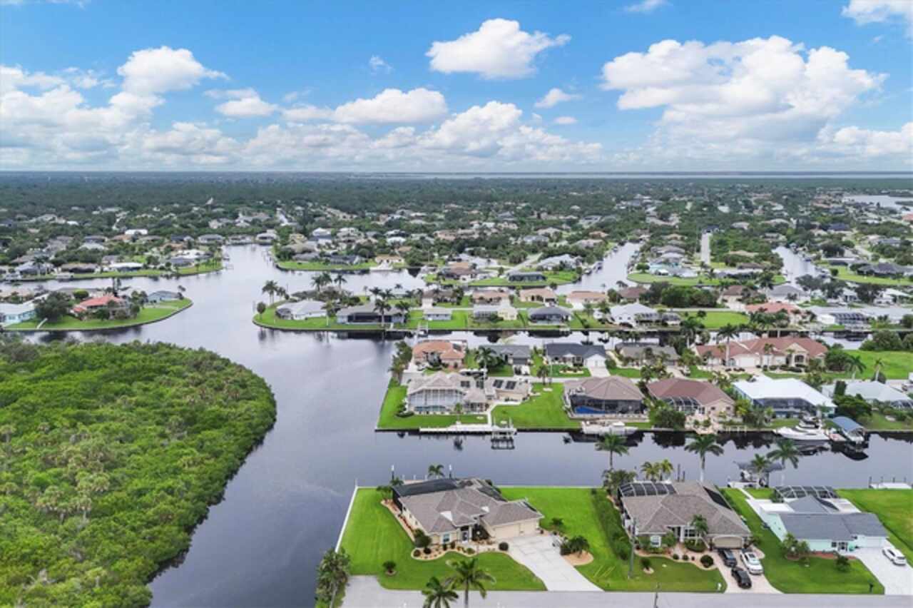 This property is a Stand-Out Head-Turner. Enjoy an Exceptional lifestyle with an exquisite blend of elegant design, high-tech, and Modern Coastal Living. Waterfront Luxury starts and ends here! This stunning Sailboat-Access heated pool home sits on a rare double lot (.46 acres) at the end of a quiet street, offering exceptional privacy and serenity. With 285 feet of concrete Seawall, deep-water dockage with no Bridges to open water, and gorgeous east-facing canal views bordering a Protected Bird Sanctuary, this is truly a Private Waterfront Sanctuary. Being a Solar Certified Home, your energy costs are extremely low. BEAUTIFULLY Updated & METICULOUSLY Maintained, this home offers an open floor plan with luxury finishes, including stacked stone accents, granite counters, and a Chef-Inspired Kitchen featuring a Viking dual-fuel range and premium stainless appliances, RO system. The spacious owner’s suite Boasts direct pool access, dual walk-in closets and a Spa-like bath with dual vanities, Roman Shower with rainfall and multi-jet panel plus a jetted soaking tub. The outdoor area is exceptionally designed for entertaining, featuring a heated pool, an outdoor pizza-oven with grilling station. For Boating Enthusiasts, the 24x10 Dock has new decking and dolphin pilings providing everything you need to launch your next adventure. Additional highlights include a 660 sq ft 3-Car Garage complete with Solar Power System, Storm Smart hurricane Screens, 250-Gallon buried Propane tank, Back-up Generator, Well irrigation, Upgraded plumbing, new 2023 roof, lighting rod protection system, Hurricane automatic roll down shutters, Accordion Shutter on front door, new windows, security cameras, freshly painted. This is a rare opportunity to own a private secure waterfront estate that combines elegance, efficiency, and the ultimate boating Florida lifestyle. A Stand-out Dream Home awaits you. Call Today…