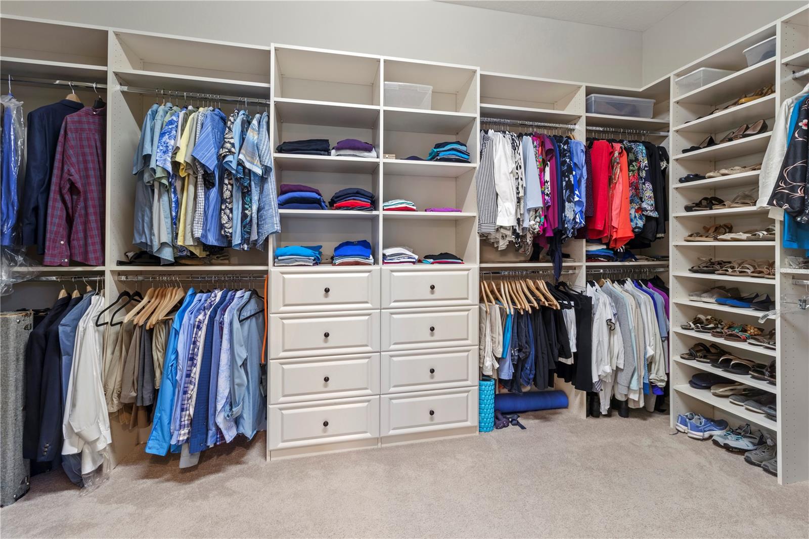 Ceiling Fans(s), Crown Molding, High Ceilings, Kitchen/Family Room Combo, Living Room/Dining Room Combo, Open Floorplan, Solid Surface Counters, Stone Counters, Thermostat, Tray Ceiling(s), Walk-In Closet(s), Window Treatments