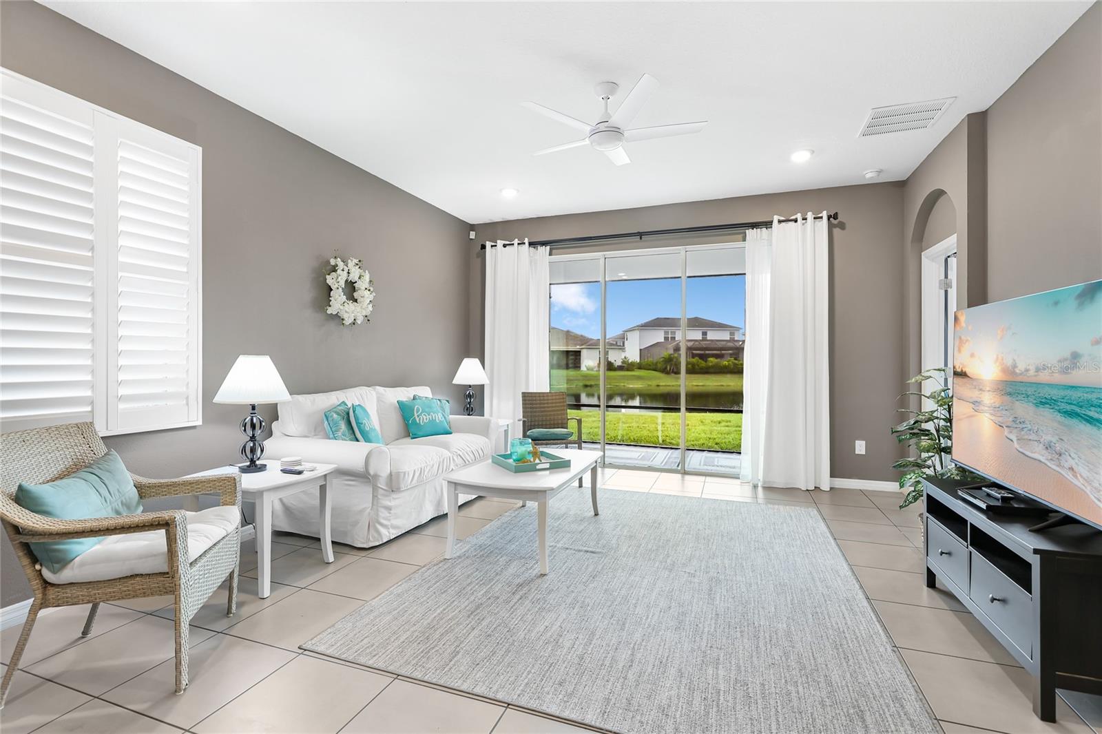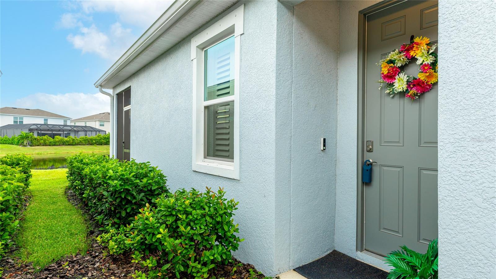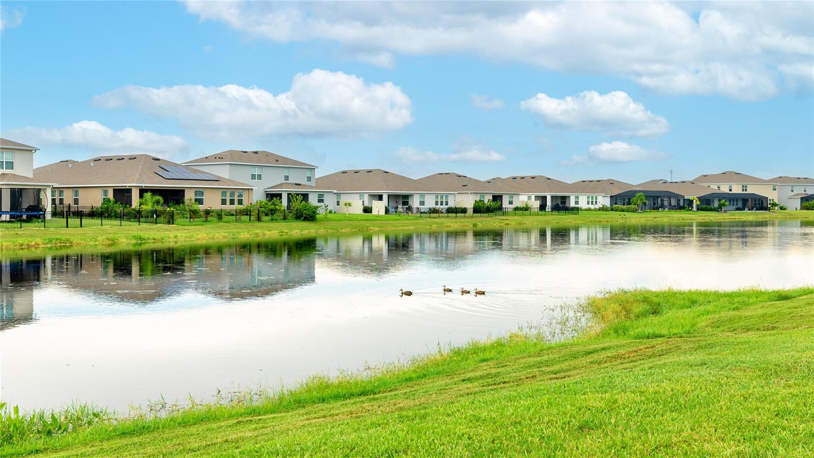 Under contract-accepting backup offers. Reduced! Better than new! Everything is ready for you. Serene waterfront view to relax with. Impresses like a model home. Window treatments, blinds, a mirrored dining room, detailed woodwork in the primary bedroom, upgraded closets and laundry room, a screened lanai, and a polyaspartic sealed garage floor—features you won't find in new homes. Huge granite island with sink and tall kitchen cabinets with tons of room for all your kitchen stuff. Lighted food pantry closet. And don't forget the large sliding doors to the lanai and the beautiful birds visiting the pond. Partially furnished, so you can move in and start enjoying your new home right away. Double-paned storm windows, shutters, a Deako lighting system, a smart home system, and a doorbell camera are all available. Plus, the HOA takes care of lawn maintenance, so no yard work for you. Two gated entrances, one on Rye Rd and one on Waterline Rd. The community also features a pool with a covered lounge area and bathrooms. What are you waiting for? Come and see it for yourself!