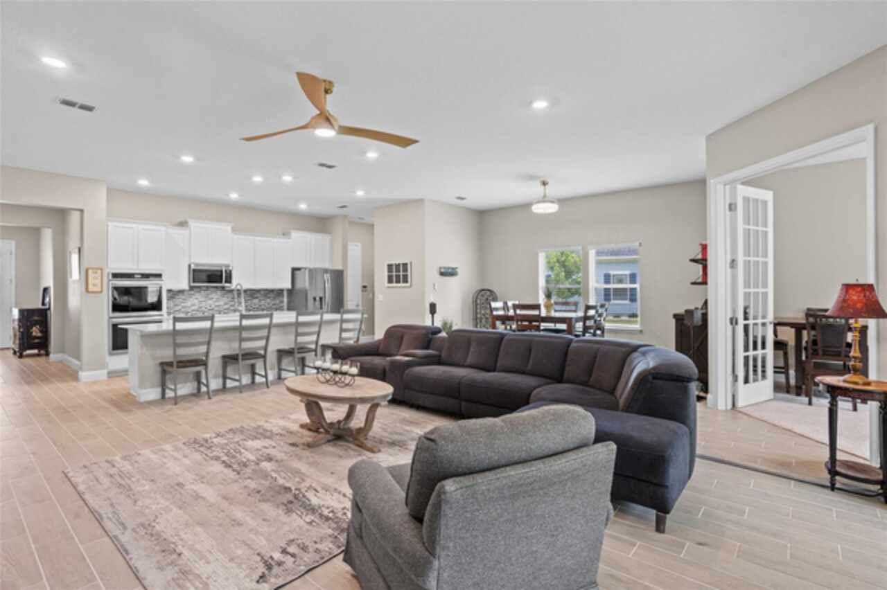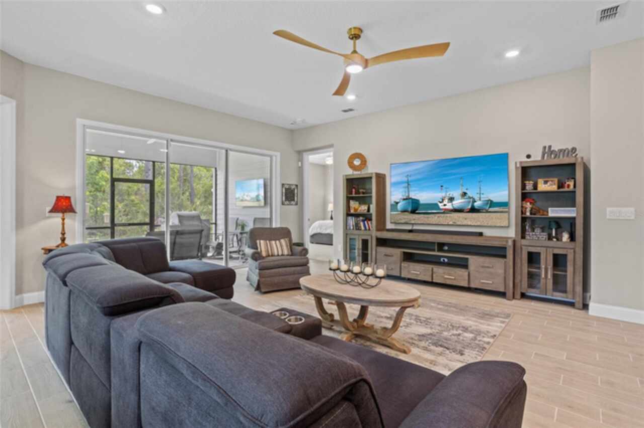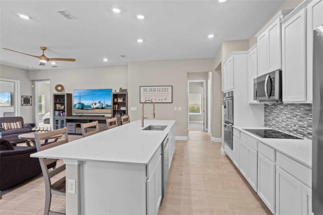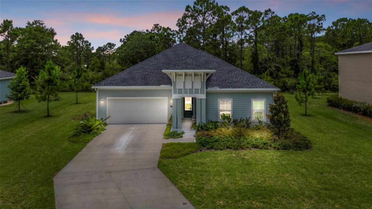 Welcome to this beautifully maintained, nearly new ranch-style home nestled in a peaceful Florida setting. Built just three years ago, this spacious 4-bedroom, 3-bath home combines modern design with timeless comfort and functionality. Step inside to discover an open-concept layout filled with natural light, high ceilings, and stylish finishes throughout. The gourmet kitchen boasts sleek cabinetry, stainless steel appliances, a large island, and quartz countertops—perfect for entertaining and everyday living. The split-bedroom floor plan offers privacy and flexibility, with a luxurious primary suite featuring a walk-in closet and spa-like en-suite bath. Three additional bedrooms and two full baths provide ample space for family or guests. The added flex space can be a hobby room, play room, or home office. Enjoy seamless indoor-outdoor living with sliding glass doors that lead to a covered lanai—ideal for relaxing or dining alfresco. The property includes a generous yard, ready for your personal touch. Located in a convenient neighborhood with access to shopping, schools, and Florida’s beautiful beaches, this home is move-in ready and built to impress. Don’t miss your chance to own a modern ranch home in paradise—schedule your showing today!