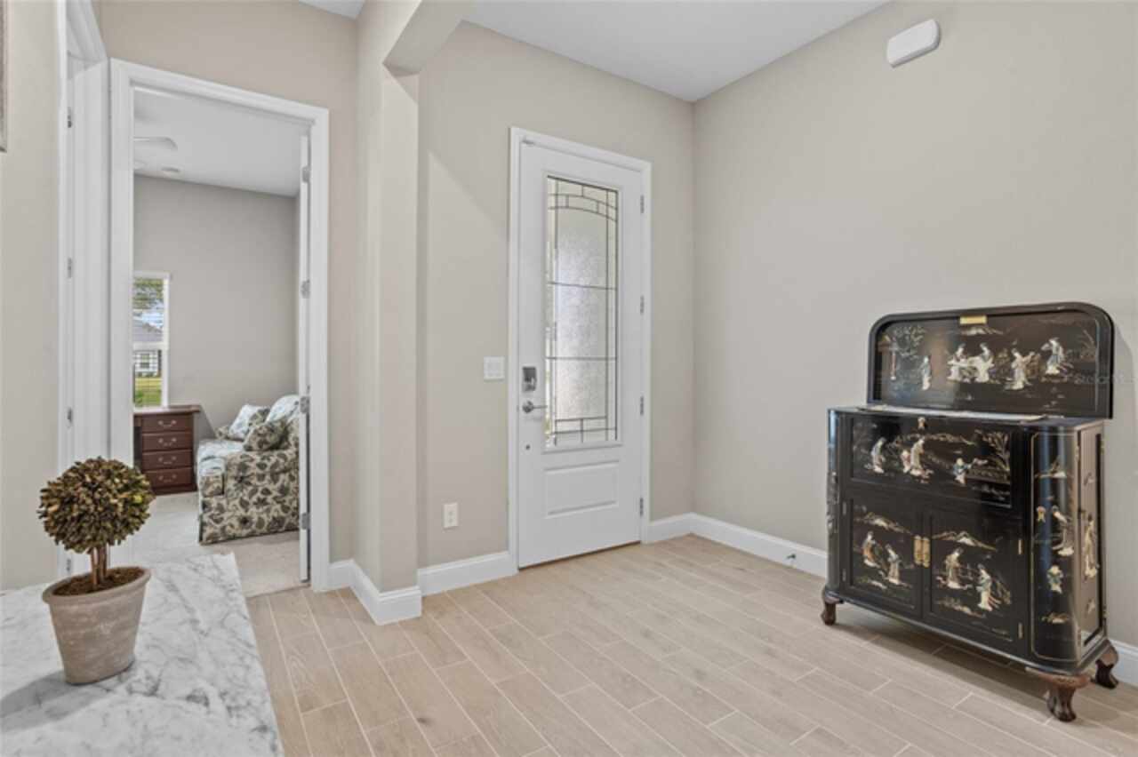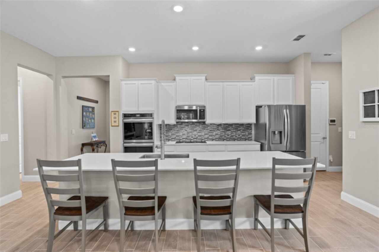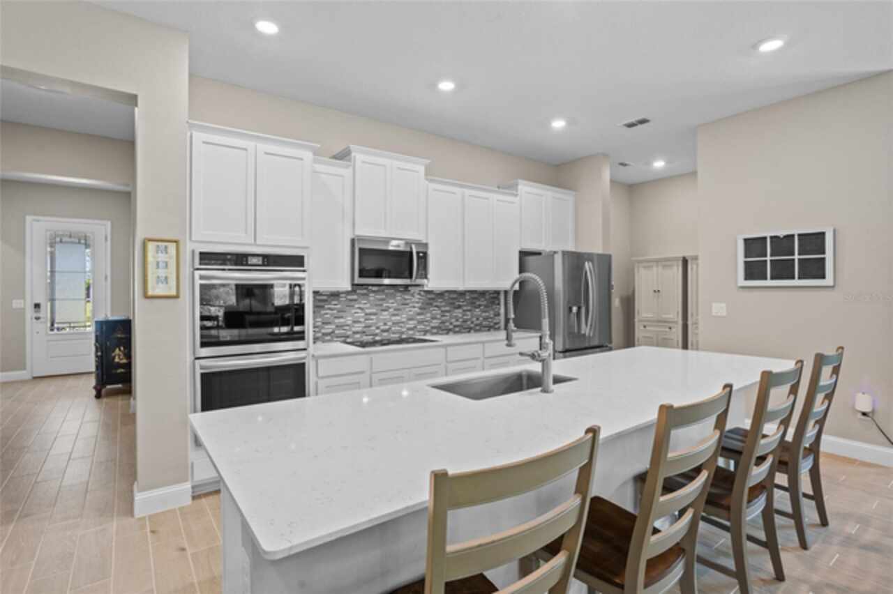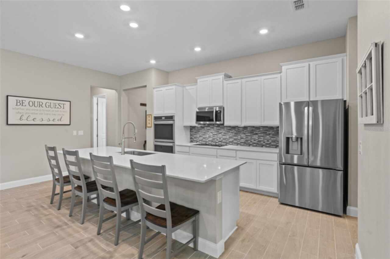 Welcome to this beautifully maintained, nearly new ranch-style home nestled in a peaceful Florida setting. Built just three years ago, this spacious 4-bedroom, 3-bath home combines modern design with timeless comfort and functionality. Step inside to discover an open-concept layout filled with natural light, high ceilings, and stylish finishes throughout. The gourmet kitchen boasts sleek cabinetry, stainless steel appliances, a large island, and quartz countertops—perfect for entertaining and everyday living. The split-bedroom floor plan offers privacy and flexibility, with a luxurious primary suite featuring a walk-in closet and spa-like en-suite bath. Three additional bedrooms and two full baths provide ample space for family or guests. The added flex space can be a hobby room, play room, or home office. Enjoy seamless indoor-outdoor living with sliding glass doors that lead to a covered lanai—ideal for relaxing or dining alfresco. The property includes a generous yard, ready for your personal touch. Located in a convenient neighborhood with access to shopping, schools, and Florida’s beautiful beaches, this home is move-in ready and built to impress. Don’t miss your chance to own a modern ranch home in paradise—schedule your showing today!