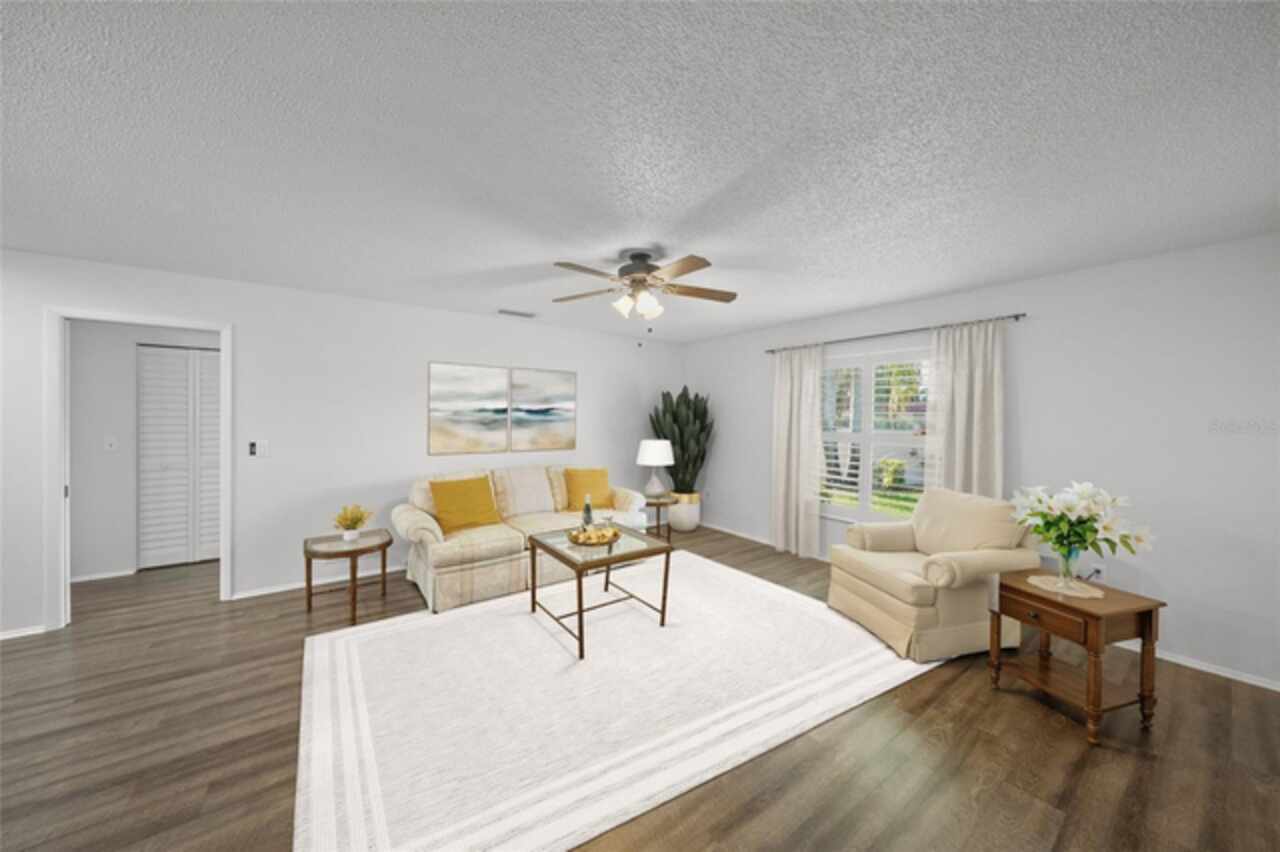 Under contract-accepting backup offers. One or more photo(s) has been virtually staged. Stylish Corner Retreat in the Heart of Oakhurst. Step into comfort and convenience with this beautifully updated, move-in-ready corner villa in the sought-after Oakhurst community. Boasting 2 spacious bedrooms, 2 full baths, and a flexible bonus room ideal for a sunroom, office space, or creative studio, this residence offers both charm and versatility. The kitchen shines with rich wood cabinetry, sleek quartz countertops, and a brand-new range (2024), while freshly painted interiors create a bright, welcoming atmosphere throughout. Enjoy peace of mind with recent upgrades including a 2020 AC system, new garage flooring, energy-efficient windows, and a reverse osmosis drinking water system. Thoughtful touches like poly-vinyl shutters in the living room and primary bedroom, plus updated blinds in the bonus room and garage, add style and privacy. Step outside to your own tranquil oasis—perfect for gardening, morning coffee, evening wine, or simply soaking in the Florida sunshine.