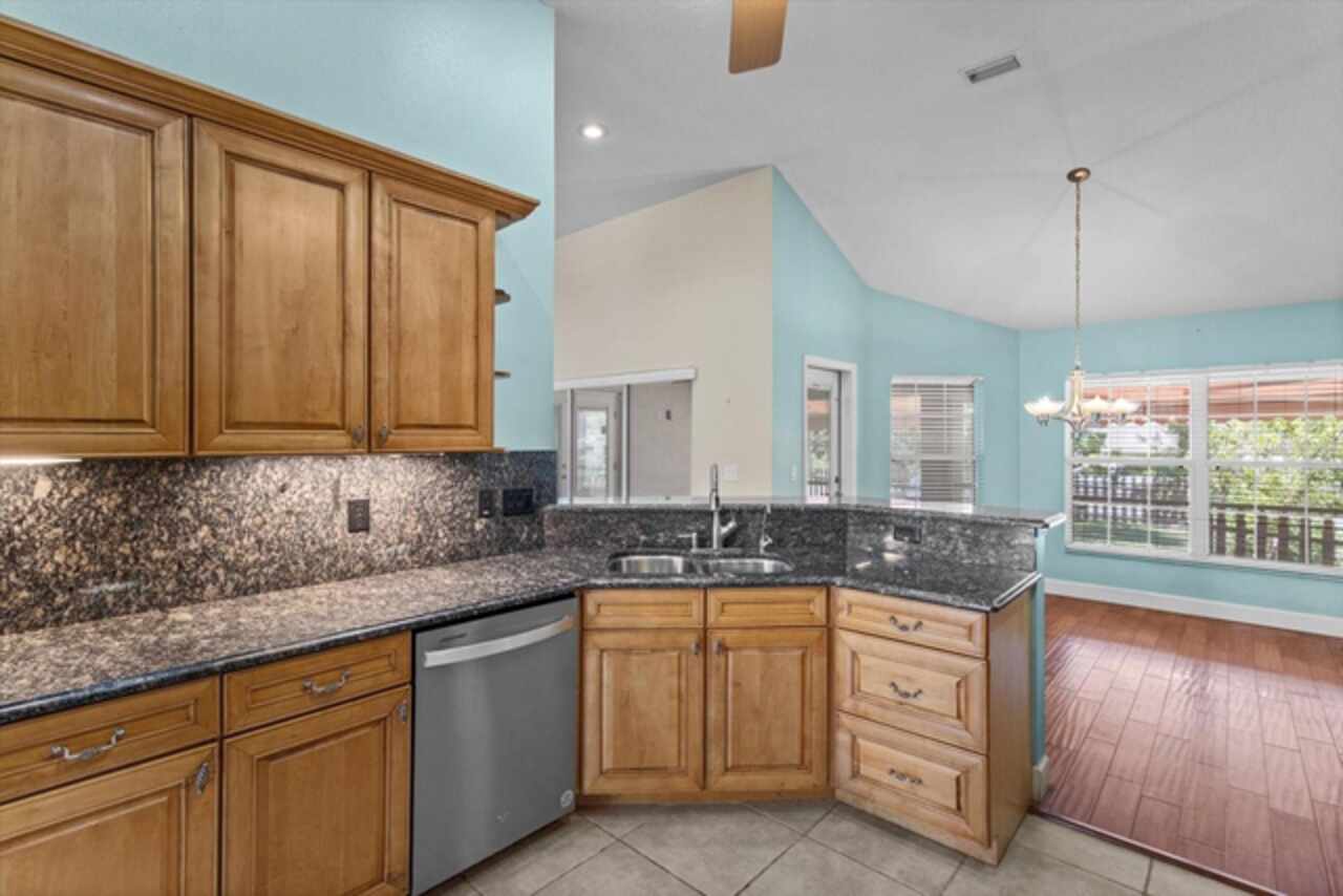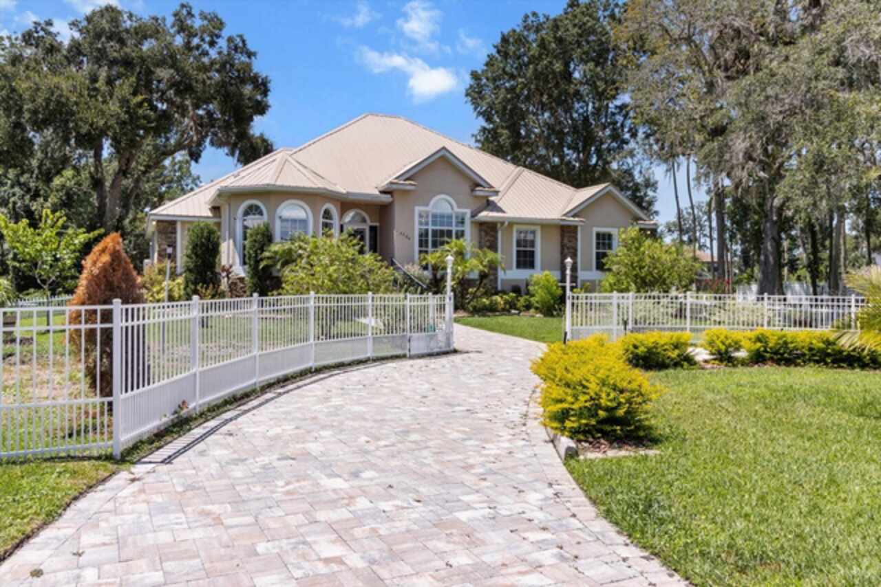 NEVER FLOODED! Custom-built in 2006, this beautiful residence is located in Bluewater Estates, just minutes from Homosassa’s National Wildlife Park and the main springs of the Homosassa River. This 3 bedroom, 3 bath home with den offers over 2, 100 square feet of living space and more than 2, 900 square feet under roof. The open floor plan features cathedral ceilings, Shaw hardwood floors, and ceramic tile throughout with lush carpeting in the bedrooms. The spacious kitchen is designed for both cooking and entertaining with granite countertops, stainless steel appliances, and custom wood cabinetry. The owner’s suite includes dual walk-in closets, dual sinks, a jetted garden tub, separate shower, and a mini-split A/C for added comfort. A whole-house generator powered by an owned propane tank provides peace of mind, while the newer metal roof ( 2022) adds lasting value. Additional highlights include a circular brick paver driveway, rear-entry garage, sprinkler system, alarm system, in-wall pest control, and decorative fenced dog runs both front and rear. With its prime location, thoughtful upgrades, and quality finishes, this home is a pleasure to show