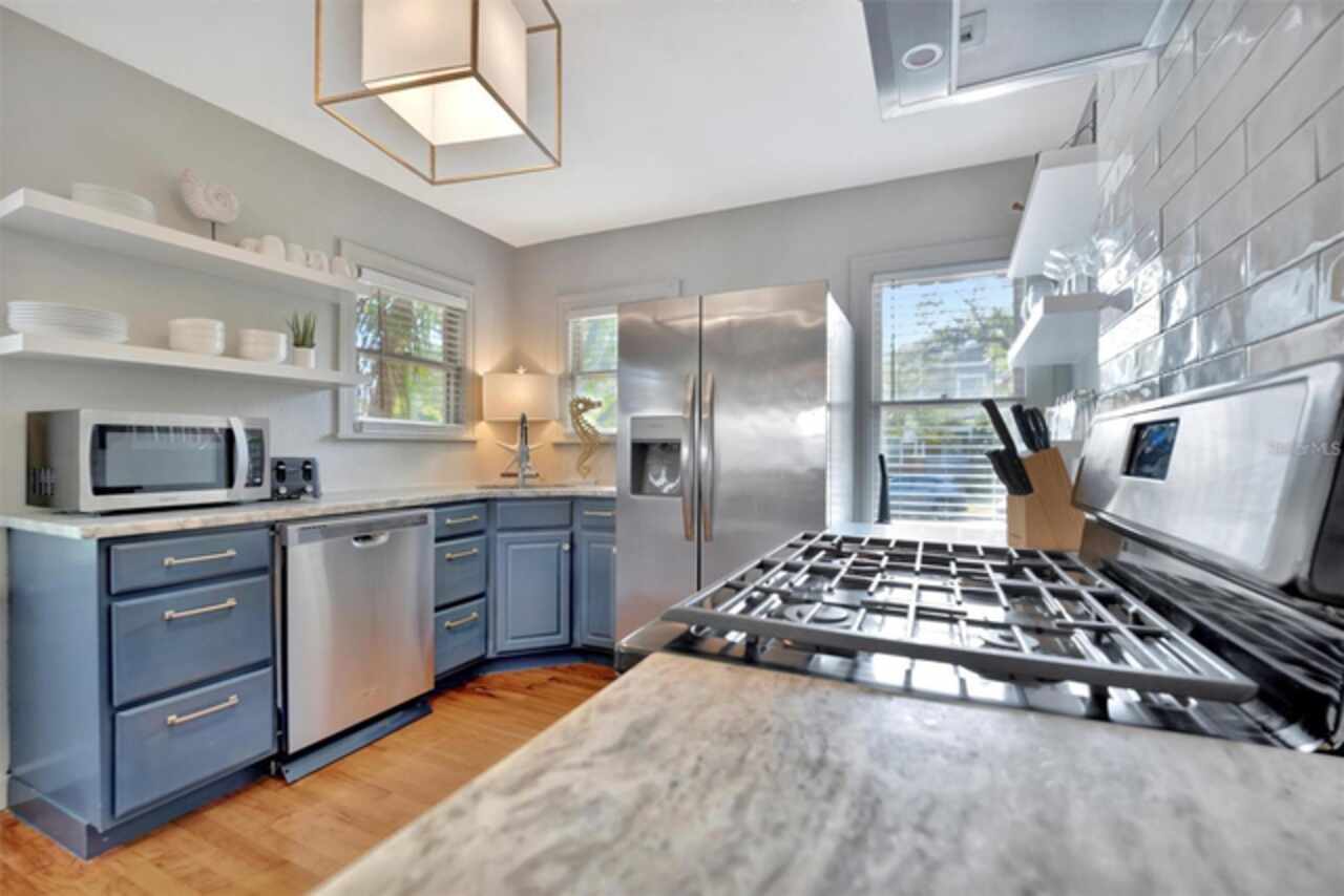 Prime Location - Old Northeast in St Petersburg, walking distance to downtown! Rare Opportunity to own Completely Renovated Single Family House with a Separate INCOME Producing Property in the Backyard. Each unit was thoughtfully designed to maximize comfort, style and efficiency. Plenty of natural light, creating a bright and airy atmosphere. Sold FULLY FURNISHED and upgraded to modern living lifestyles. Non-Flood Zone. Non-Evacuation Zone. Safe and Dry after the hurricanes. High end finishes have been used throughout the entire property. Additionally, each unit features its own off-street parking place and a shared laundry. Both buildings are also sharing the serene, fully fenced yard, perfect for entertaining or for a POOL. NEW FLAT ROOF over the lower unit was just installed. The Main Residence, an updated single-family home, features two spacious bedrooms and two baths. The two-story building is located at the back of the property yard and consists of three additional apartments: two are located on the first floor and one is upstairs with its own outside staircase and separate entrance for privacy. This unit boast a spacious enclosed balcony. Entirely surrounded by windows, this space features plenty of natural light which creates a cozy and welcoming atmosphere. This unique property is nestled in one of most sought-after neighborhoods in St. Petersburg with brick streets, towering oak trees and it is just 3 blocks off the North Shore waterfront and parks. It is easily walkable to downtown St. Pete restaurants, marinas, world class museums, markets, shopping, the Pier and weekend festivals. Experience the perfect blend of urban convenience and Old Florida charm in St. Petersburg's Most Desired Neighborhood, Old Northeast. The main house and apartments operate at virtually 100% occupancy as a lucrative and efficient investment property. Tenants typically remain for multiple years due to the great location and quality of life here. The entire property can be rented or the owner could live in the front single family home and rent the remaining units. The Quadplex consists of a Single family home - 2 bedrooms, 2 full baths (788 sf); Downstairs apartment - 1 bedroom, 1.5 baths (763 sf); Downstairs studio (283 sf); Upstairs apartment - 1 bedroom, 1 bath (839sf);