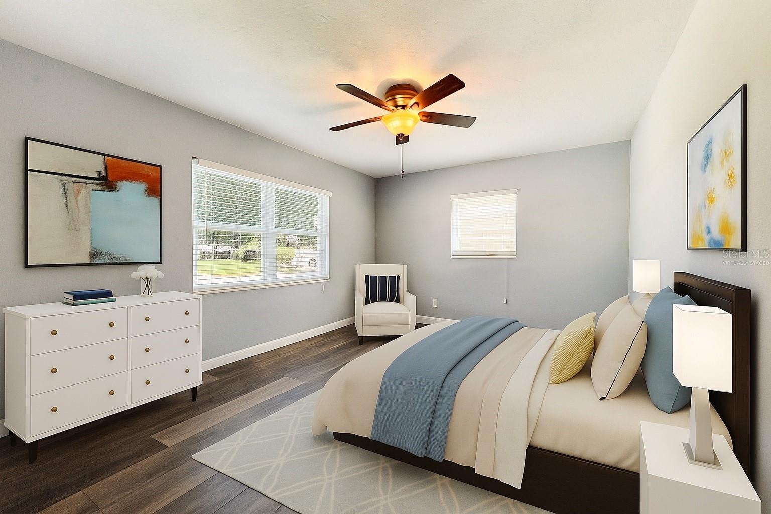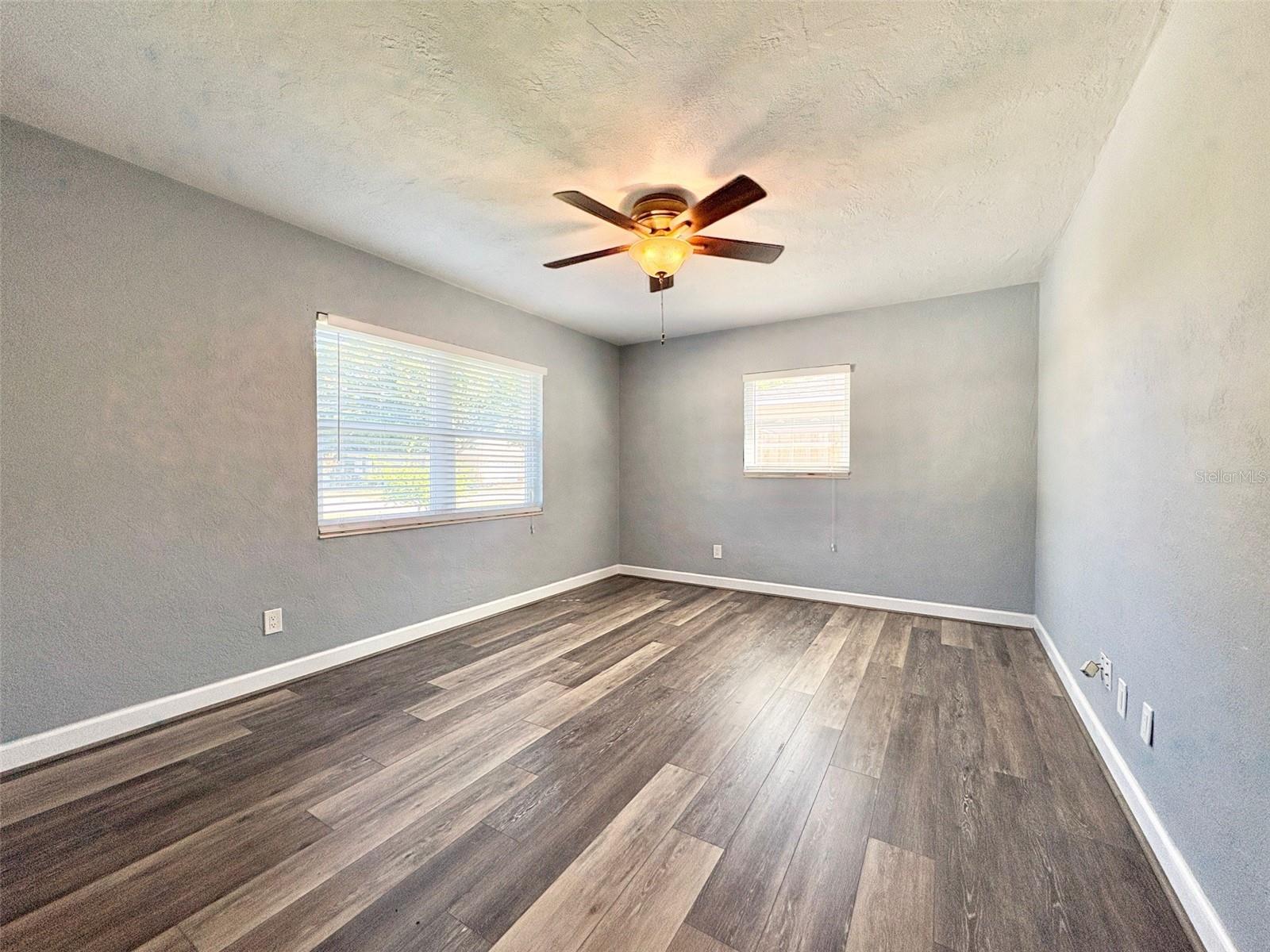 Ceiling Fans(s), Primary Bedroom Main Floor, Solid Surface Counters, Thermostat, Window Treatments