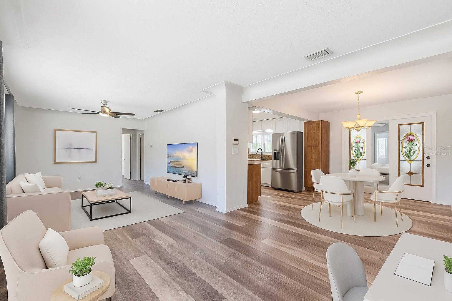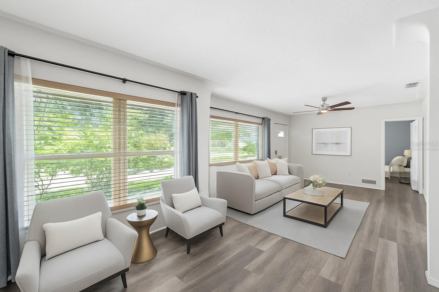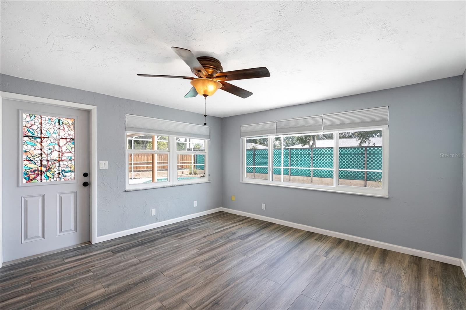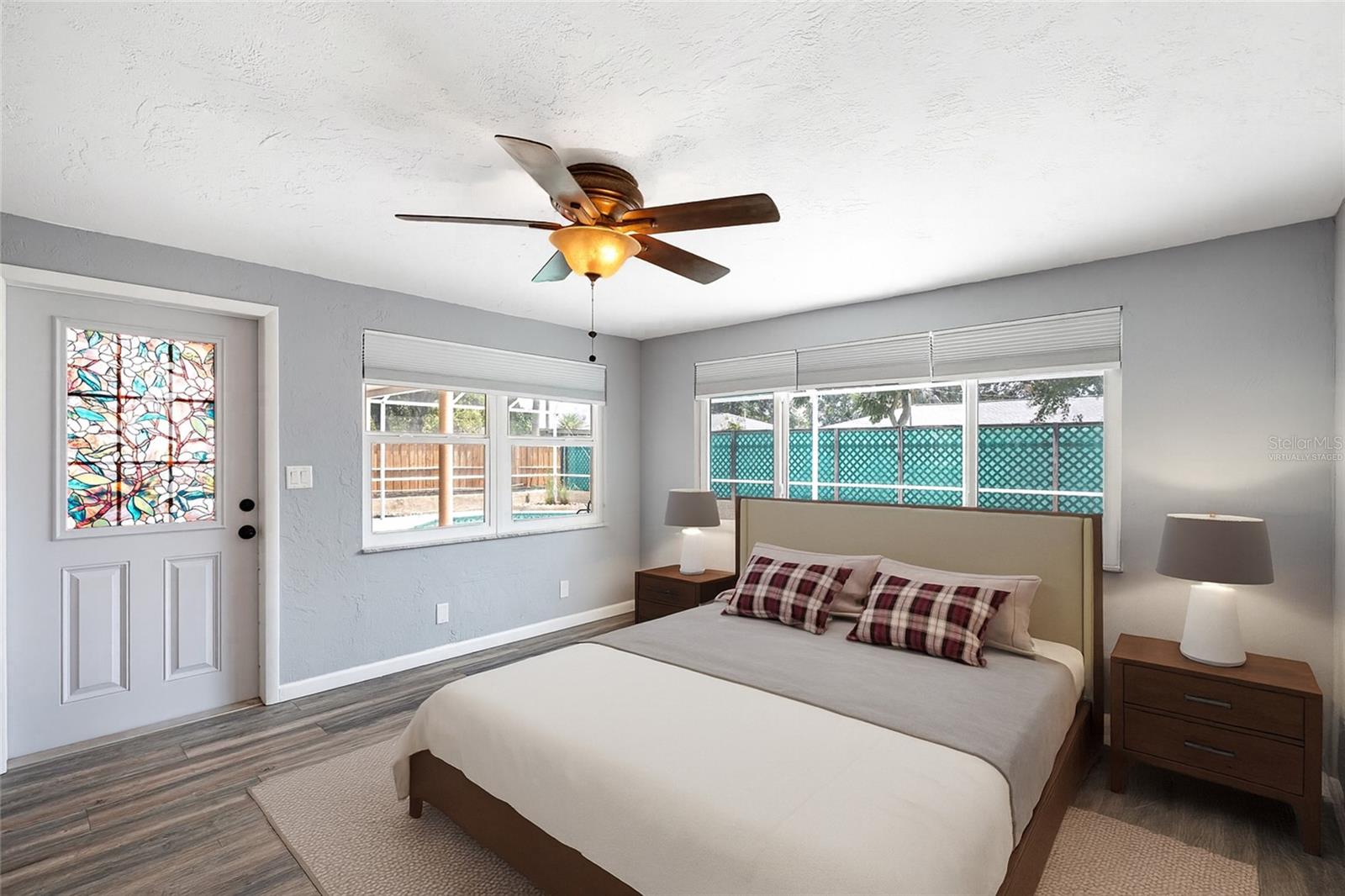Updated Harshaw block pool home with character—not another cookie-cutter flip. If you value an easy indoor-outdoor flexible lifestyle, this 3BR/2BA homeis for you. The home sits high and dry in a non-evacuation zone with no current lender-required flood insurance (Zone X). The surrounding streets are lined with established block homes, and the area has been seeing strong interest from buyers who want a solid neighborhood feel and central St. Pete convenience. Big-ticket items are already done: new roof (2025), hurricane-impact windows and doors, remodeled kitchen (2023), updated bath (2024), and new water heater (2025). The original 2/1 was expanded to create a true poolside flex suite with ensuite bath and direct access to the saltwater pool with screen enclosure. Use it as a private bedroom that opens to the patio, a guest suite, second living room, game room or home office—there are multiple ways to live in the space. Two original bedrooms share a hall bath with classic tile and charm. Inside you’ll find coved ceilings, stained glass accents and cohesive flooring that ties the main living areas together. The footprint is comfortable and easy to maintain—enough room to live and entertain without feeling like you’re cleaning rooms you never use. Outside, enjoy the screened saltwater pool and an easy-care yard with mature landscaping and space for gardening, pots, or additional plantings. The block construction and curb appeal give the home a solid, established feel. The garage offers excellent storage now and appealing future potential for a 4th bedroom with ensuite bath, artist studio or workshop (buyer to verify). Seller is offering a $5, 000 flexible credit toward closing costs, prepaids or an interest-rate buydown with an acceptable contract.