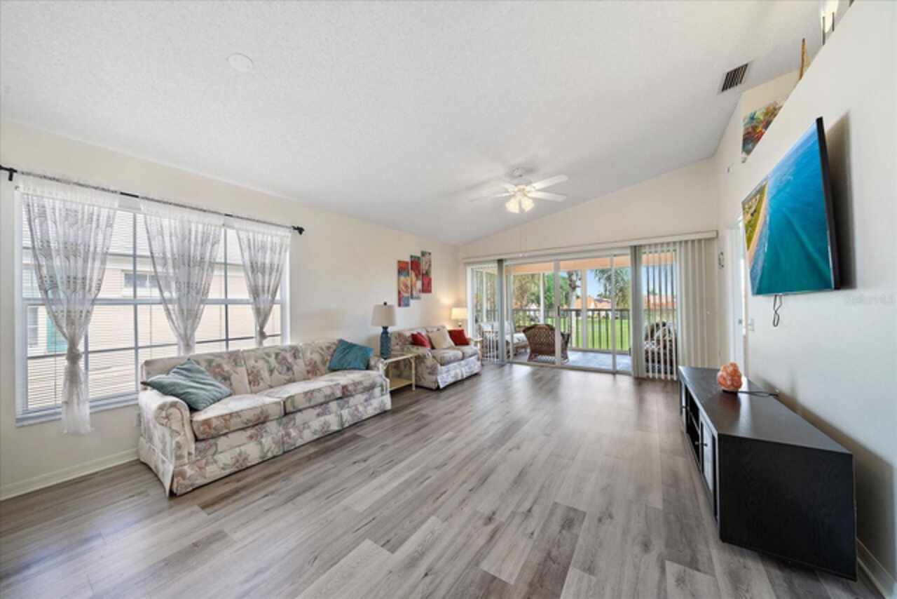 *Optionally Turnkey Furnished* Come see this rarely available 2nd floor unit located in Fairway Trace! This 2BR/2BA + Den condominium is spacious and well maintained. The Den is currently being used as a 3rd bedroom, but could be perfect for a home office if needed. It is light, bright and move-in ready. The kitchen has been well maintained and features lots of storage with a convenient eat-in area. The large master bedroom has two closets, one which is a walk-in. The covered lanai is a perfect place to relax and enjoy your morning coffee or afternoon drinks. The unit even comes with one detached garage, a rare amenity for sure ! Your equity membership in Peridia Golf and CC provides you with amenities galore!! Golf, A ProShop, Tennis Courts, Pickleball, A Heated pool with Tiki bar and member rooms. Activities include dining (both lunch and dinner), dancing on Friday nights, cards, mahjong, book clubs, special member events and much more. Fairway Trace even has a separate pool & hot tub for condo residents only. Schedule your private showing today to see for yourself everything this amazing community has to offer !