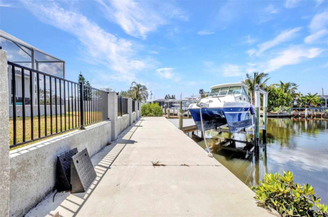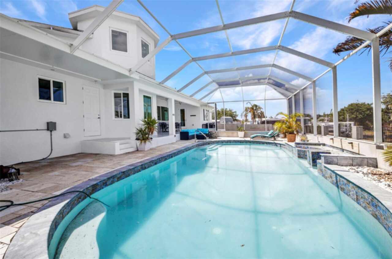OVERSIZED LOT **Waterfront Paradise – Turn-Key & Furnished!**Located in the heart of Port Charlotte. This *almost brand-new* 3-bedroom + flex room, 3 bathroom, POOL home, sits at the end of a quiet canal, offering stunning water views and direct access to the open water. Plenty of entertaining space and a hot tub to unwind. Enjoy your private dock and boat lift—perfect for boaters and sunset lovers alike! Have piece of mind under your solid new roof, 2023 Air Conditioner, and a home that sits high & dry :) Step inside to a bright, open floor plan with stylish finishes throughout. The flex room offers the perfect space for a home office, guest room, or hobby area. Includes a large laundry and pantry. Fully furnished and truly *turn-key*—just bring your toothbrush and start living the dream!