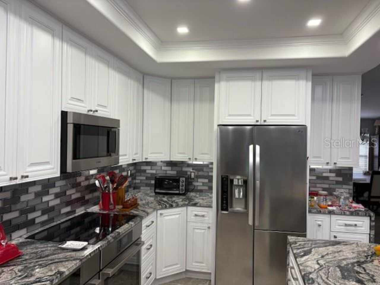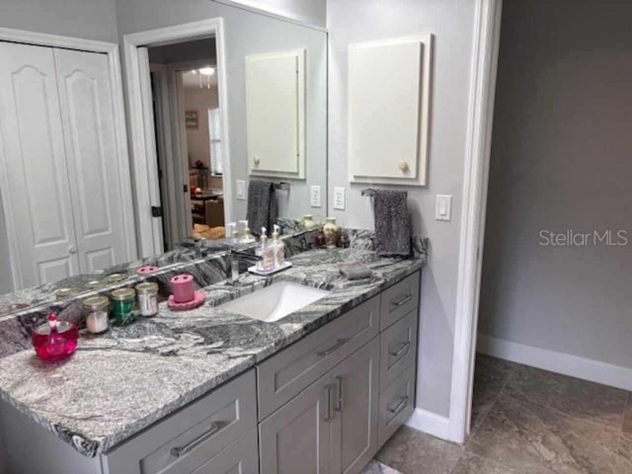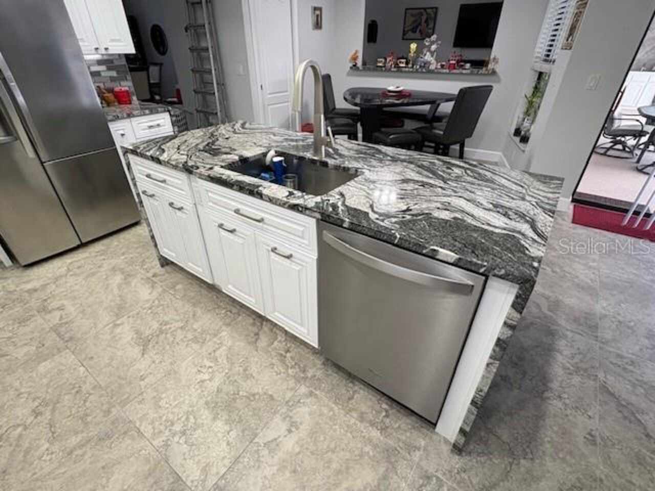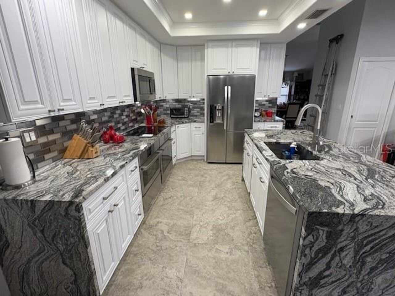 This 4 BR/3BA home has been totally remodeled with 20" floor tiles throughout. A TRUE Gourmet kitchen with 42" cabinets with easy glide drawers, beautiful level 4 granite with waterfall sides, high end Bosch appliances including induction touch (no knobs) stove top, touch convection oven, touch steamer oven and warmer drawer. Recessed and counter lighting. Walk in pantry with cabinets and shelves. You can eat at the huge island, the dining area or formal dining room. The fourth bedroom is located at the rear of the home and has its own entrance and bathroom, perfect for an in-law suite. Beautiful stone, wood burning fireplace(never used), The master bathroom has dual sinks, walk in shower, 2 walk in closets, an additional built in closet, and a jacuzzi tub with separate water heater. The home’s ideal layout is spacious with lots of privacy for everyone and the privacy of NOT living on the golf course. Inside laundry equipped with new extra deep sink and granite top. Included newer LG washer and dryer. The pool and hot tub have been resurfaced about 5 years ago. NEW AC! Beautifully renovated outdoor lanai kitchen. Living in resort style Peridia Golf & Country Club features an 18-hole executive golf course, tennis courts, pickleball courts, a Pro Shop, clubhouse, restaurant, pool with a Tiki bar. Also includes exclusive access to members-only activities, mah-jongg, card games, book clubs, water aerobics, holiday parties, and more. Conveniently located near UTC Mall, dining, SRQ airport, hospitals, and world renown Siesta Key beach. Call for a private showing!
