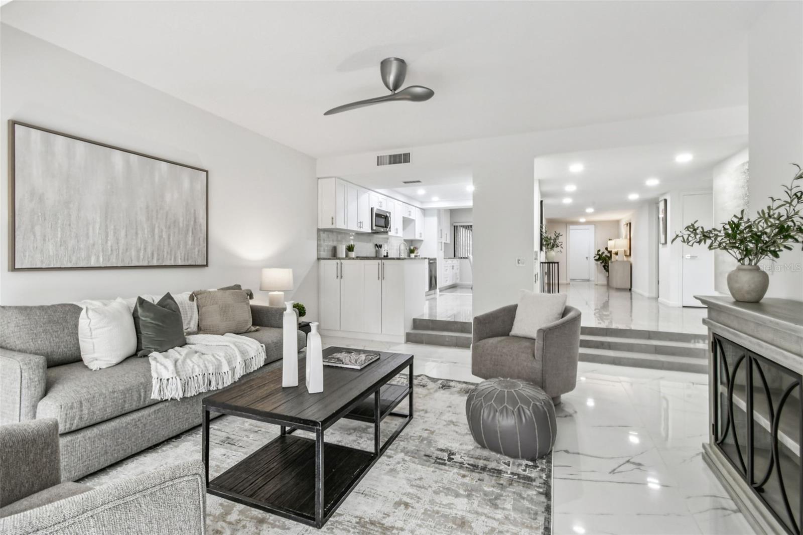 Under contract-accepting backup offers. Welcome to this TURN KEY beautifully updated 4-bedroom, 3-bathroom home in the highly sought-after Carrollwood Village! Perfectly positioned on a quiet street with breathtaking views of the golf course, this home seamlessly blends modern upgrades with timeless charm. HOA has recently installed a 30+ year NEW ROOF, and the seller has paid assessment in full. The spacious floorplan offers a FIRST FLOOR BEDROOM at 21 x 11.5 and full bath, ideal for guests or multi-generational living. The brand-new chef’s kitchen features new cabinetry, sleek countertops, and a dining nook, flowing seamlessly into the open dining and living areas—perfect for gatherings around the fireplace. Entire interior FRESHLY PAINTED and NEW LVP installed in bedrooms. NO CARPET. Upstairs, you’ll find three generously sized bedrooms, including a luxurious primary suite with scenic views and a fully renovated en-suite bath. Additional updates include stylish new flooring and fully remodeled bathrooms throughout. Step outside to the oversized screened-in patio, where you can host a summer BBQ, savor morning coffee, or simply relax and enjoy the panoramic golf course backdrop. A OVERSIZED two-car garage provides convenience and storage, while the home’s prime location offers easy access to top-rated golf, dining, shopping, and local amenities. 2020 HVAC, 2023 Hot Water Heater Schedule your private showing today and experience the perfect combination of luxury, tranquility, and location.