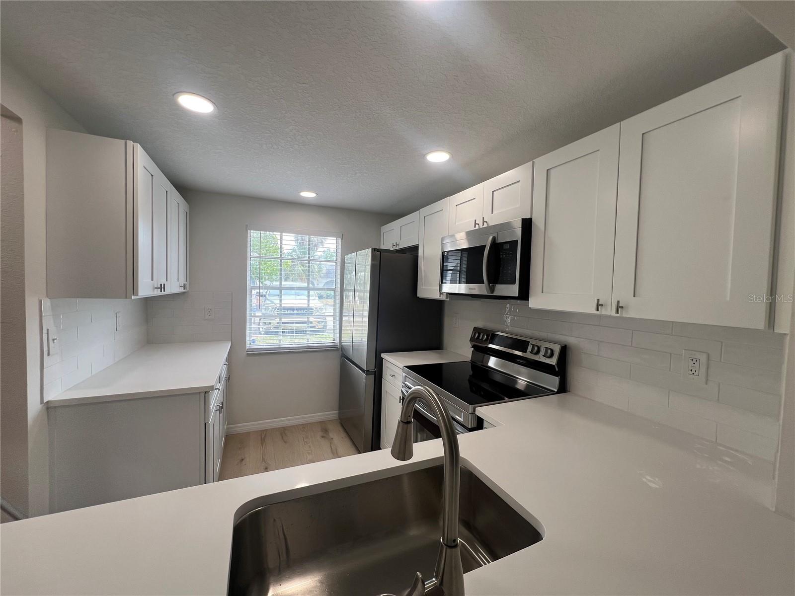 Fully Remodeled 2-Bed, 2-Bath End Unit — Modern Living Without Limits Step into a home that feels brand new. This end-unit has been completely rehabbed—with no flood history—offering peace of mind and fresh possibilities for every stage of life. Highlights • Two spacious bedrooms & two sleek bathrooms: All-new doors, fixtures, and finishes create a clean, contemporary vibe. • Designer quartz kitchen: Soft-close cabinetry, solid-surface counters, brand-new appliances, and energy-efficient LED lighting. • Private screened porch: Your personal retreat for morning coffee or evening relaxation. • New hot water heater: Conveniently tucked away in the utility closet for easy access. • HOA perks included: Water, sewer, trash, cable, basic internet, sparkling community pools, and on-site laundry. • Fresh exterior updates: Recently cleaned and refreshed for effortless curb appeal. • Welcoming neighborhood: Quiet, friendly, and open to all—no age restrictions. This home blends modern comfort with worry-free ownership, making it perfect for first-time buyers, downsizers, or anyone seeking a stylish, low-maintenance lifestyle.