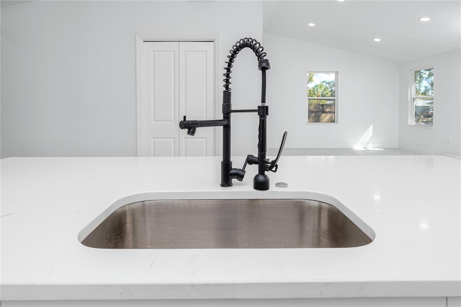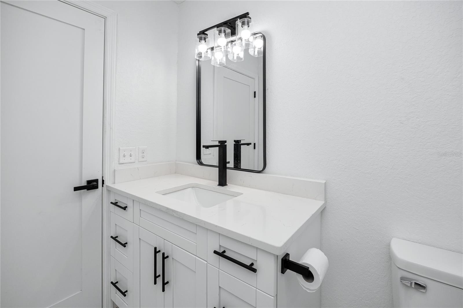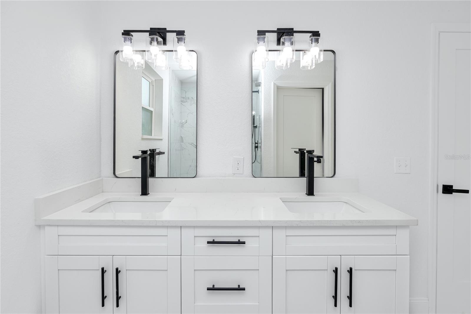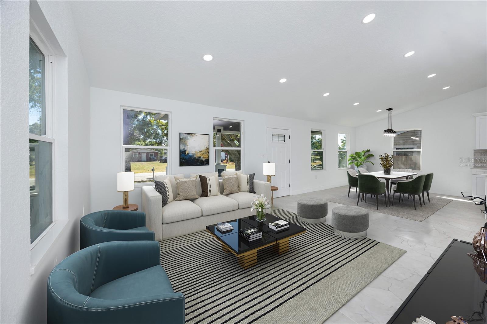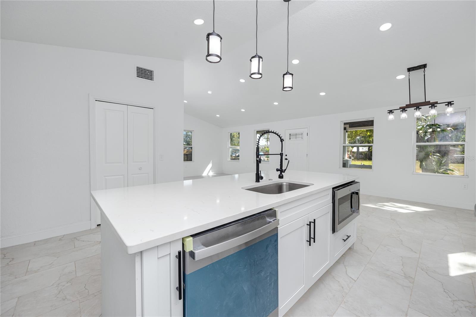 Fully remodeled and move-in ready, this charming North St. Petersburg bungalow blends modern luxury with timeless character—ideal for homeowners or investors seeking a turnkey property. Shaded by mature oaks, the freshly painted exterior welcomes you with a large covered front porch and brand-new driveway. Inside, soaring vaulted ceilings and an open split-bedroom floor plan create a bright, airy flow, enhanced by low-maintenance tile flooring and stylish new fixtures throughout. The chef-inspired kitchen features an expansive island with breakfast bar, quartz countertops and backsplash, solid wood cabinetry, brand-new GE stainless steel appliances including a built-in wine fridge and range hood, plus dual pot fillers for ultimate convenience. The primary suite offers private backyard access and a spa-like ensuite bath with a dual-sink vanity, water closet, and custom-tiled walk-in shower featuring both rain and handheld showerheads. The secondary bathroom mirrors the same elevated design with a new vanity, fixtures, and tub accented by the quartz tile work. Additional highlights include an interior laundry room with utility sink, a storage closet, and washer/dryer alcoves. Outside, enjoy an oversized covered back porch with recessed lighting and dual ceiling fans—perfect for entertaining or adding a hot tub—overlooking a fully fenced yard with alley access. Recent updates include a full electrical panel upgrade, ensuring peace of mind for years to come. Located in a quiet North St. Pete neighborhood just minutes from Tyrone Square, Northwest Park, and I-275, this home offers quick access to Downtown St. Pete, award-winning Gulf beaches, and top dining and shopping destinations. Whether you’re looking for a personal residence or a high-demand investment opportunity, this beautifully updated home delivers the best of Florida living in one of St. Petersburg’s most convenient and desirable locations.