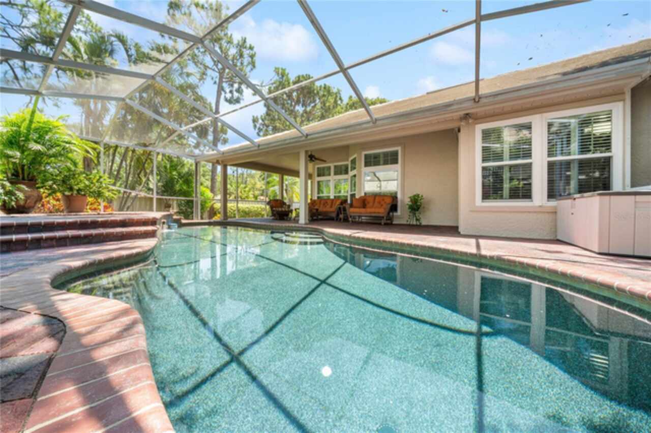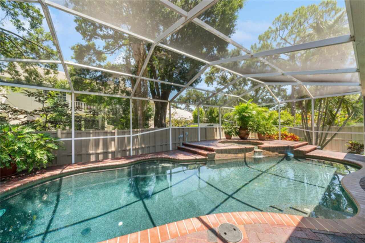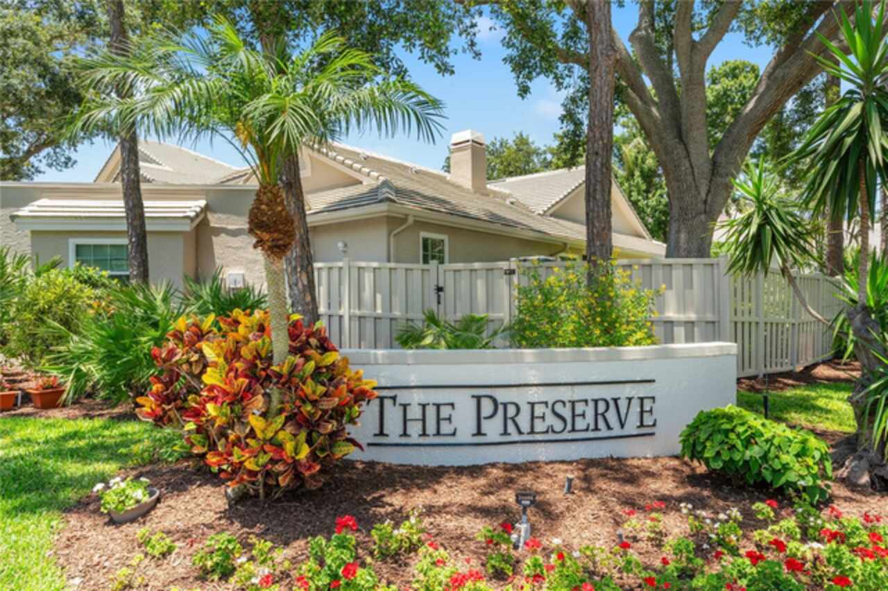 This beautiful home is located in The Preserves of Placido Bayou, one of the most desirable gated communities in the area. It received no water damage from the past hurricanes. The owners have invested over $143, 000 in improvements in the last few years. Some of the items included were an updated kitchen, family room, bath and lanai (March ’24), hurricane impact windows (May ’23), new pool pump (Nov ‘23), new pool heater(Apr ’24), new HVAC heat pump/air handler/thermostat & hot water heater (Dec ’24) , new washer & dryer (May ’21), additional gutters (Oct ’19) and so much more. This one-story, updated townhome has 3 bedrooms, 3 full baths, office/den, private pool and 2- car garage. This 2, 085 sq ft Cottonwood model, with cathedral and vaulted ceilings, offers loads of room for entertaining, not only inside, but also outside on the huge screened patio with custom brick decking around the absolutely gorgeous Pebble-Tec heated pool with spa. The pool comes with an energy efficient heat pump for enjoyment all year long. It also has a separate living room, dining room and family room with a fireplace. Additional features include quality flooring (oak hardwood, LVT & tile), plantation shutters throughout, quartz kitchen counter and granite bathroom & lanai counters. The master bath has double sinks & custom designed cabinetry with electric outlets in the countertop cupboard and in drawers so your hair dryer is always ready to go. The spacious shower has a floating door, seat, and built-in niche. I'm sure this is the one you've been looking for. Call today!!