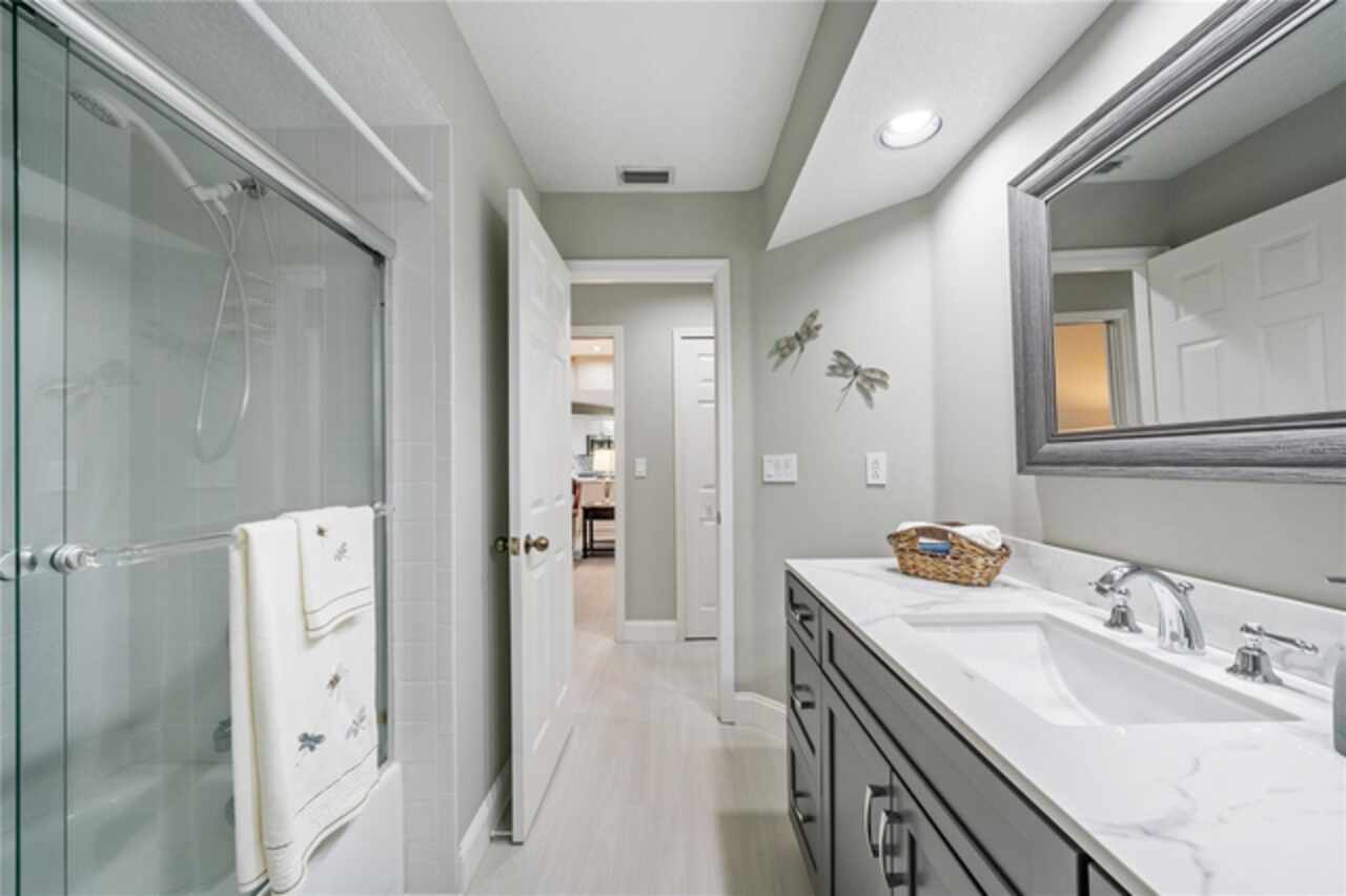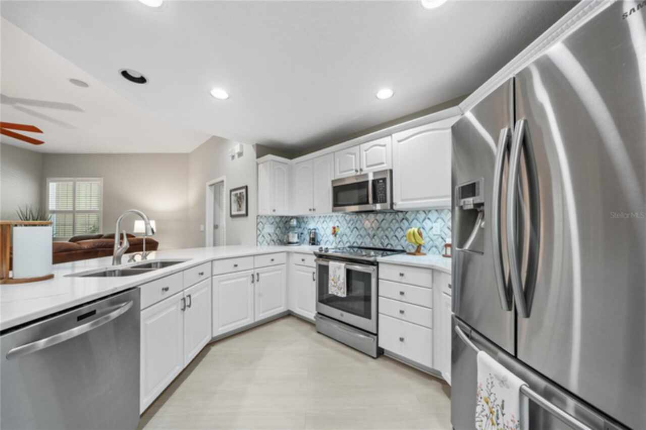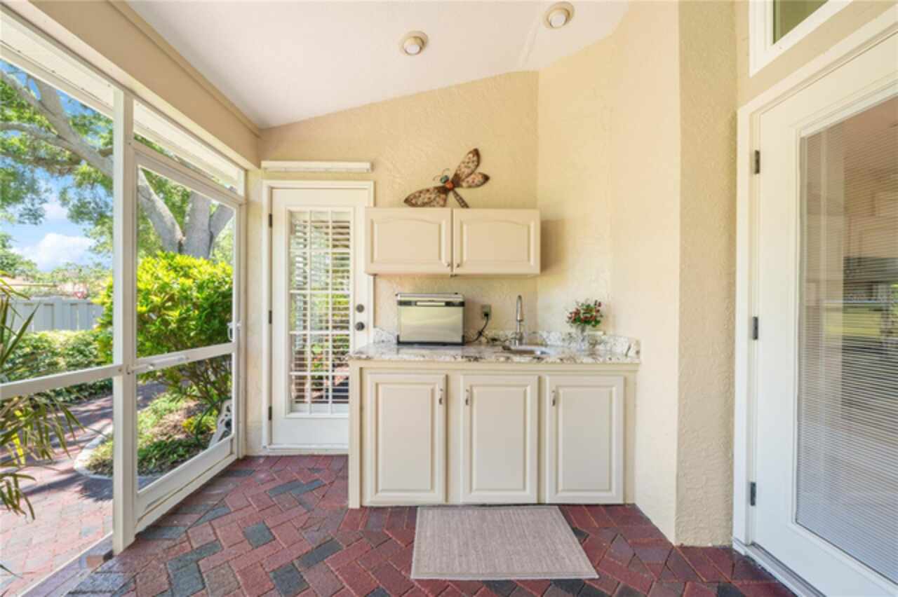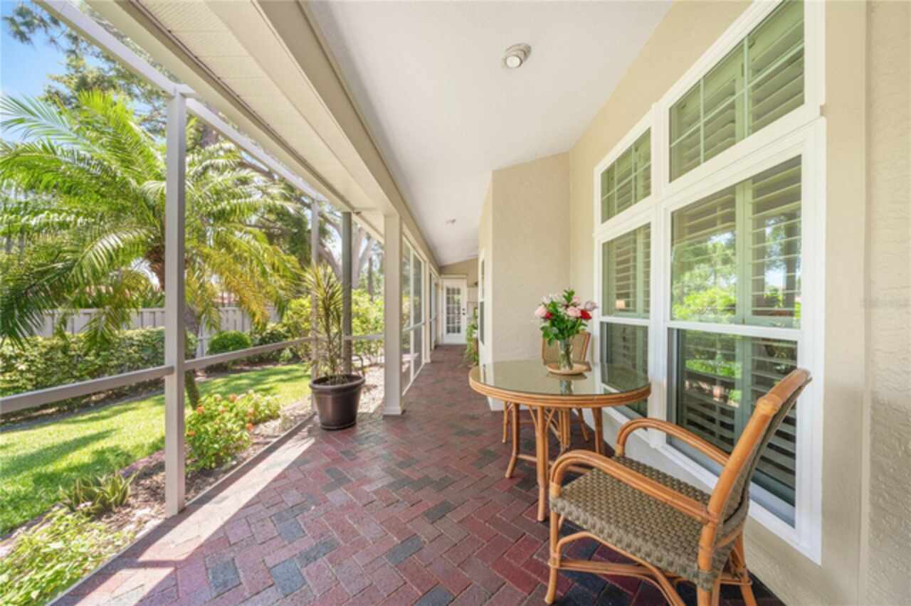 This beautiful home is located in The Preserves of Placido Bayou, one of the most desirable gated communities in the area. It received no water damage from the past hurricanes. The owners have invested over $143, 000 in improvements in the last few years. Some of the items included were an updated kitchen, family room, bath and lanai (March ’24), hurricane impact windows (May ’23), new pool pump (Nov ‘23), new pool heater(Apr ’24), new HVAC heat pump/air handler/thermostat & hot water heater (Dec ’24) , new washer & dryer (May ’21), additional gutters (Oct ’19) and so much more. This one-story, updated townhome has 3 bedrooms, 3 full baths, office/den, private pool and 2- car garage. This 2, 085 sq ft Cottonwood model, with cathedral and vaulted ceilings, offers loads of room for entertaining, not only inside, but also outside on the huge screened patio with custom brick decking around the absolutely gorgeous Pebble-Tec heated pool with spa. The pool comes with an energy efficient heat pump for enjoyment all year long. It also has a separate living room, dining room and family room with a fireplace. Additional features include quality flooring (oak hardwood, LVT & tile), plantation shutters throughout, quartz kitchen counter and granite bathroom & lanai counters. The master bath has double sinks & custom designed cabinetry with electric outlets in the countertop cupboard and in drawers so your hair dryer is always ready to go. The spacious shower has a floating door, seat, and built-in niche. I'm sure this is the one you've been looking for. Call today!!