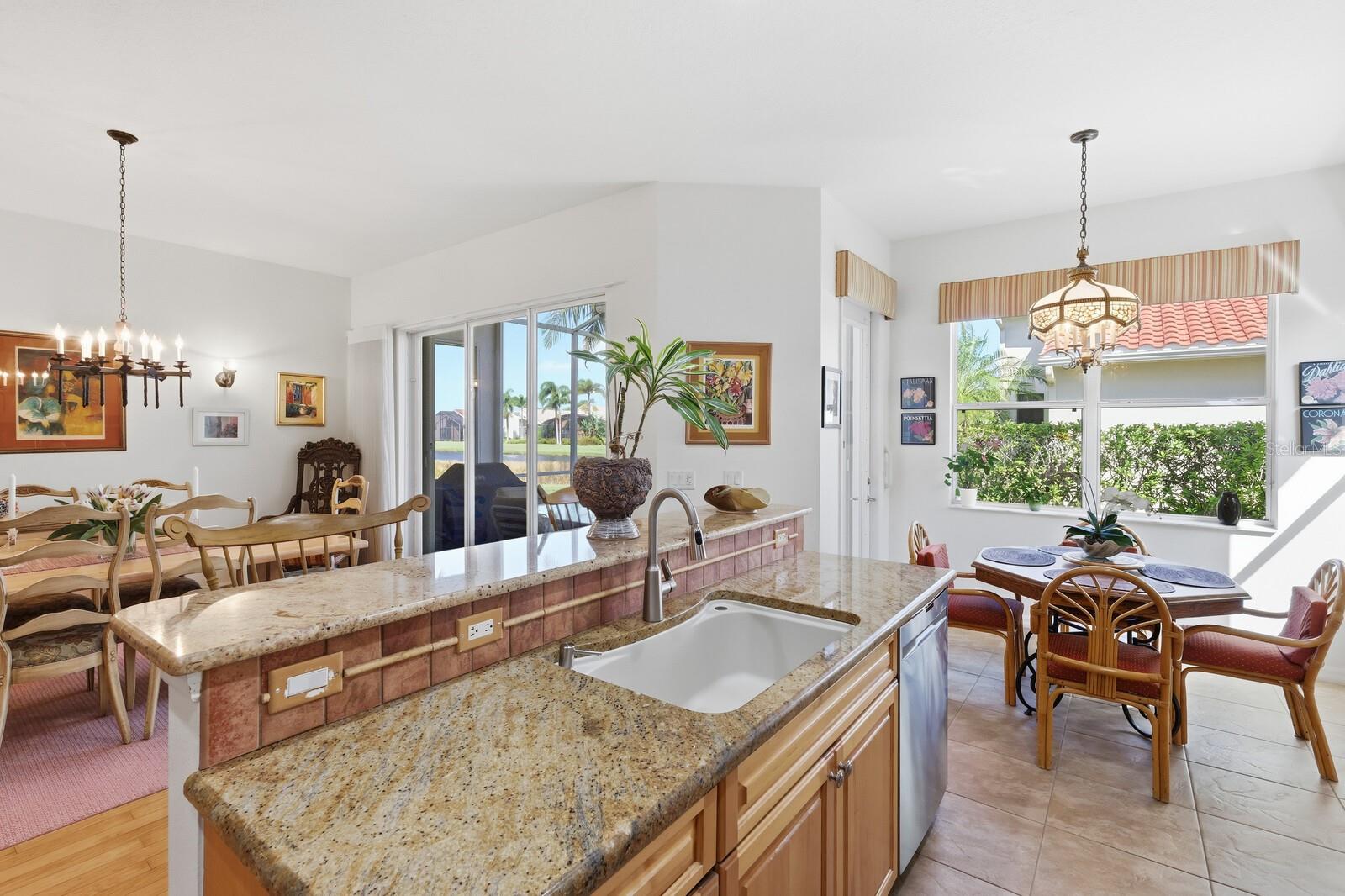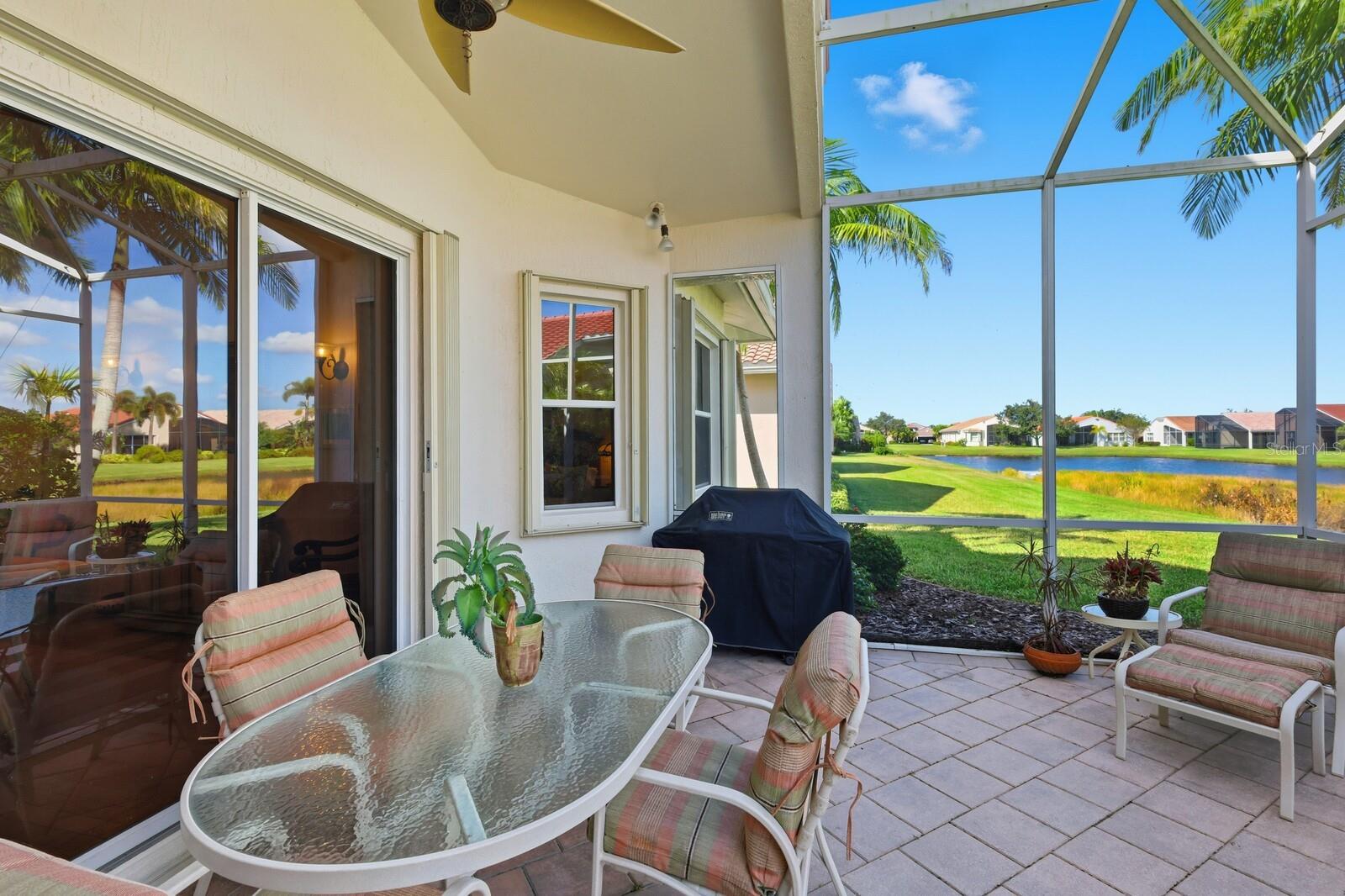 Welcome to your dream home in The Cascades at Sarasota, one of the area's most sought-after 55+ gated communities. This beautifully maintained West Indies floor plan offers over 2, 100 square feet of move-in ready living space with 3 bedrooms, 2 baths, and an attached 2-car garage. From the moment you step inside, you will be greeted by soaring ceilings, gleaming inlay tile foyer, and thoughtful upgrades throughout. The heart of the home is the kitchen, where 42" cabinetry with roll-out shelving, Kashmir Gold granite countertops, custom backsplash, and GE Profile appliances make cooking and entertaining a delight. The open floor plan is designed for entertaining, comfort and privacy, with the Owner's suite and guest rooms thoughtfully separated. From the primary suite, dining room, breakfast nook, and extended screened lanai, you will enjoy tranquil partial water views, the perfect backdrop for your morning beverage or evening gatherings. The spacious primary suite offers true luxury with a custom built-in closet, dual sinks, upgraded cabinetry, and a large walk-in shower with bench. Additional highlights include a freshly painted exterior, a NEW Trane HVAC, energy-efficient wall insulation, easy-close accordion hurricane shutters, and custom window treatments, all adding peace of mind and year-round comfort. Step outside to your extended paver lanai and patio, surrounded by tropical landscaping and serene lake views, a wonderful space to relax and enjoy the Florida backdrop. Living in The Cascades at Sarasota means more than just a beautiful home, it's a vibrant lifestyle. Residents enjoy resort-style indoor and outdoor pools, a state-of-the-art fitness center, a 25, 000 sq ft clubhouse with ballroom, Har-Tru tennis courts, pickleball courts, bocce, and an abundance of clubs and activities. All of this comes with the convenience of being close to downtown Sarasota, airports, shopping, dining, golf, and the world-renowned beaches of Siesta, Lido, and Longboat Key. Do not miss your chance to own this exceptional home that combines elegance, comfort and an active lifestyle, all in one perfect package.