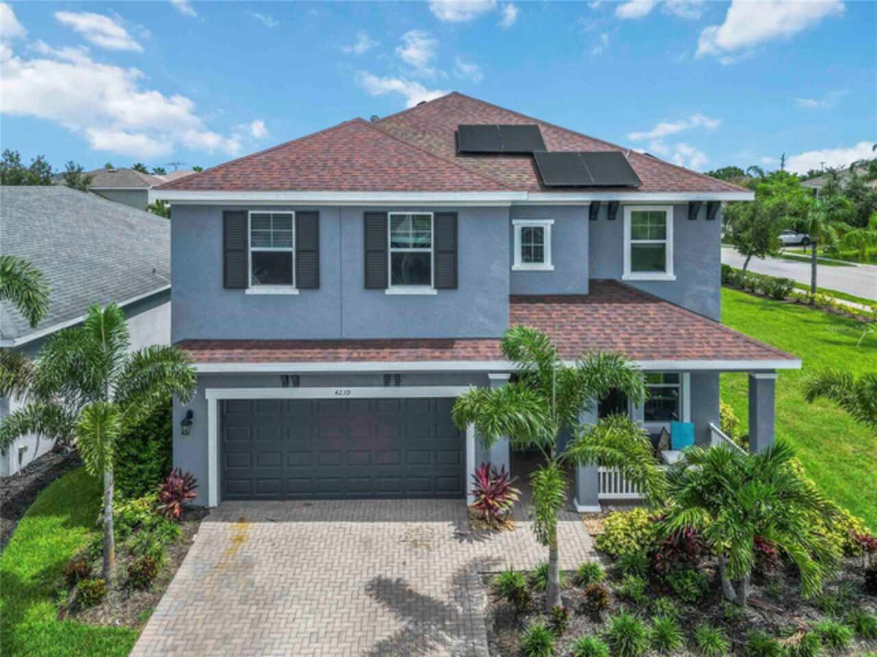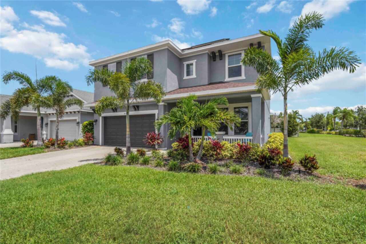 Welcome to your dream home in the desirable Palmer Reserve community! This beautifully maintained 4-bedroom + den, 3-bathroom home offers the perfect blend of space, comfort, and convenience—all just 2 miles east of I-75, providing easy access to everything Sarasota has to offer. Built in 2017, this newer construction home sits on an oversized corner lot, offering plenty of room for outdoor fun—or even the future pool of your dreams. With a thoughtfully designed layout, the home features a generous upstairs loft, ideal for a second living space, game room, or home theater. Step inside to find light oak wood-look tile flooring and large windows that fill the main living area with natural light, creating a bright and welcoming atmosphere. The open-concept kitchen and living room flow seamlessly to a spacious covered lanai through wide sliding doors, perfect for entertaining or simply soaking in the Florida lifestyle year-round. Home has an abundance of storage/closet space and fully paid for Solar system keeping monthly summer electric bills under $100! Located directly across from Tatum Ridge Elementary School, school drop-offs and pickups couldn’t be easier. The friendly Palmer Reserve neighborhood features just 90 single-family homes and includes its own playground for residents to enjoy. Walk or bike to the Celery Fields to bird watch or get your daily exercise in by running "the hill". With Downtown Sarasota, Lakewood Ranch's Waterside dining and shopping distrcit and the world-famous Siesta Key Beach just a 20-minute drive away, this home truly has it all—modern living, convenience, and community.